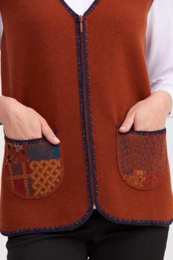 Desen Triko Boncuk İşlemeli Yün Yelek-22112