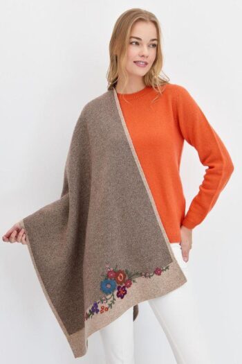 Desen Triko Çiçek İşlemeli Triko Yün Şal-23154