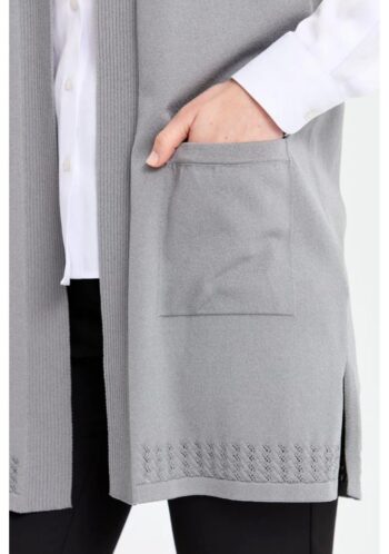 Desen Triko Kadın Dik Yaka Kolu ve Cebi İşlemeli Panço-24057