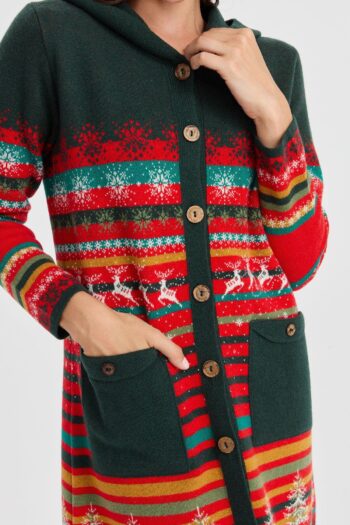 Desen Triko Geyik Desenli Yün Uzun Hırka-23012