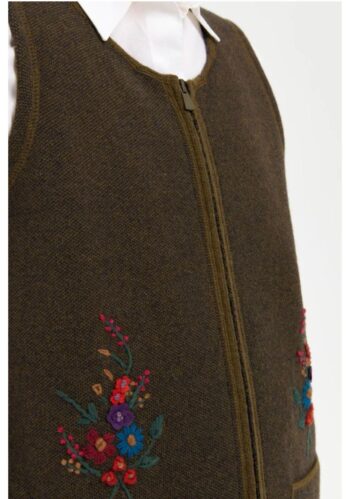 Desen Triko Kadın Sıfır Yaka Kenarı Dantel İşlemeli Yün Yelek-23000