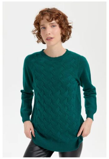 Desen Triko Kadın Sıfır Yaka Dikişsiz Saç Örgülü Yün Kazak-24214