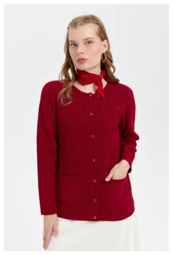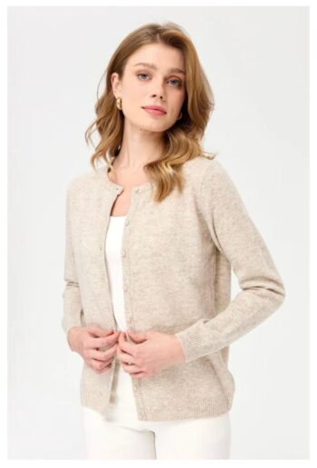 Desen Triko Kadın Sıfır Yaka Kol Ucu Düğmeli Yün Kazak-23158