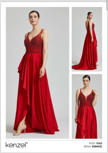 Kenzel Büstiyeri Taş Detaylı Abiye Elbise-1020