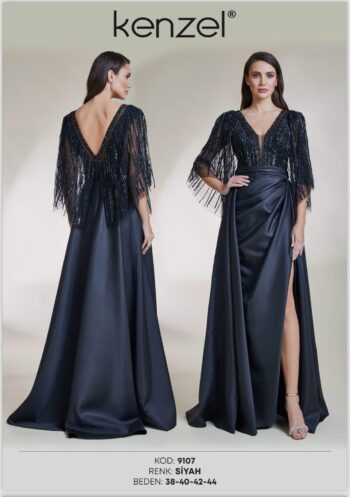 Kenzel Büstiyeri Taş Detaylı Abiye Elbise-9107