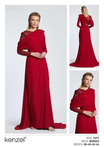 Kenzel Omuz Detaylı Abiye Elbise-2077