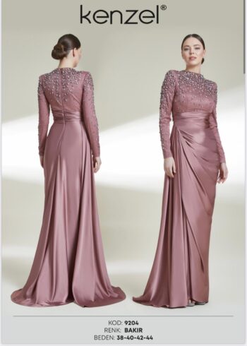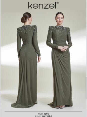 Kenzel Omzu Taş Detaylı Abiye Elbise-1105