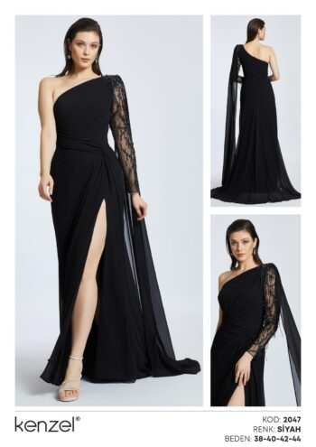 Kenzel Taş Detaylı Abiye Elbise-2047