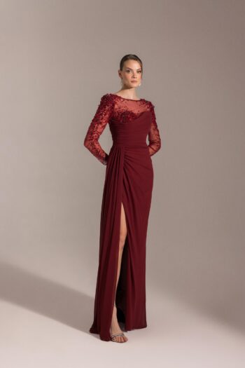 Kenzel Taş Detaylı Abiye Elbise-1016