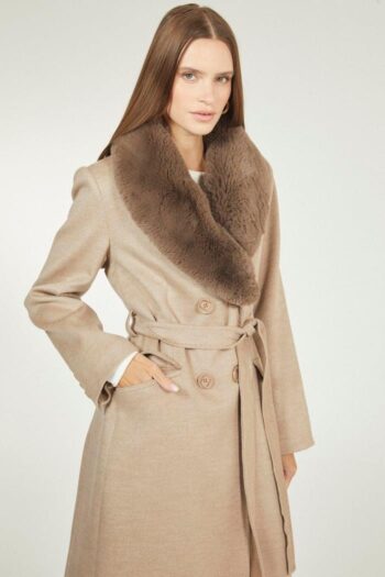 Zühre Yaka Kürk Detaylı Kaşe Kaban-13404