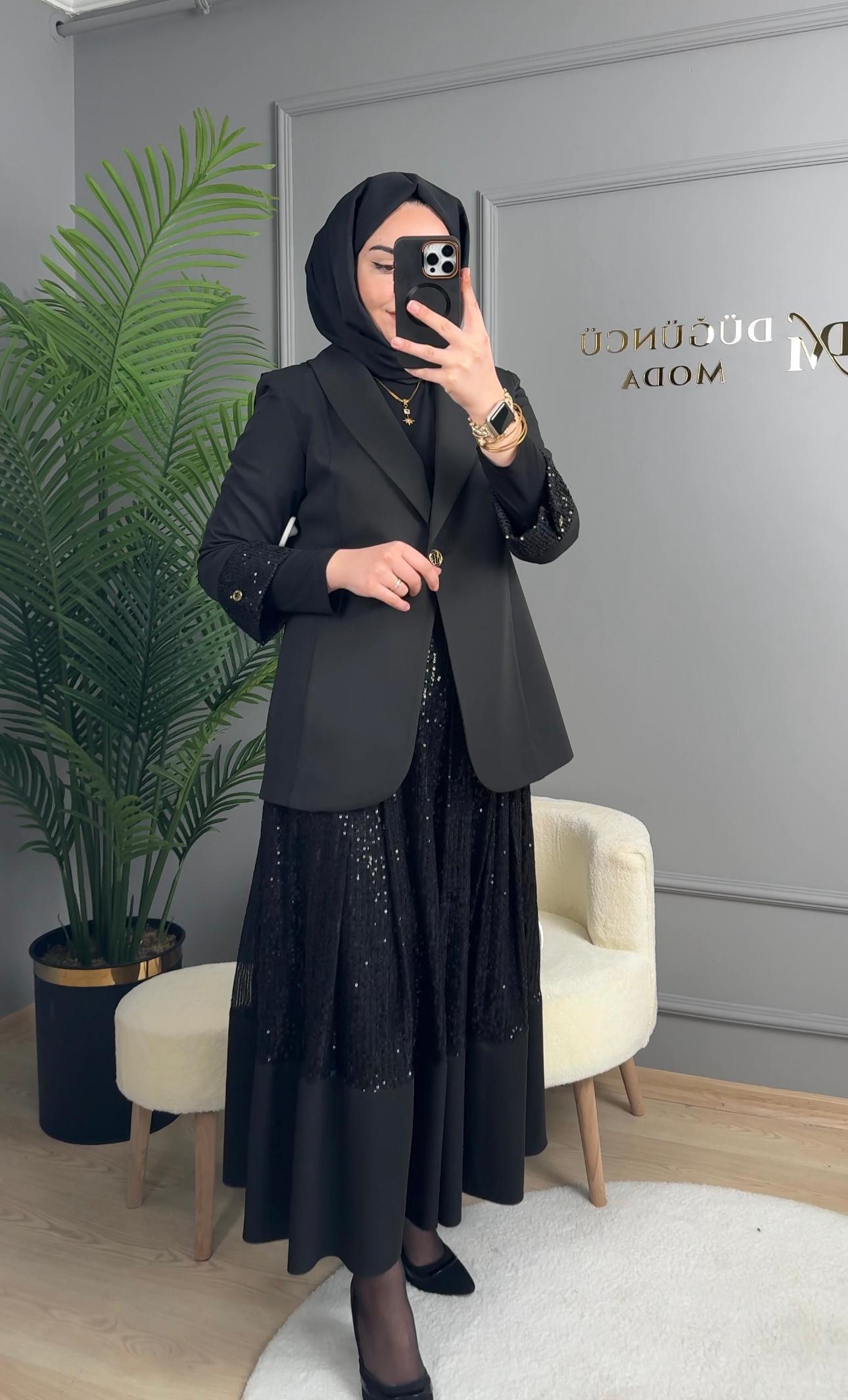 - Kenzel Tamamı Payetli Abiye Elbise-9108