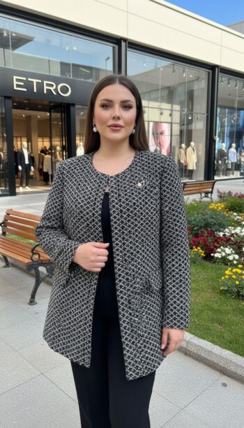 Zms Kırçıllı Siyah Beyaz Astarlı Tek Ceket-2517