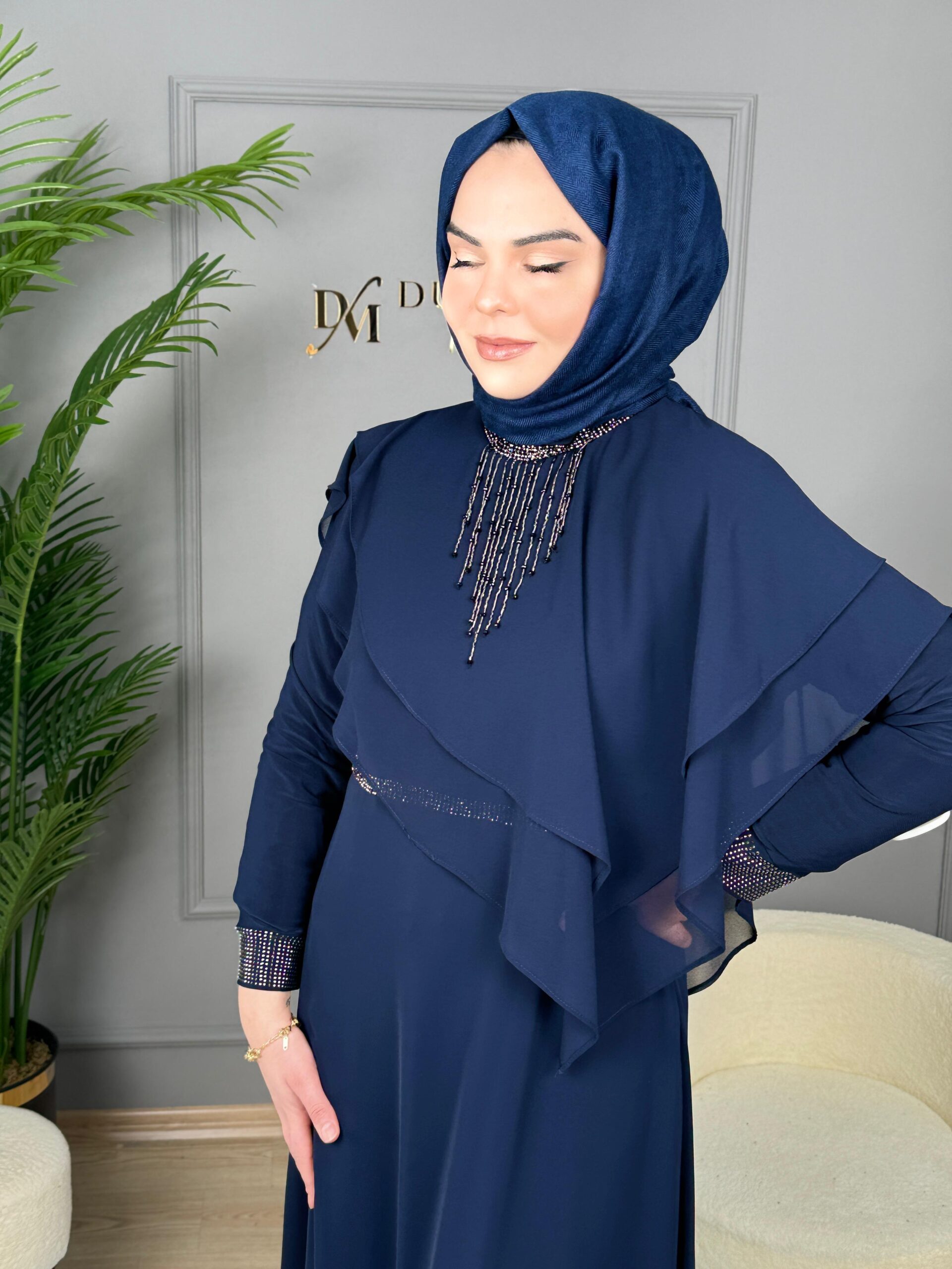 - Kenzel Taş Detaylı Abiye Elbise-7098