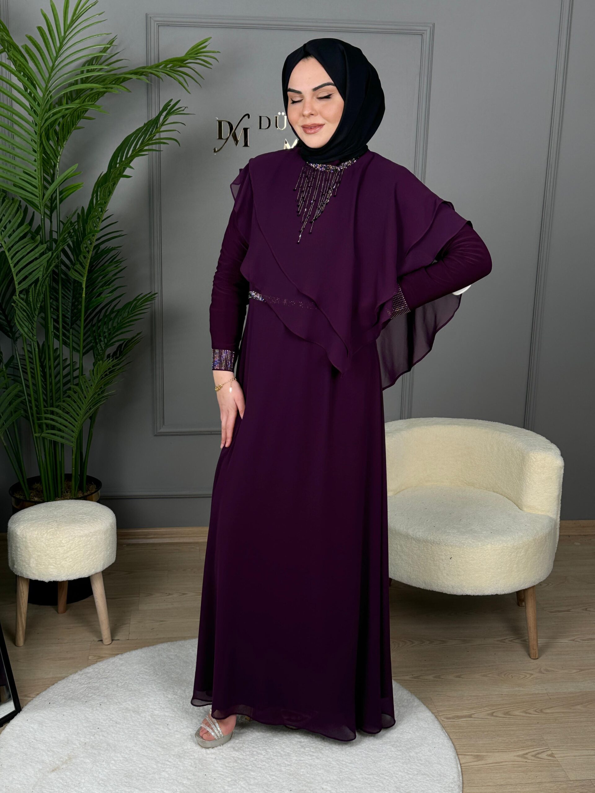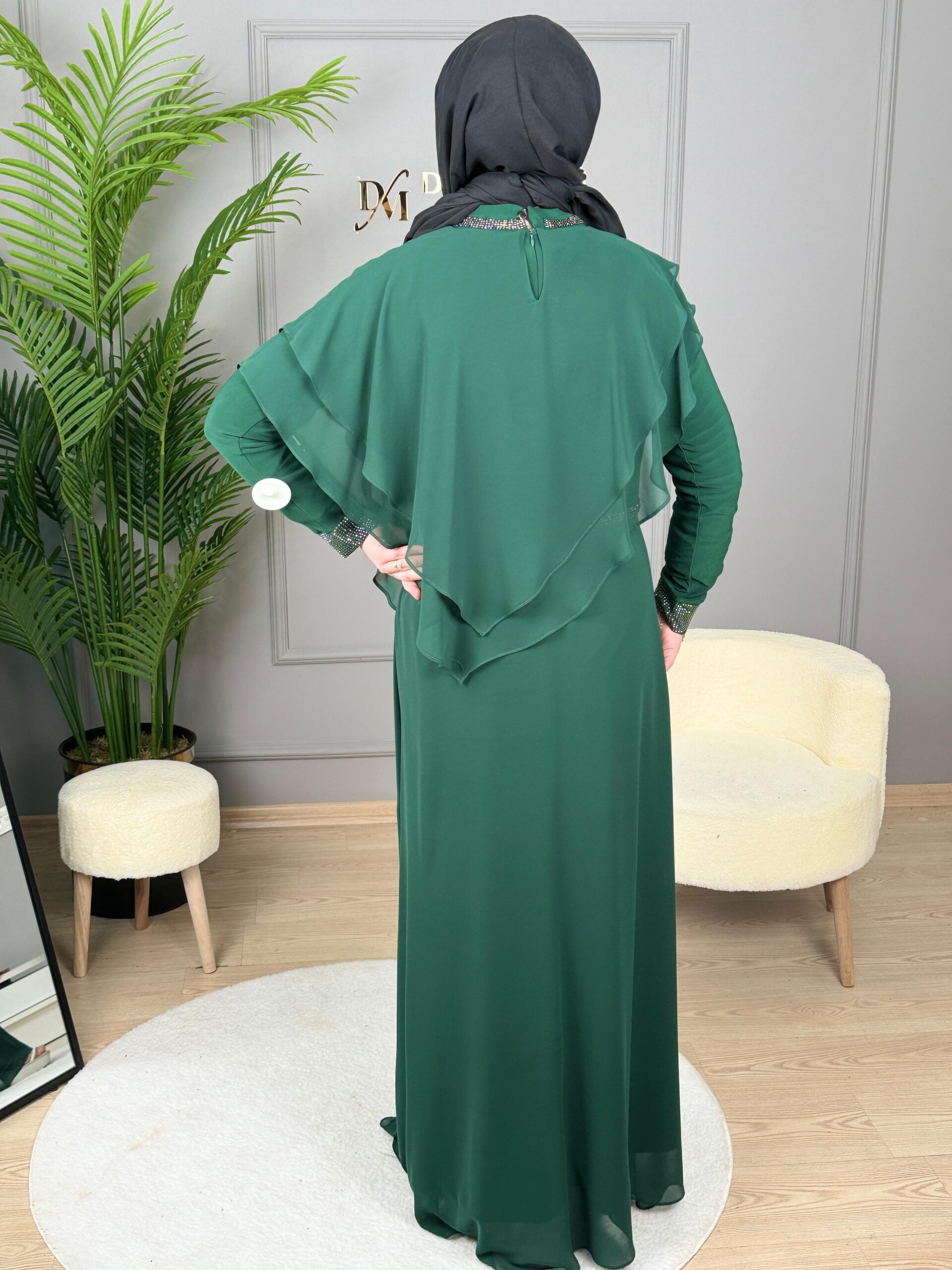 - Kenzel Pelerin Detaylı Abiye Elbise-2031