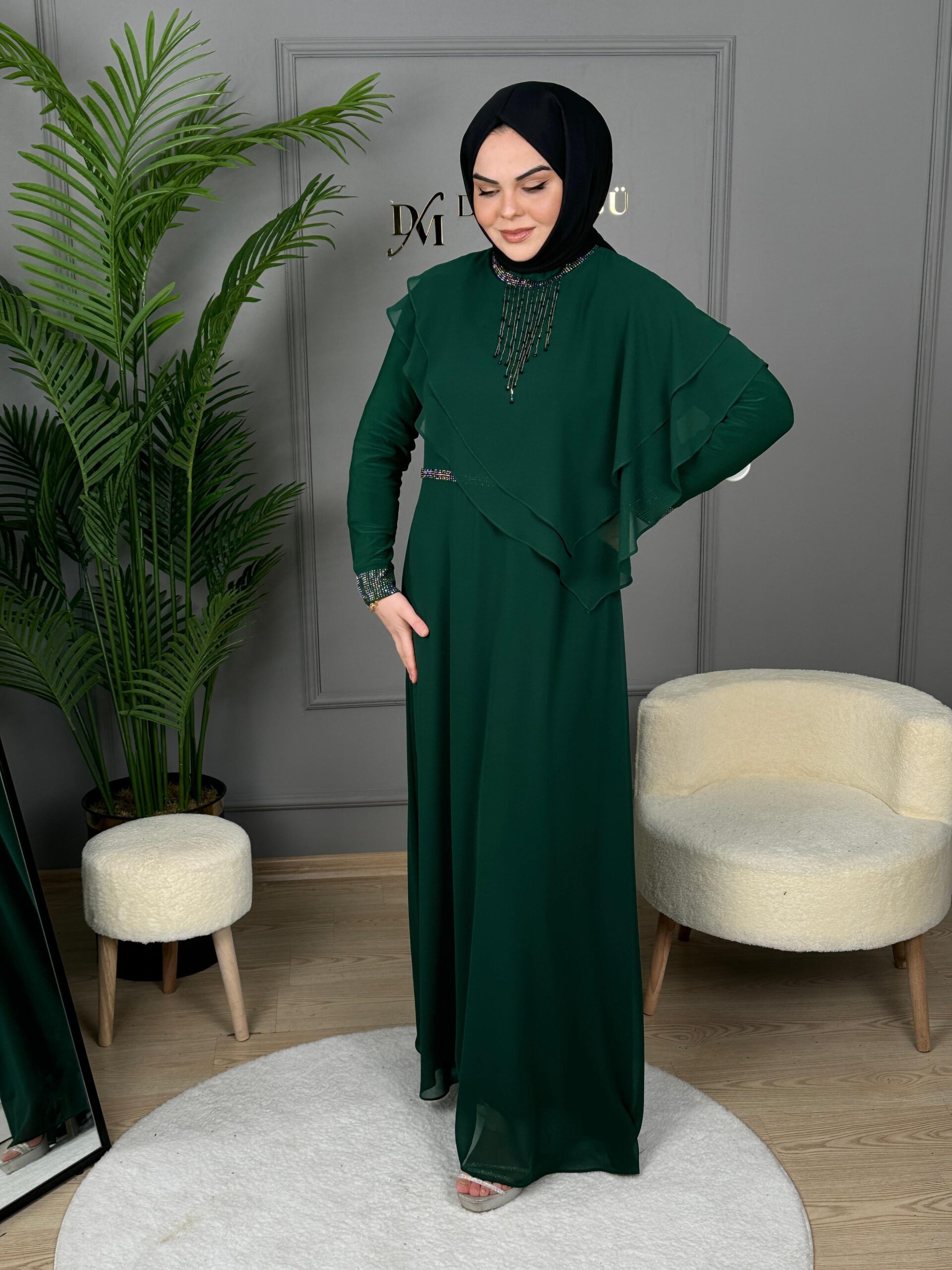 - Kenzel Kolları Otriş Detaylı Abiye Elbise-9021