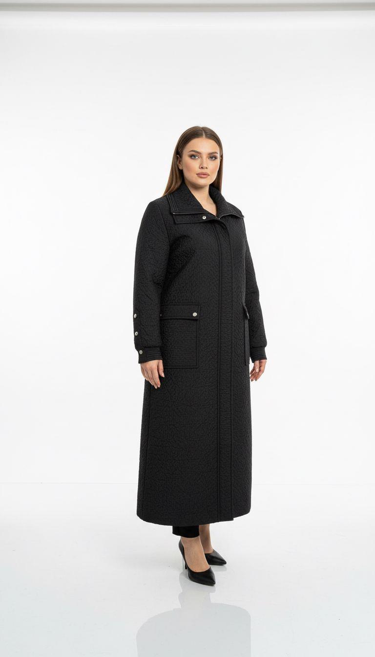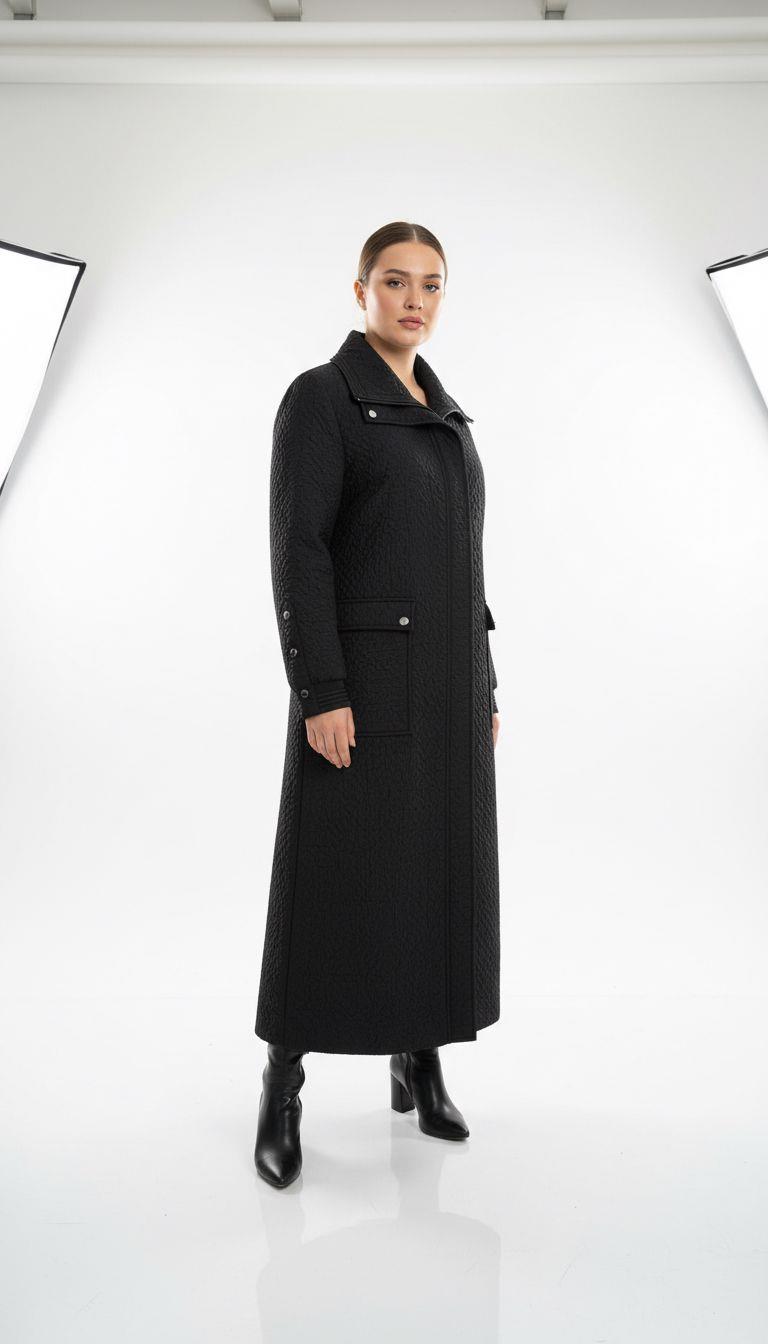 - Desen Triko Kadın Polo Yaka Eteği Keçeli Araboy Yün Kaban-24078