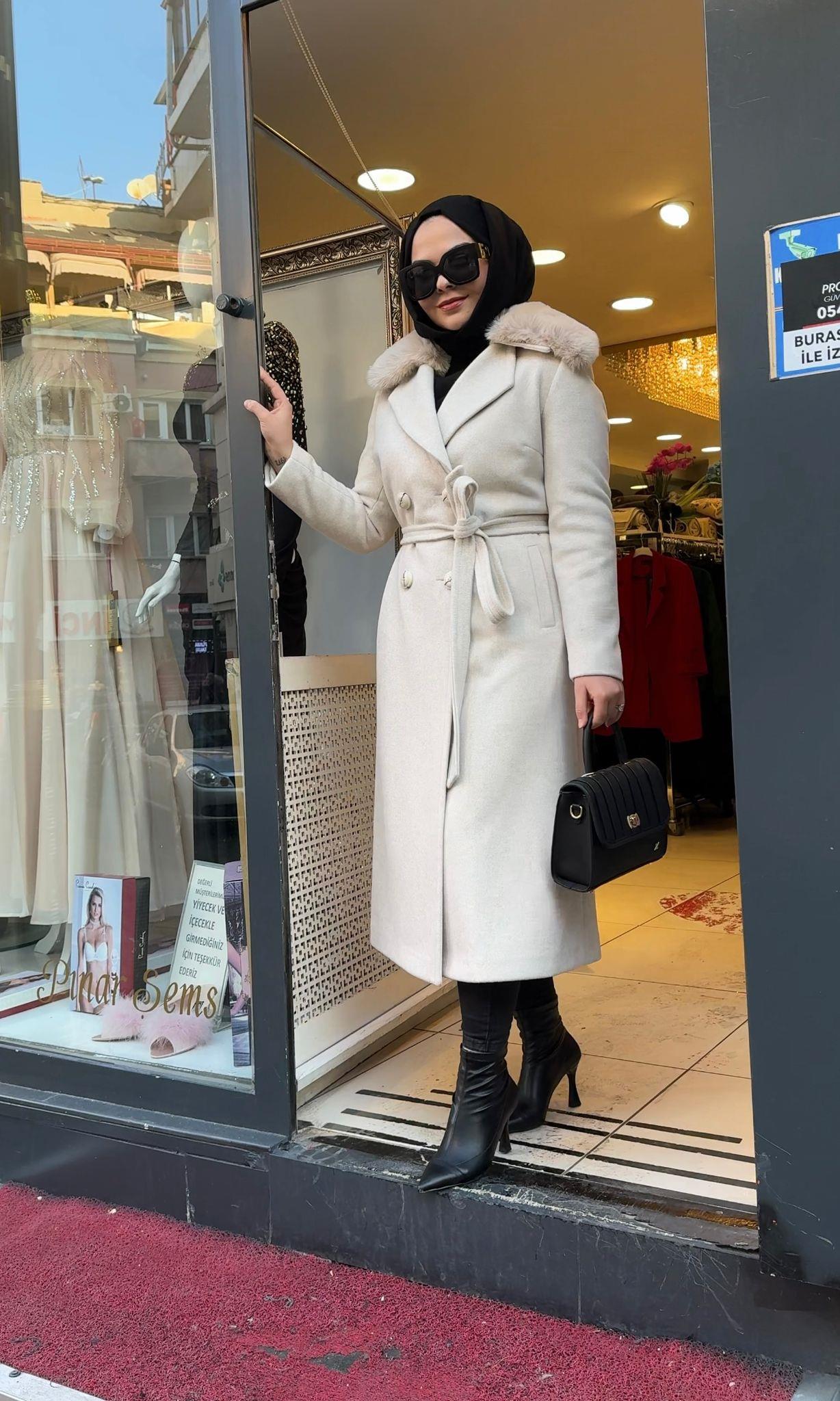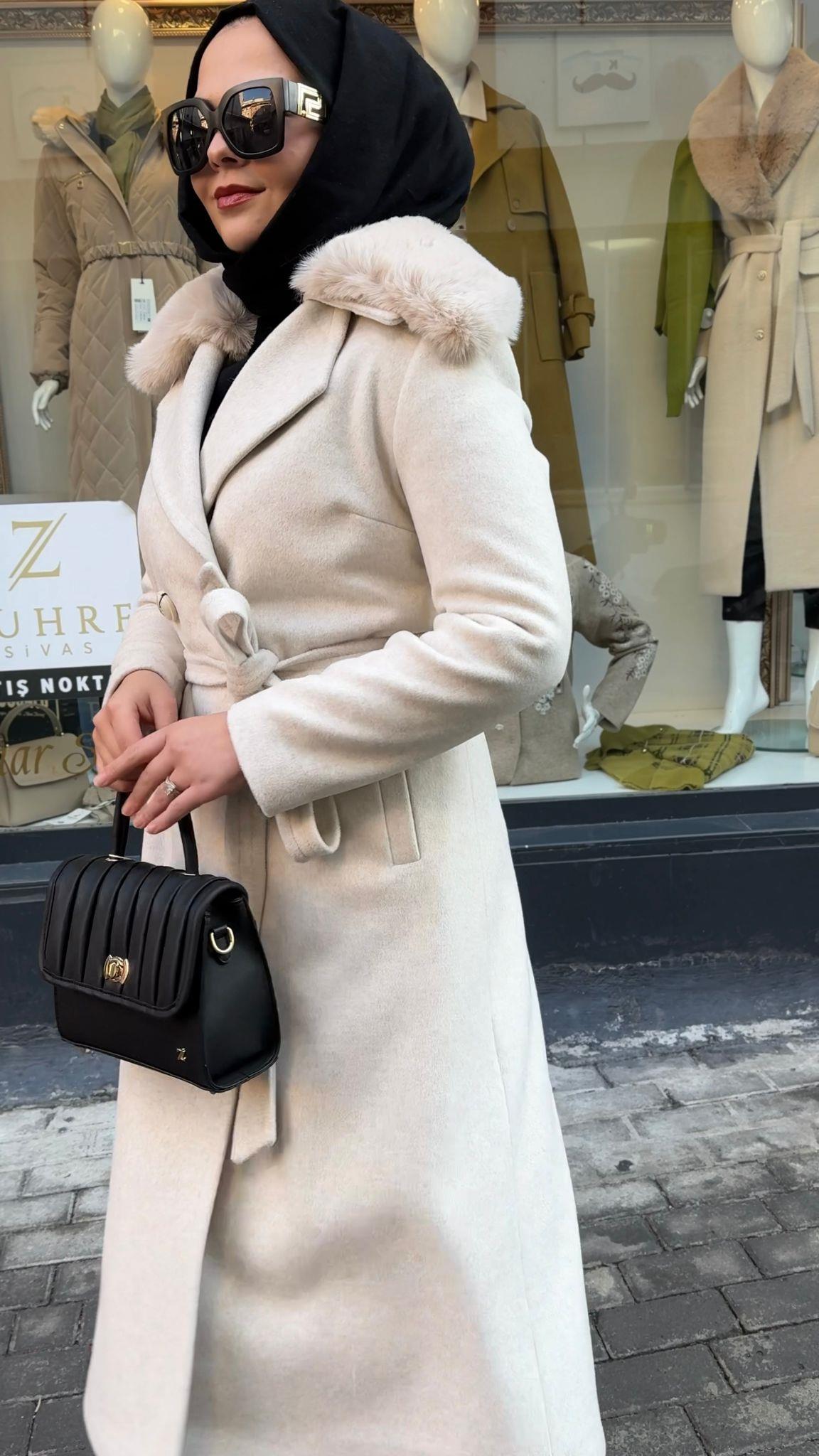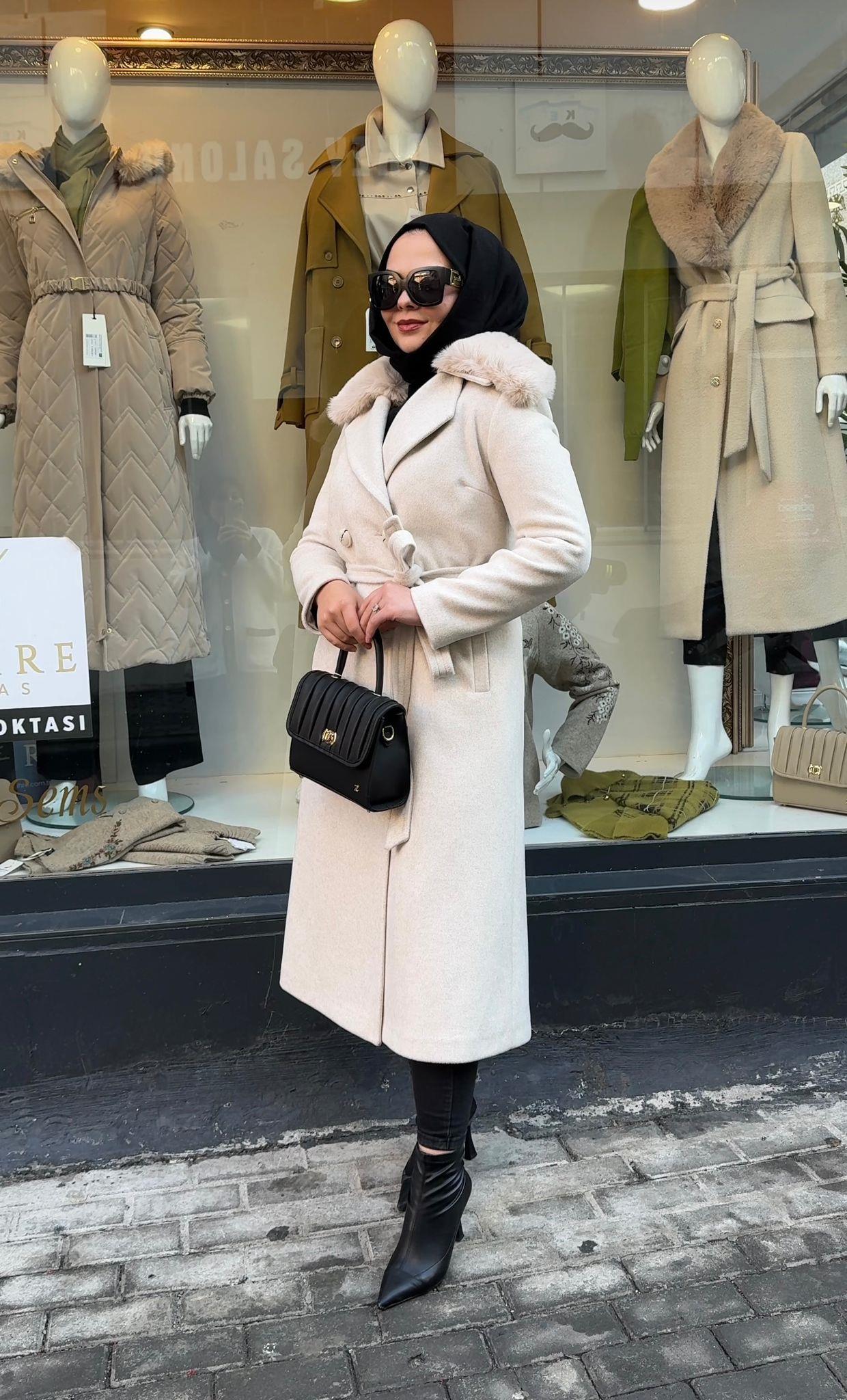 - Zühre Yaka Kürk Detaylı Kaşe Kaban-13114