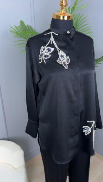 - My312 Yaka Taş Detaylı Pantolonlu Takım-1545