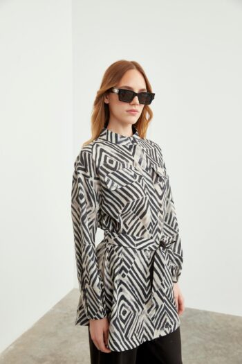 - Ahsen Yaka ve Kol Taş Detaylı Asimetrik Tunik K-6329