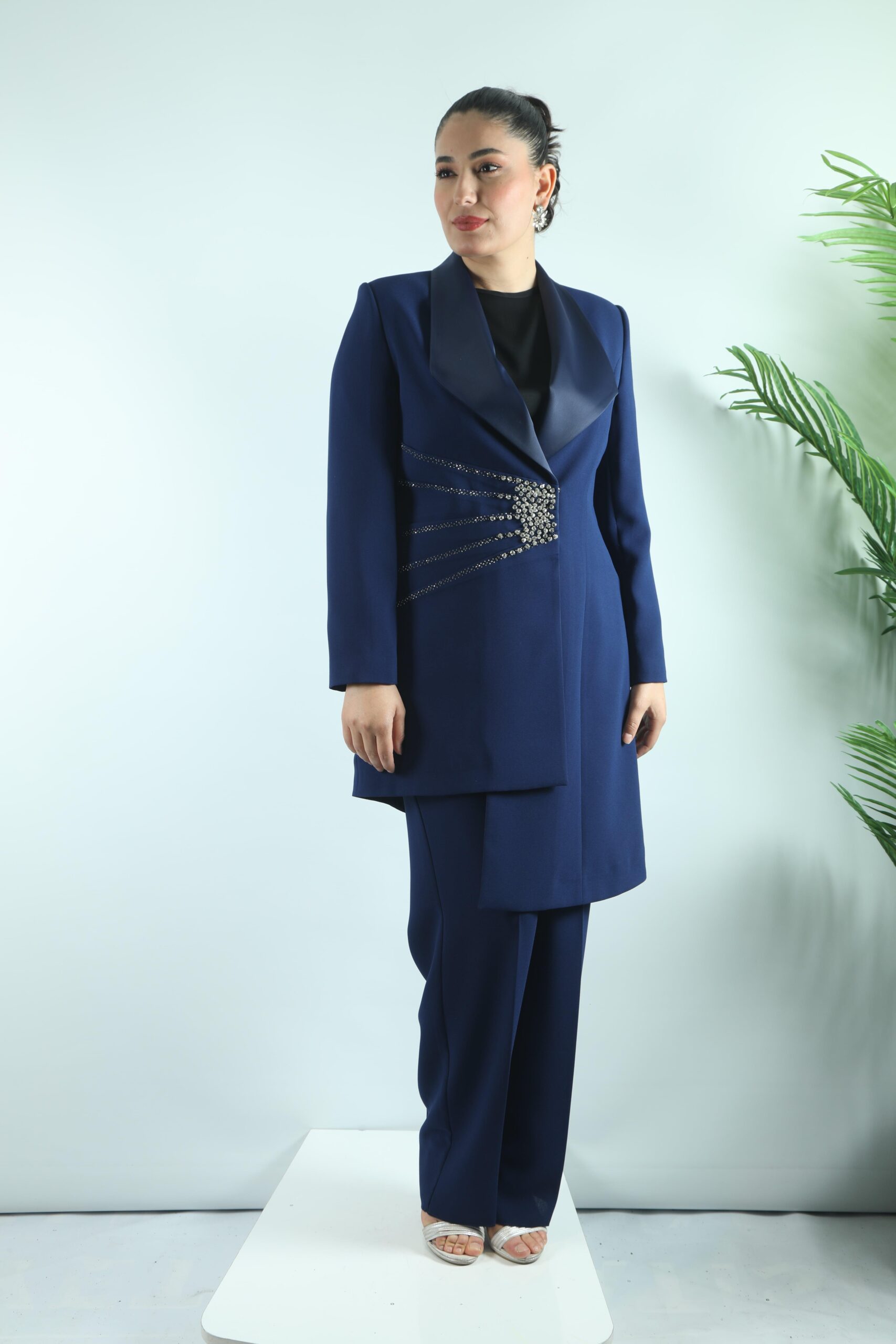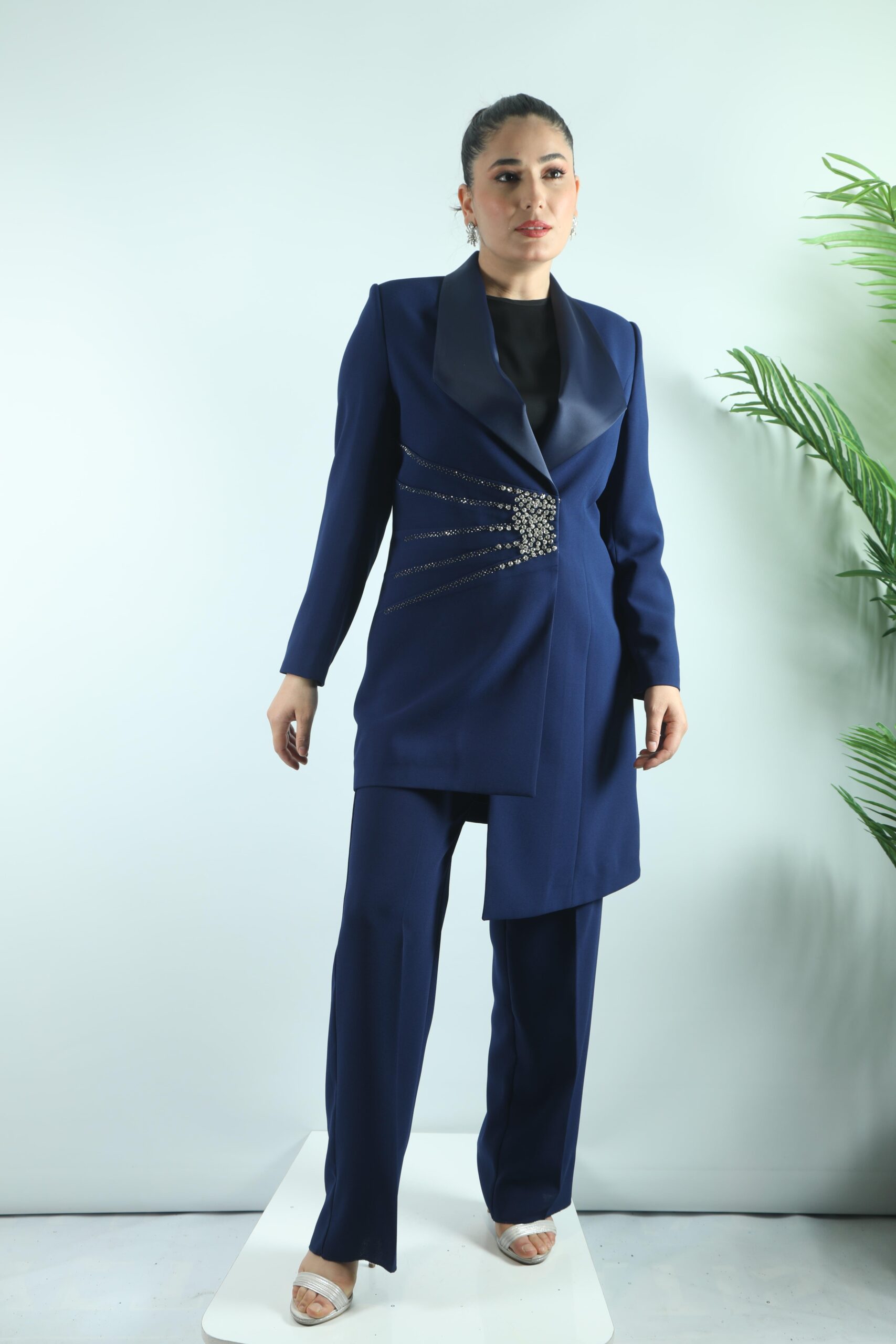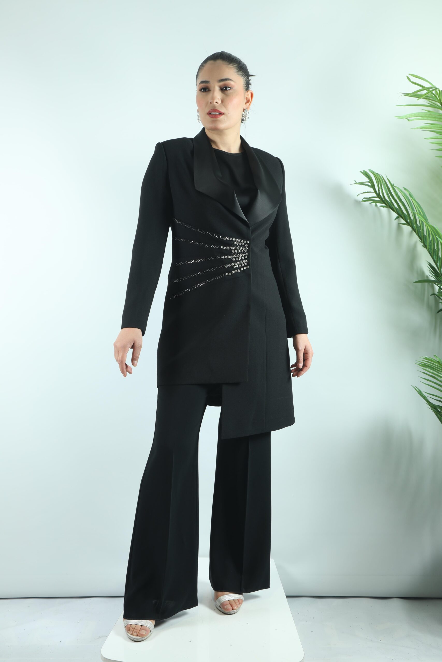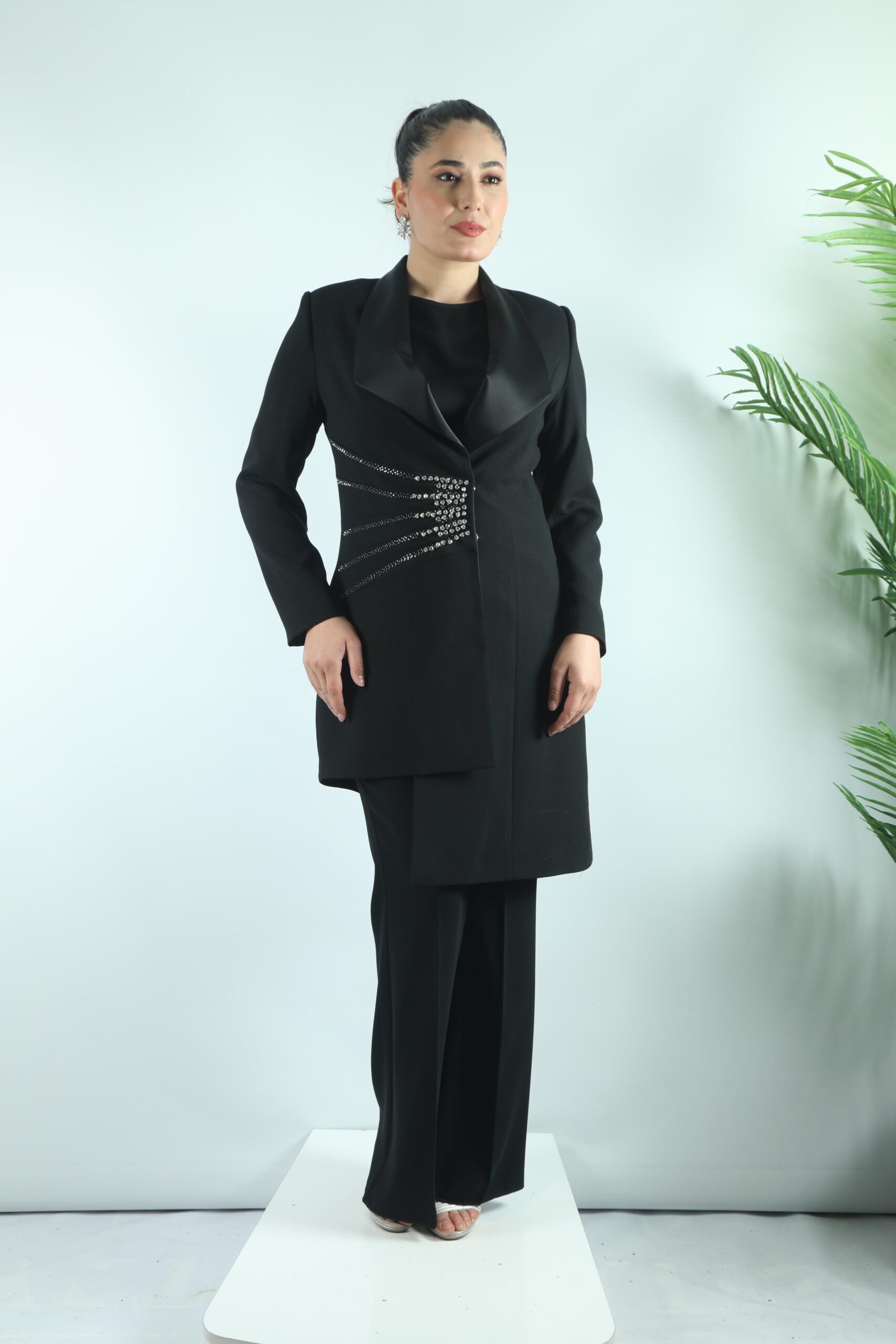 - My312 Yaka Taş Detaylı Pantolonlu Takım-1545