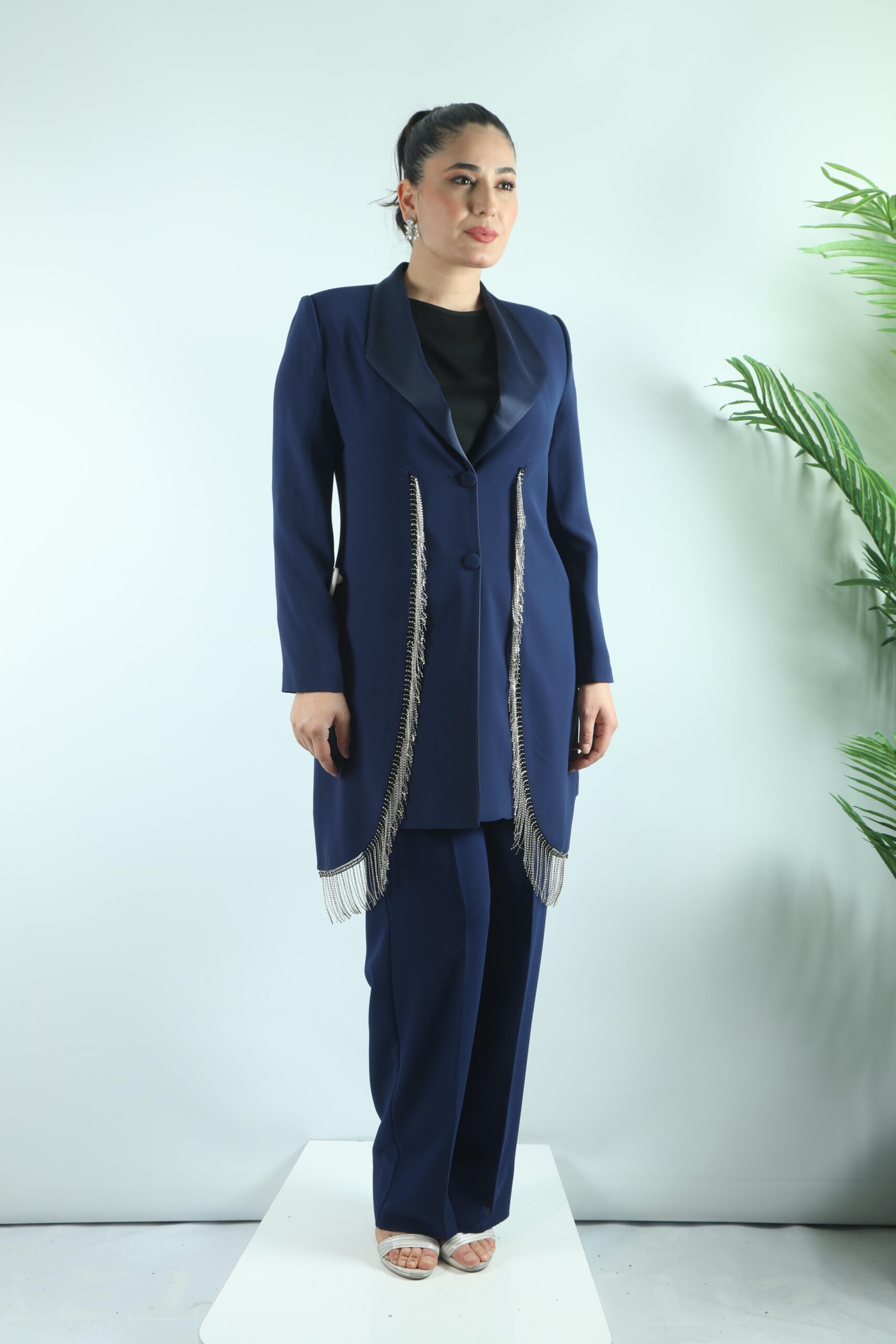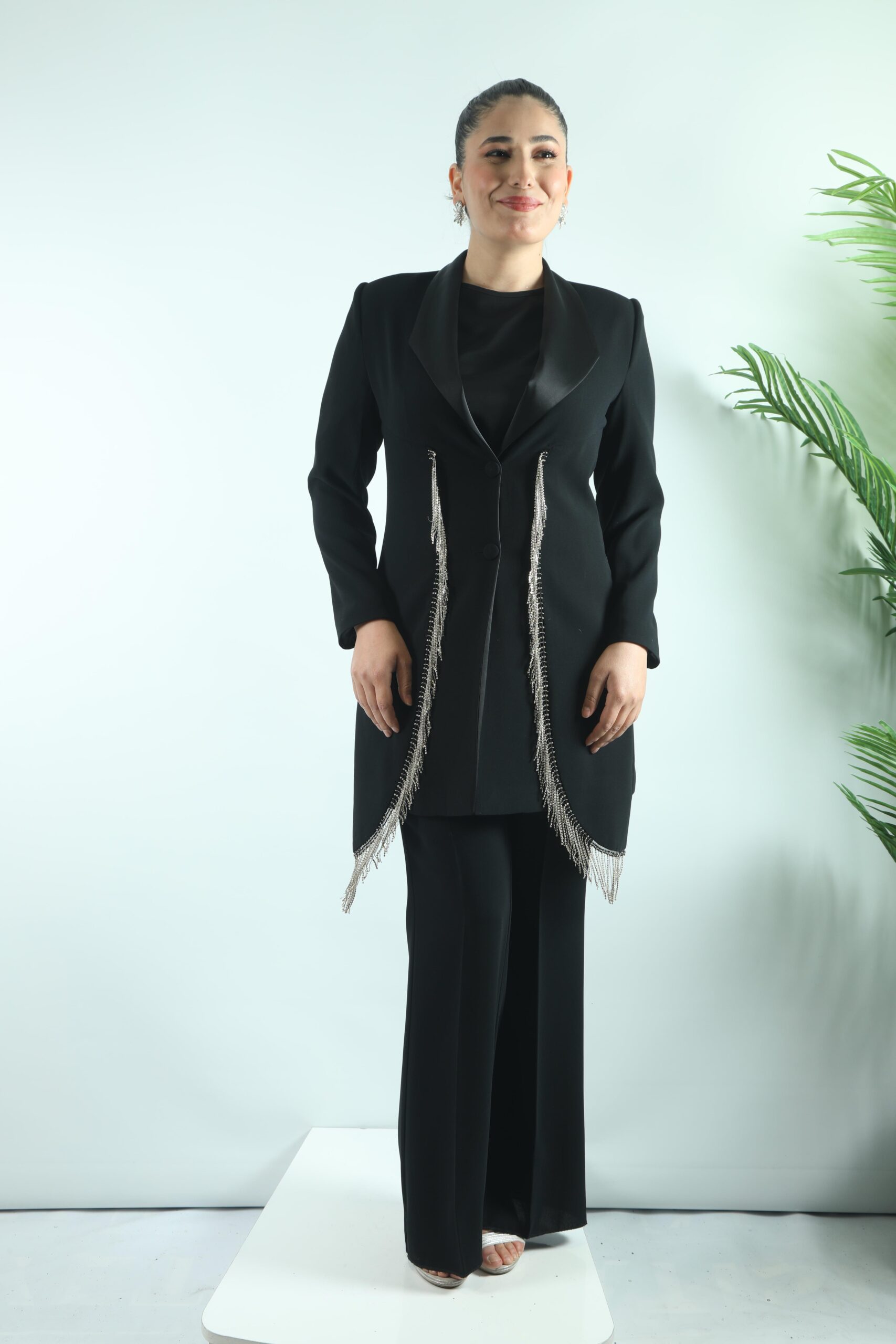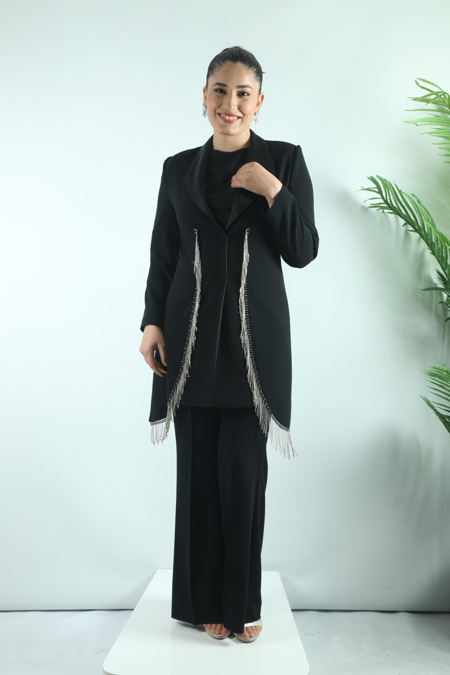 - My312 Yaka Taş Detaylı Pantolonlu Takım-1545