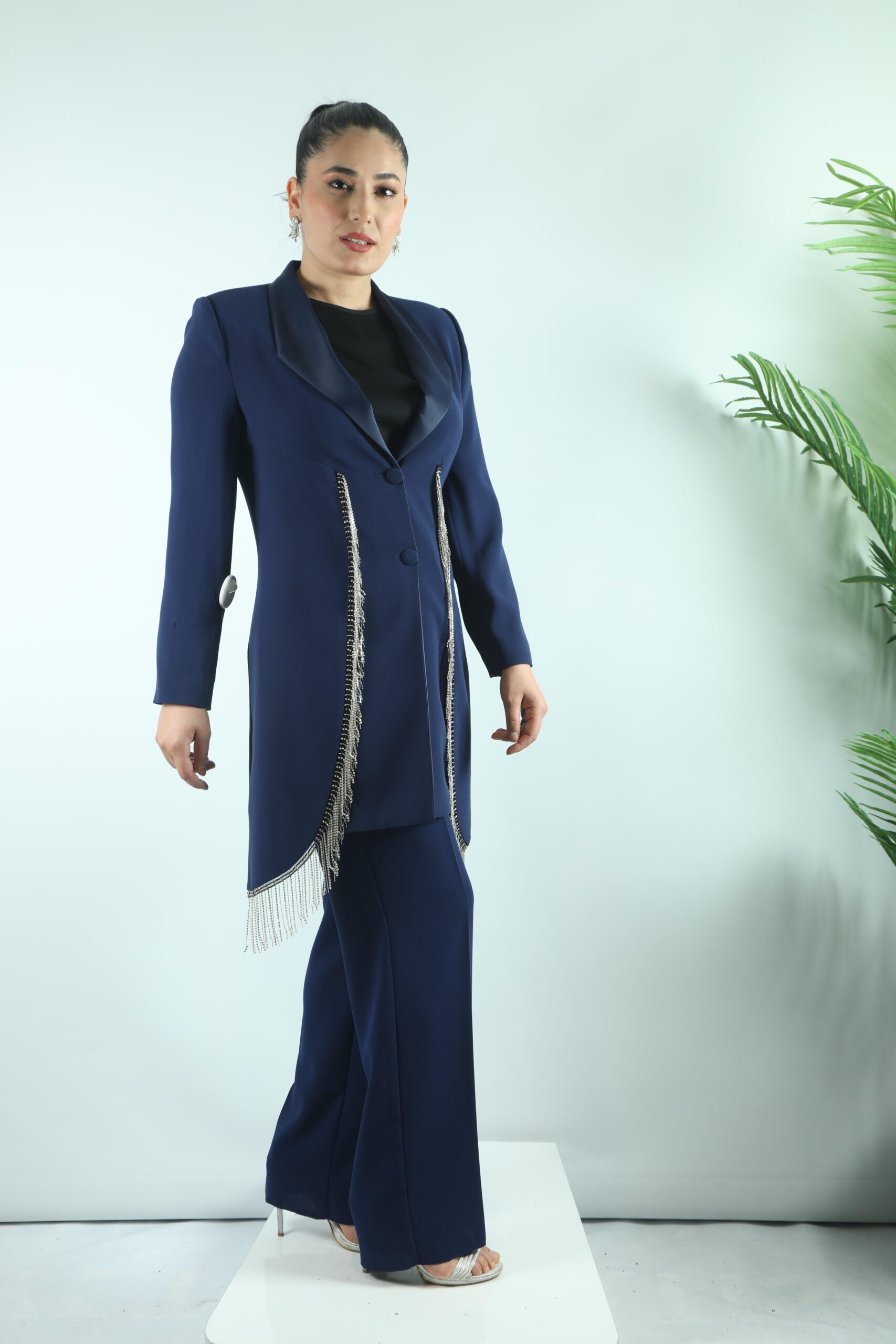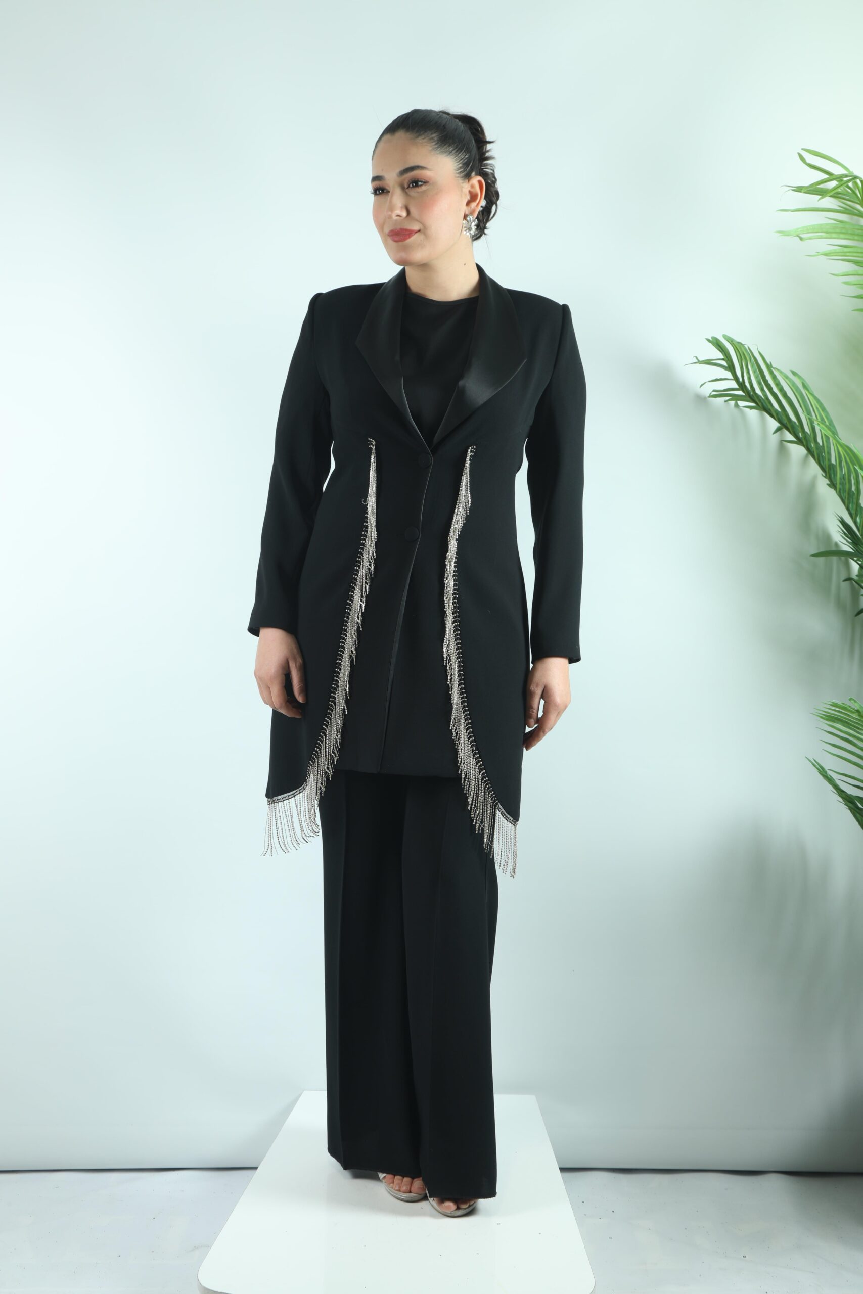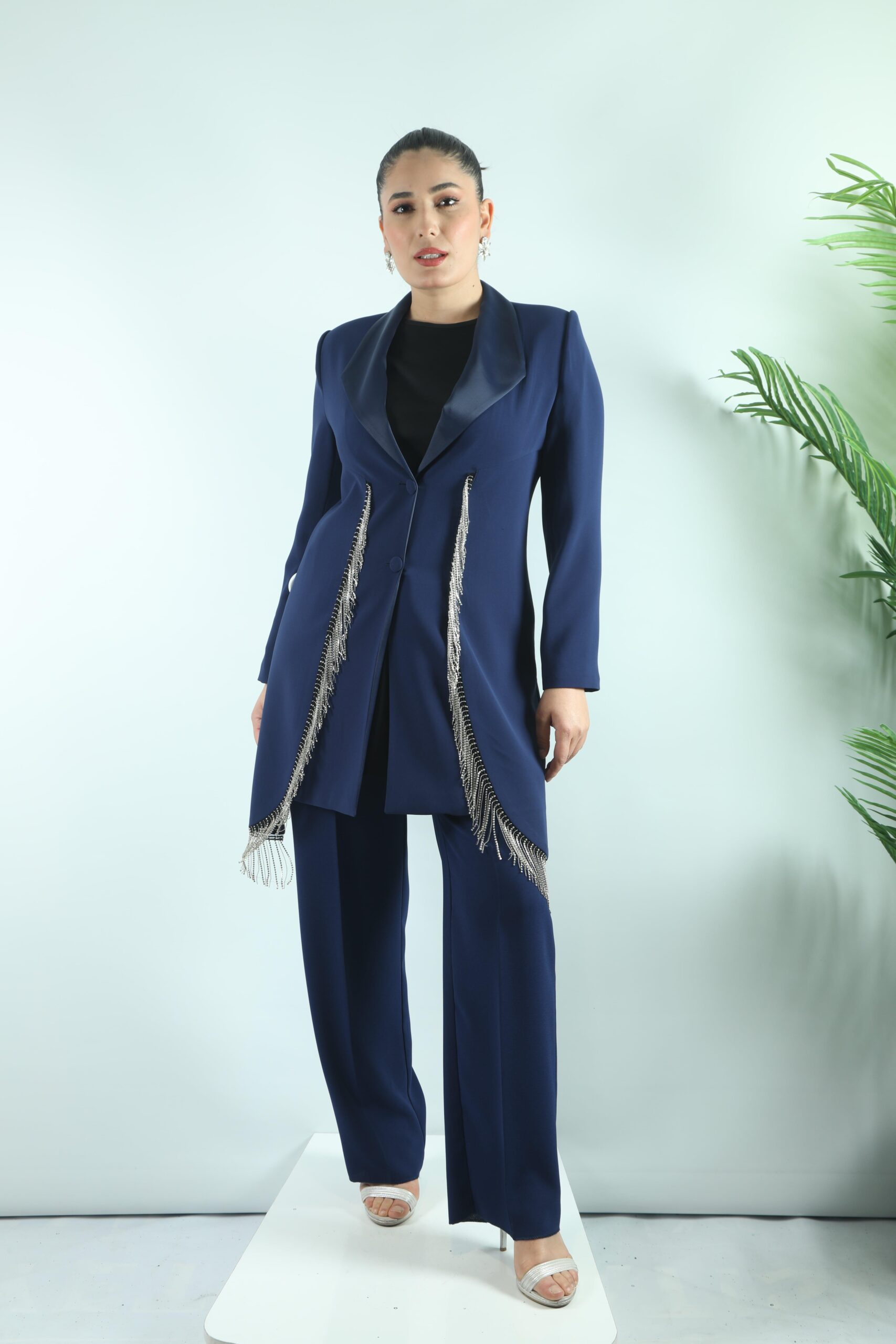- My312 Yaka Taş Detaylı Pantolonlu Takım-1545