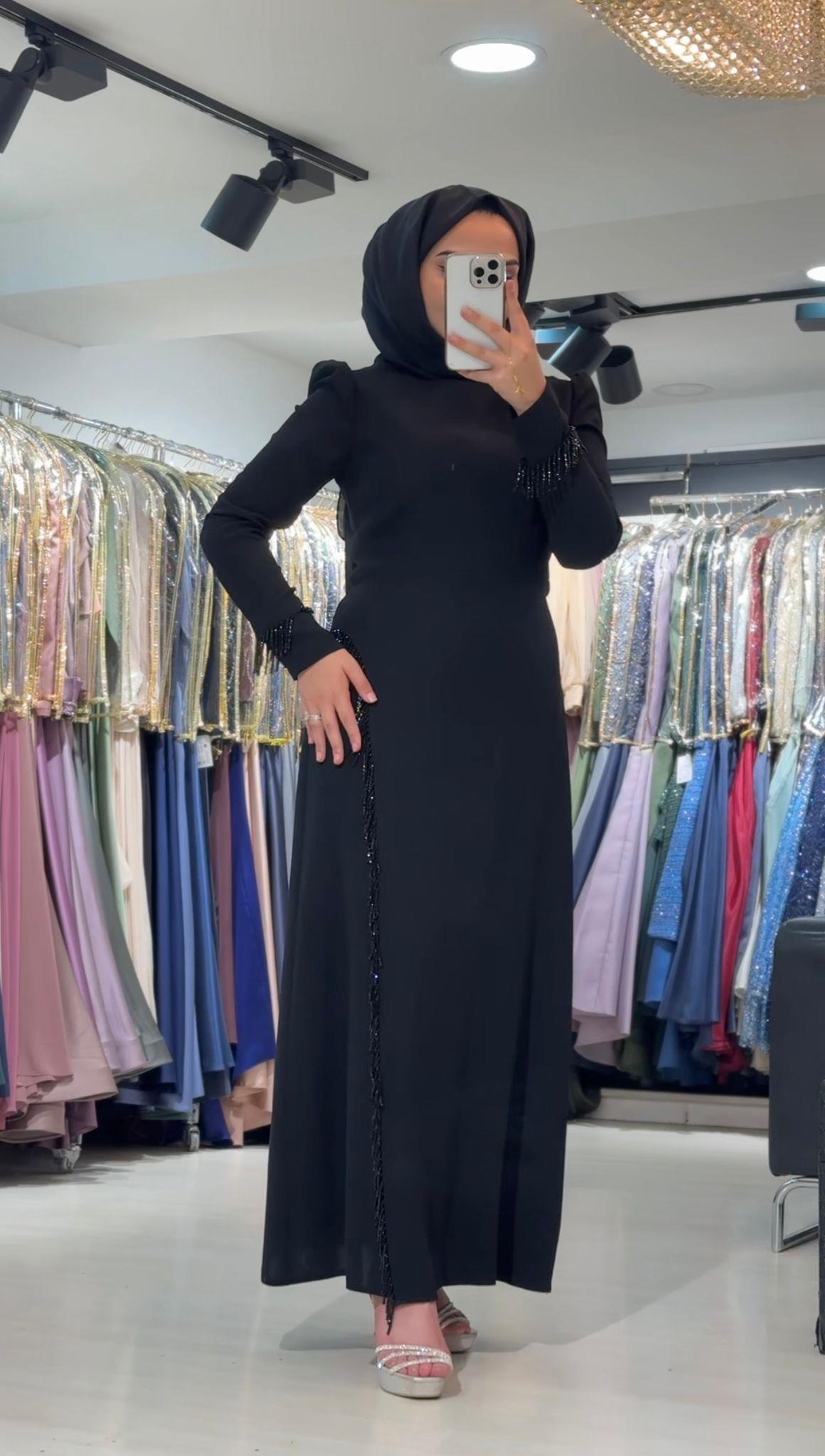 Çınar Özkan Kolu ve Önü Taş Detaylı Elbise-2821