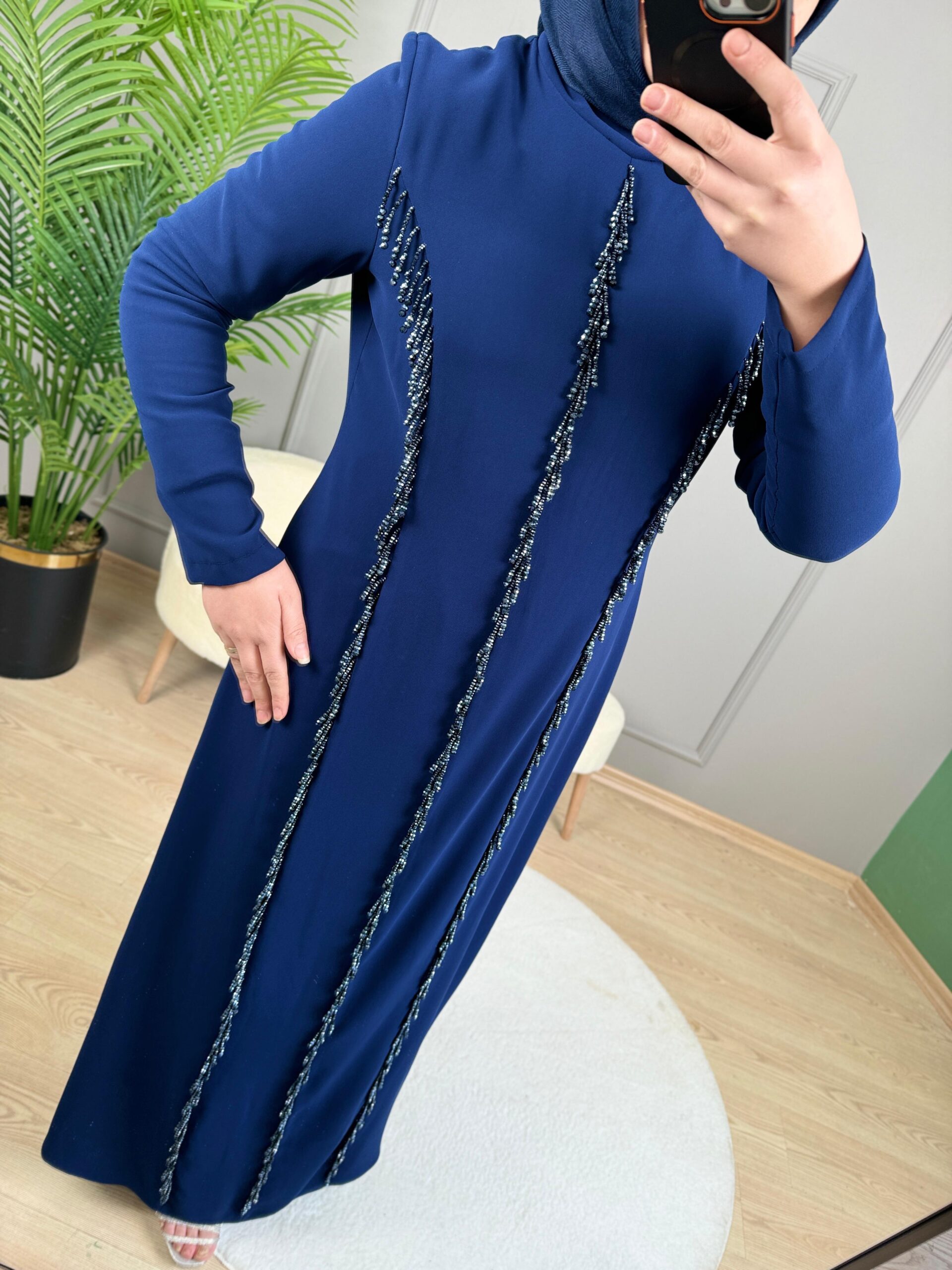 - Kenzel Taş Detaylı Abiye Elbise-7098