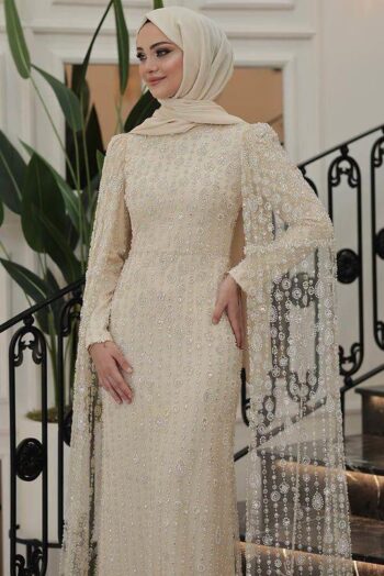 - Kenzel Kolları Otriş Detaylı Abiye Elbise-9021