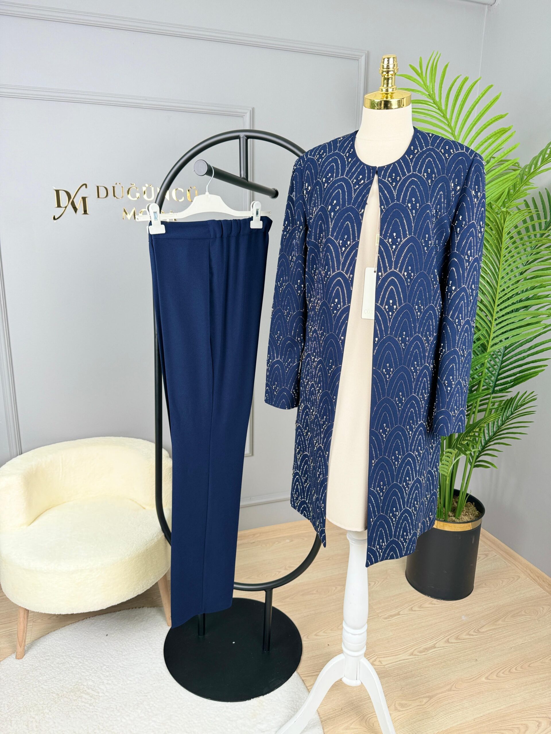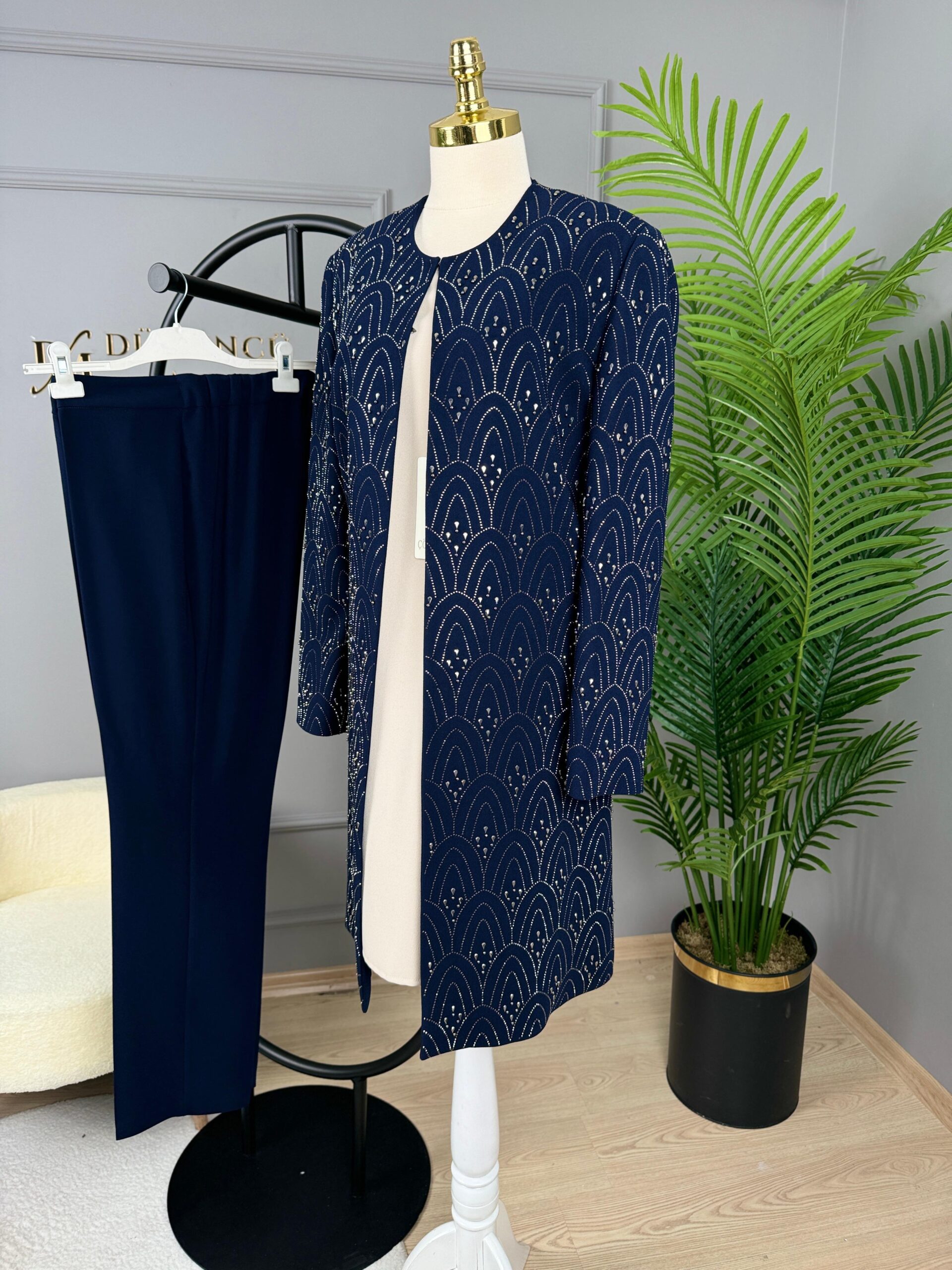 Çözgü Ceketi Tamamı Taş Detaylı Pantolonlu Takım-300