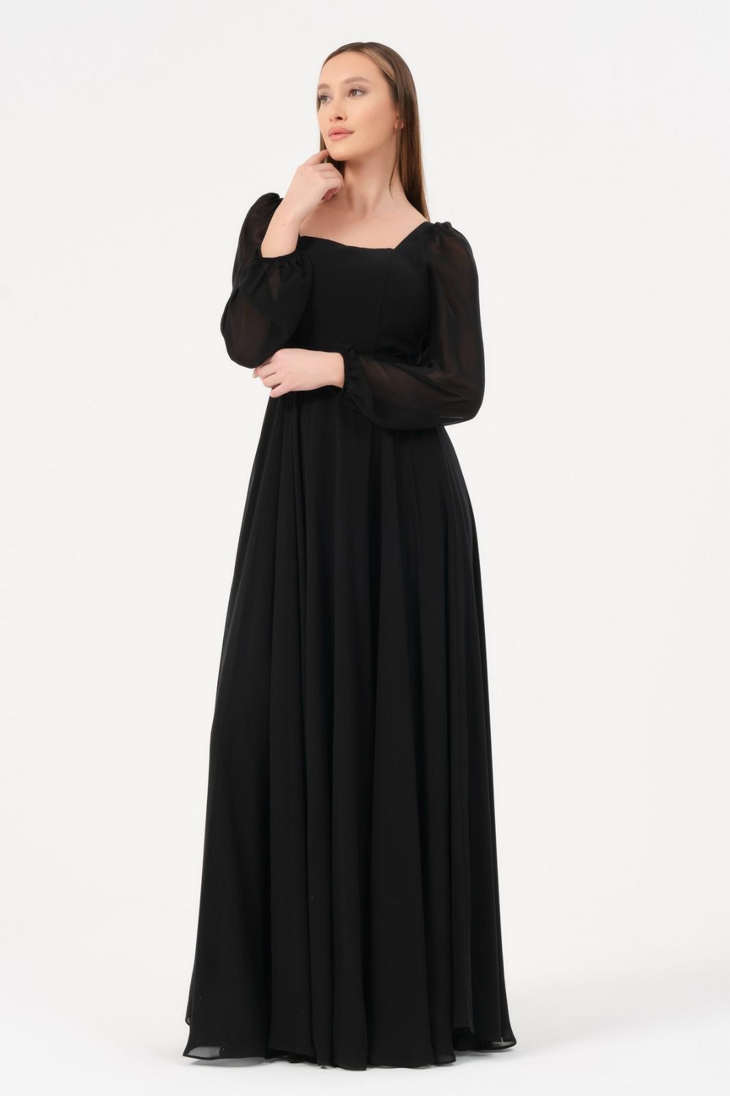 Dans Kare Yaka Şifon Abiye Elbise-1555