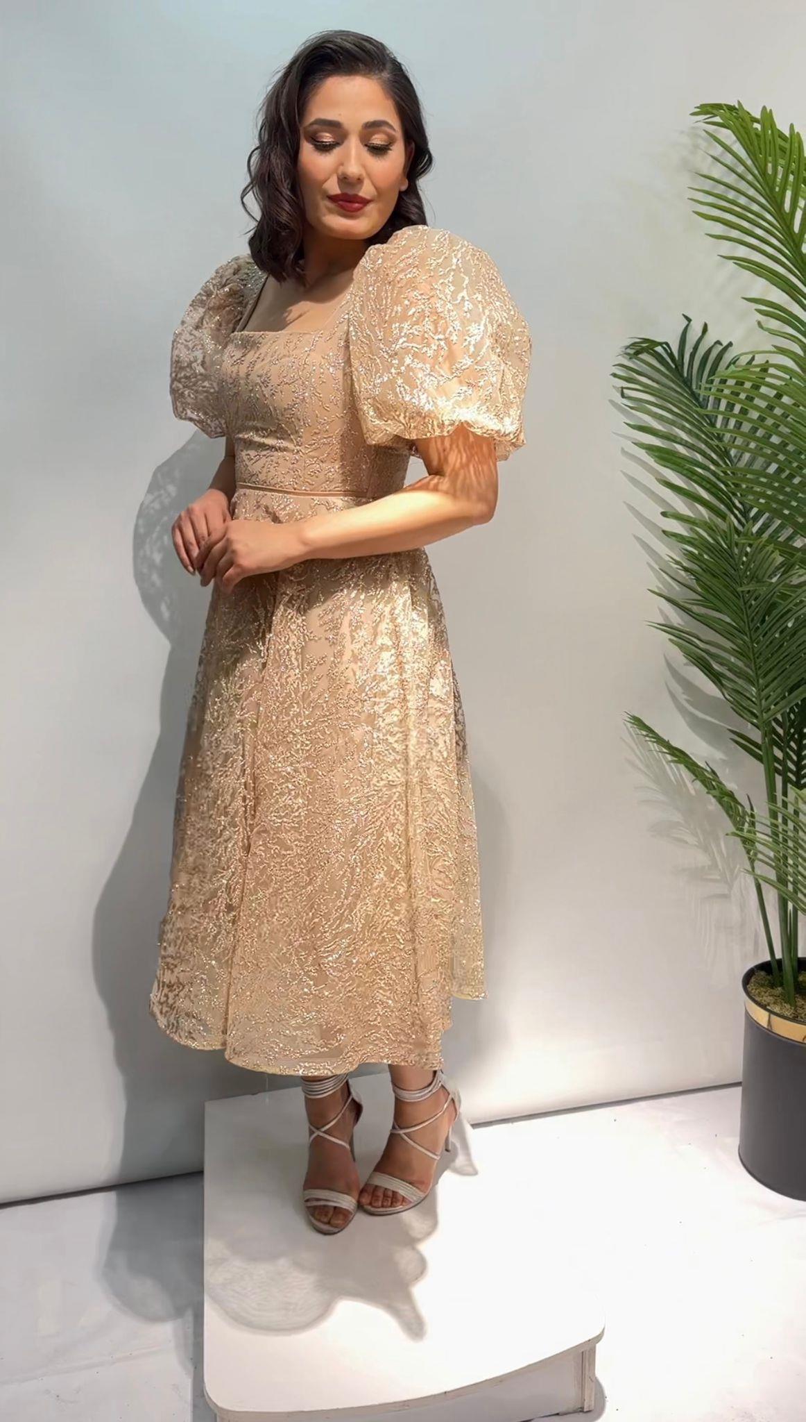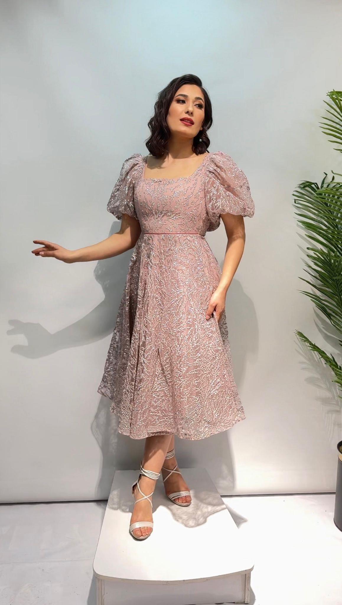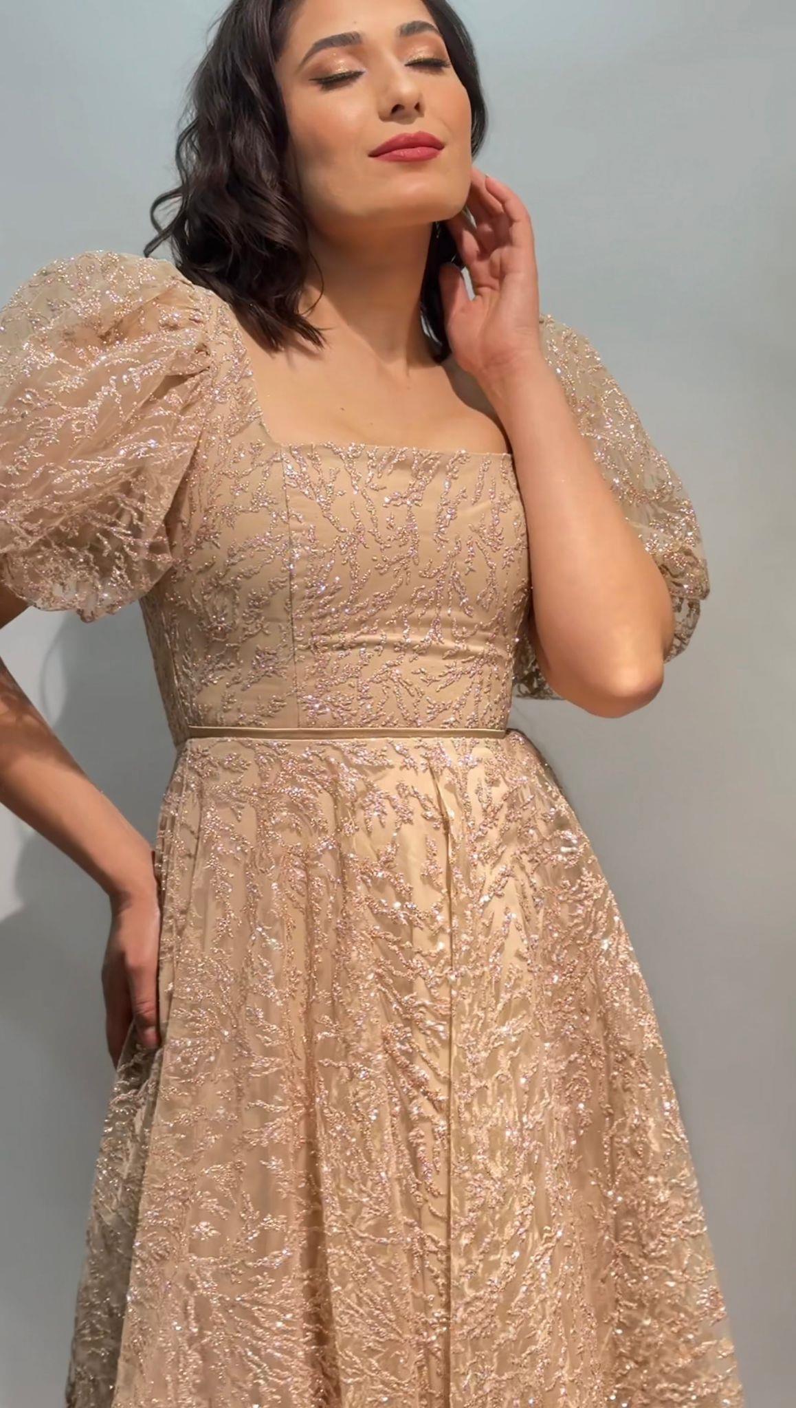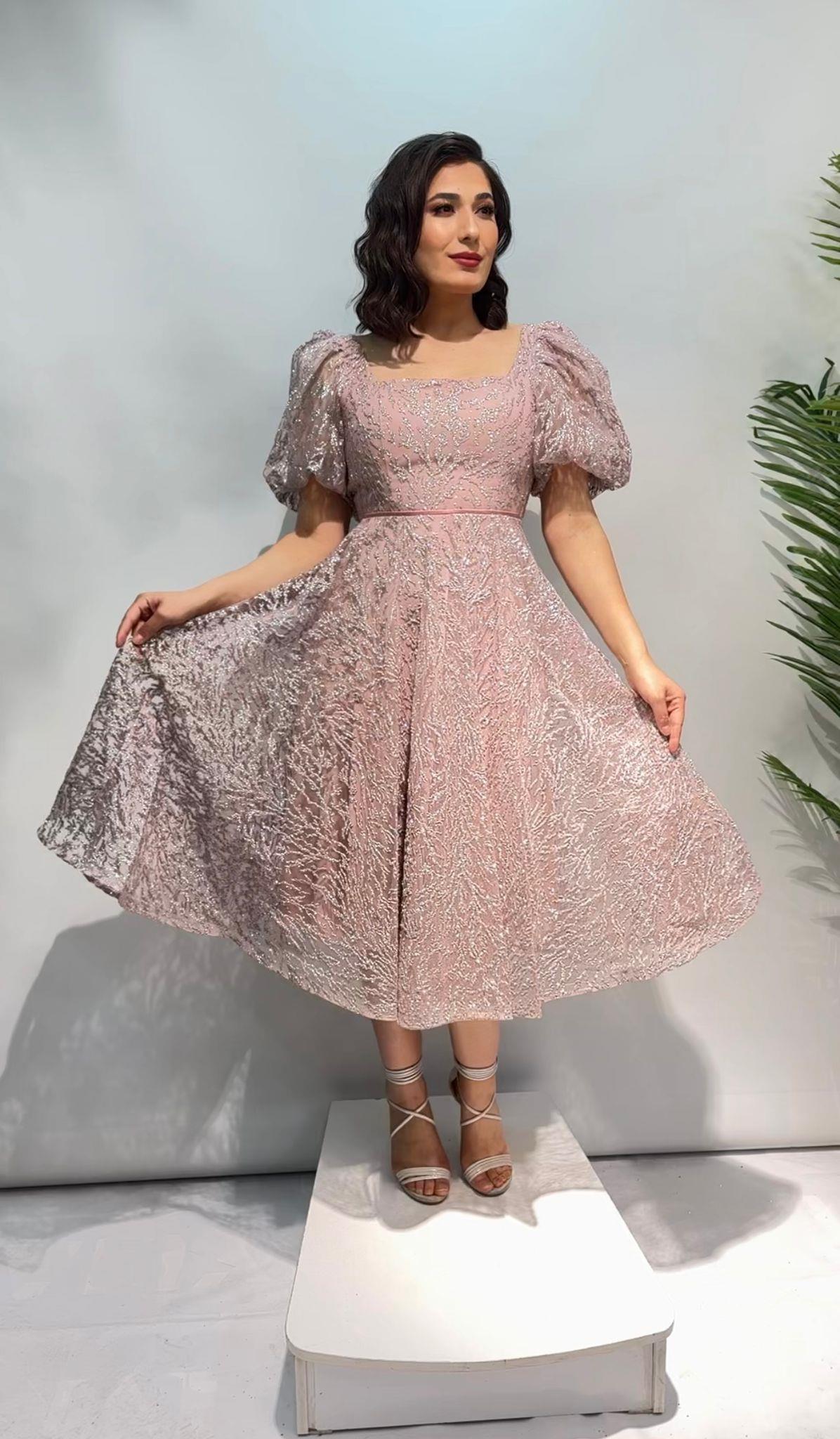 Dans Kol Kısmı Balon Kol Simli Abiye Elbise -1491