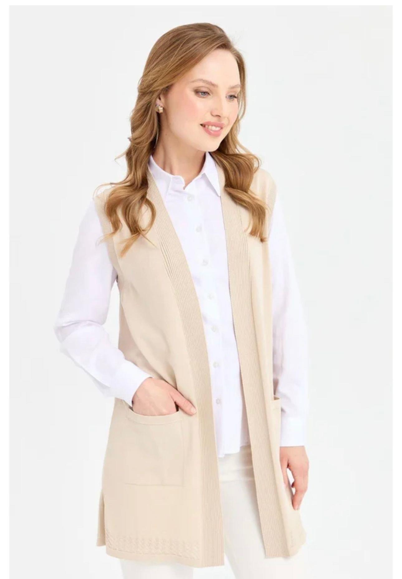 - Desen Triko Kadın Sıfır Yaka Kol Ucu Düğmeli Yün Kazak-23158