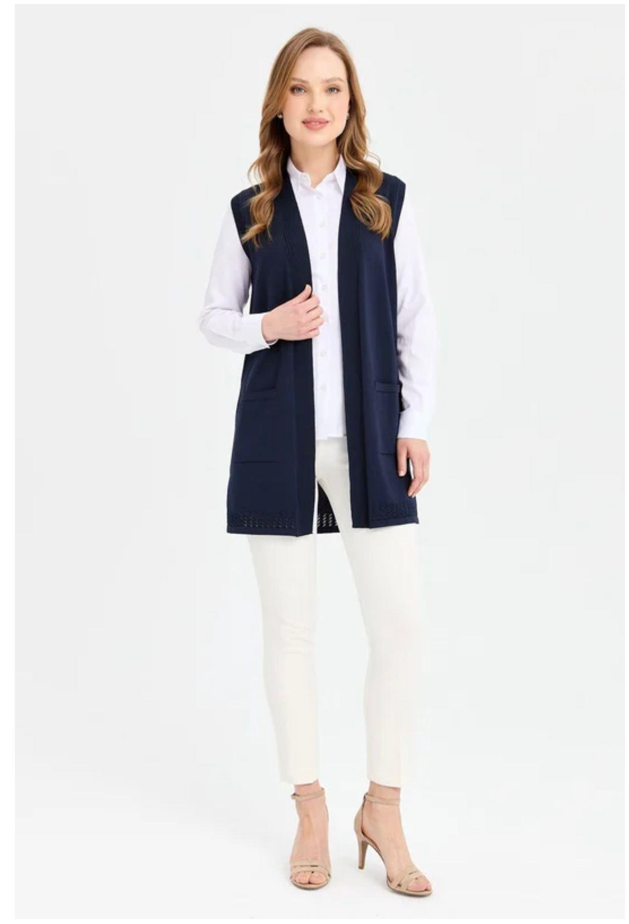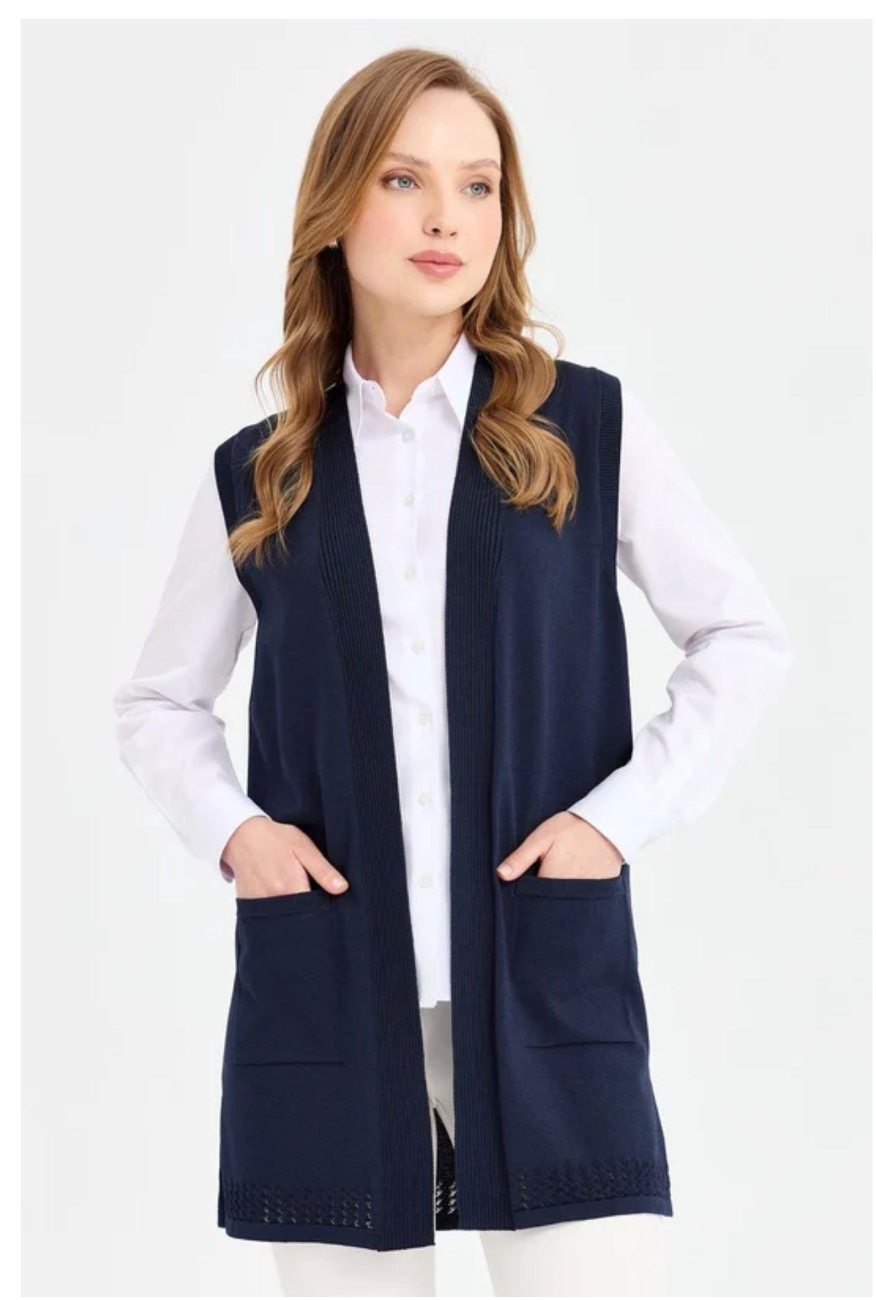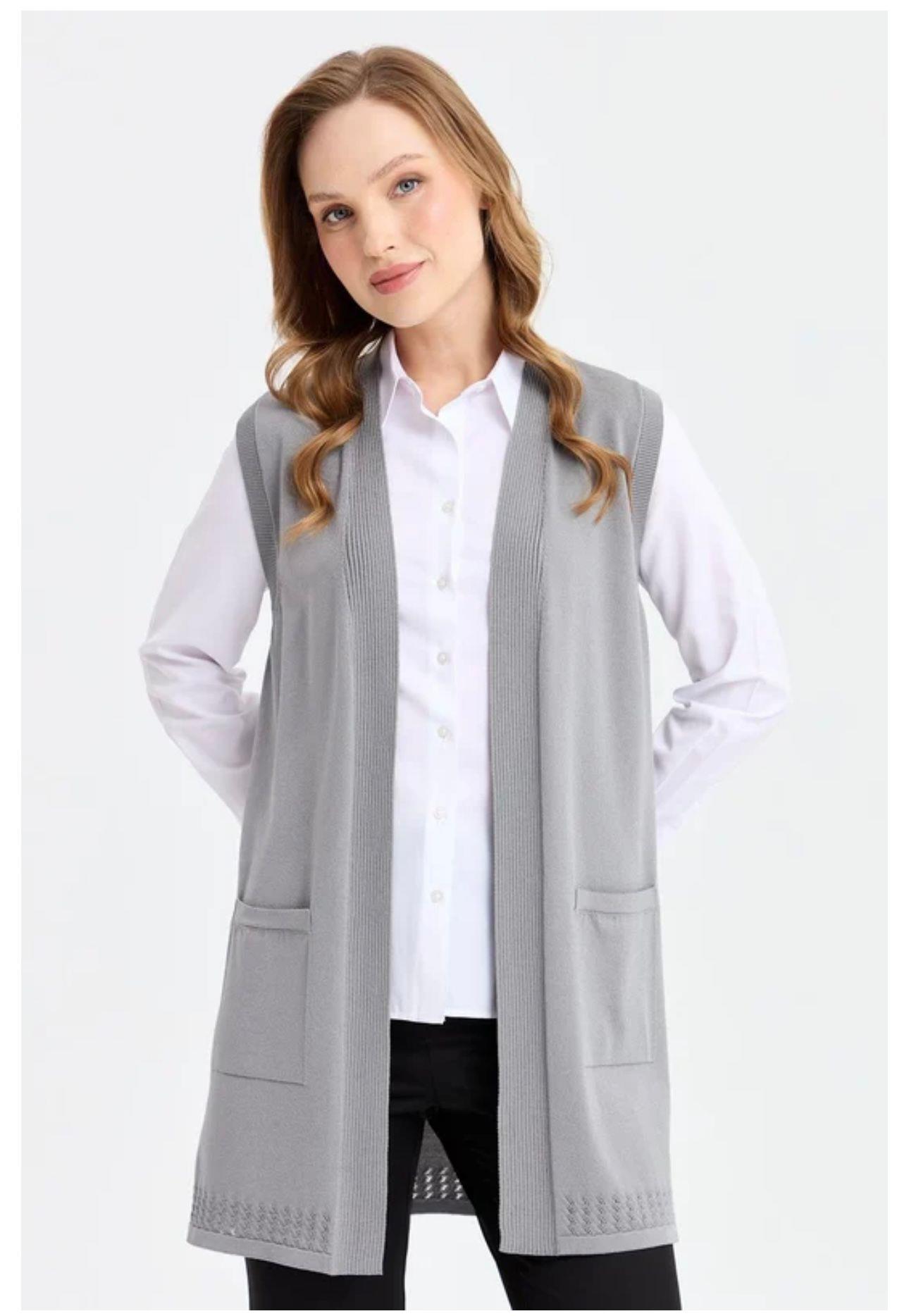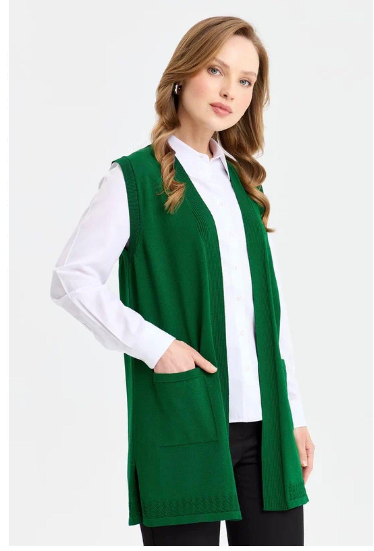- Desen Triko Kadın V Yaka Basic Yün Hırka-24043