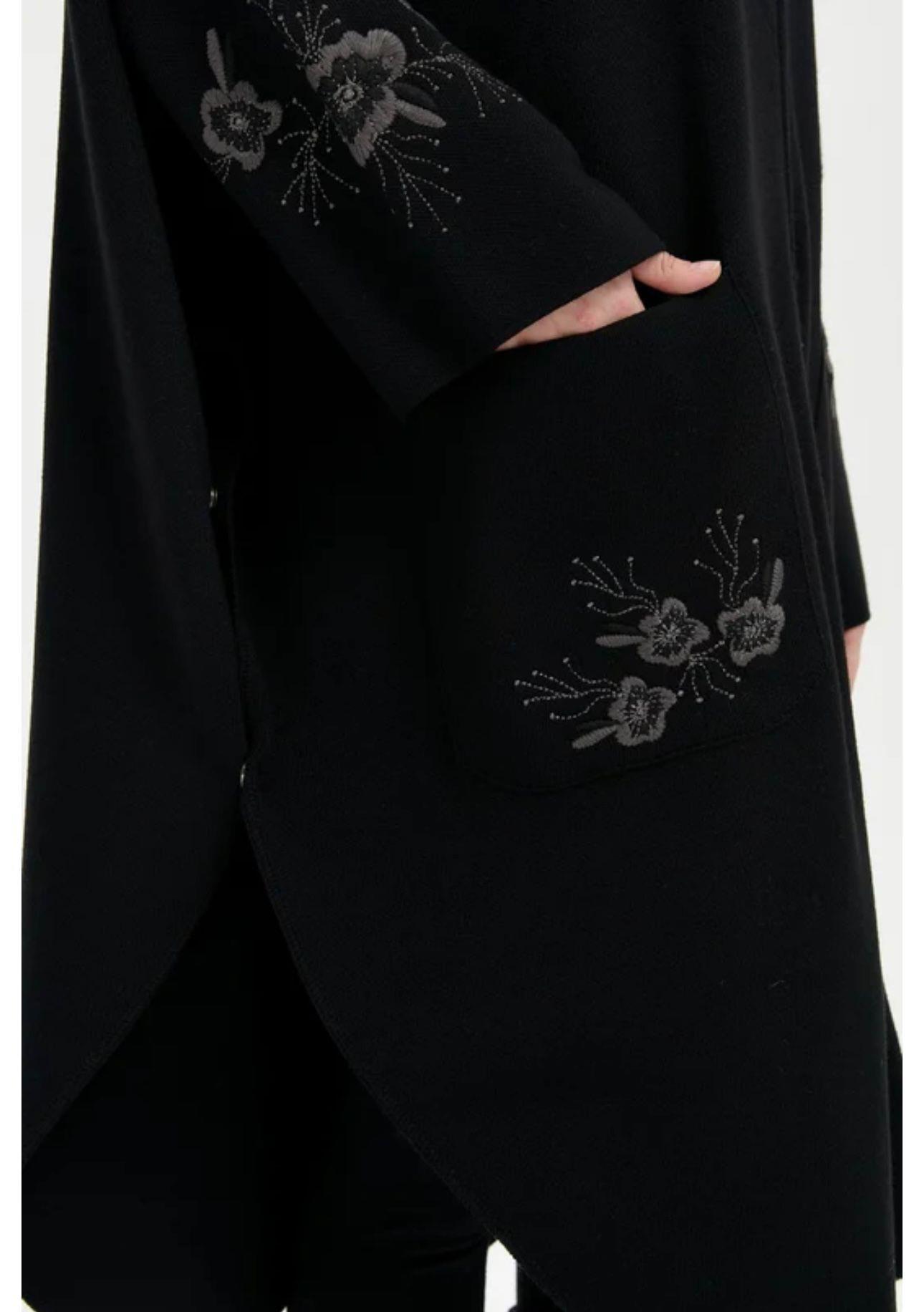 - Desen Triko Omzu ve Cebi Çiçek Detaylı Yün Hırka-23009