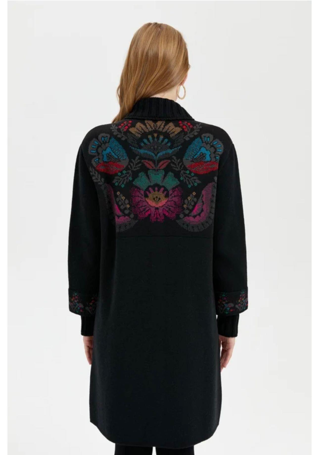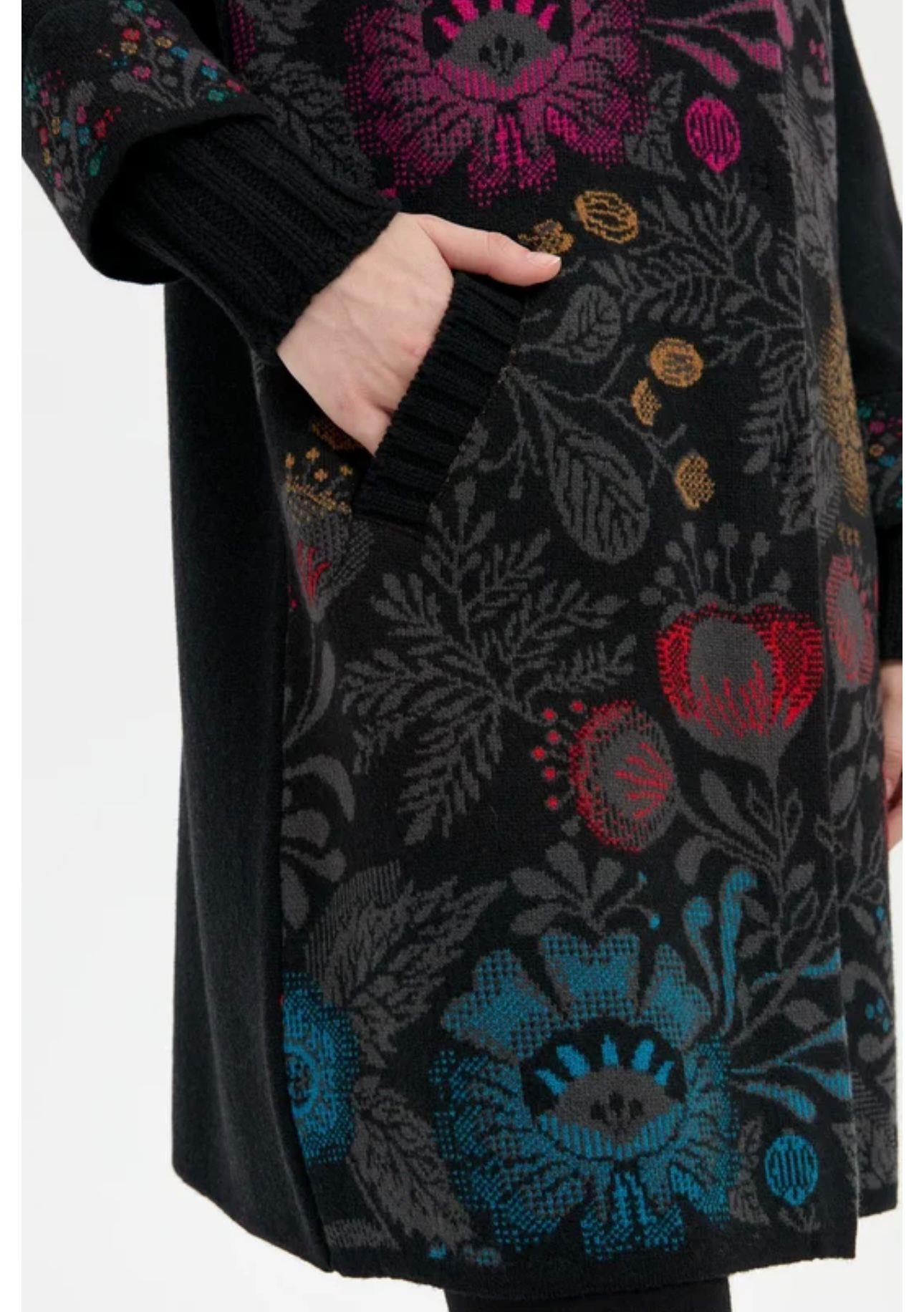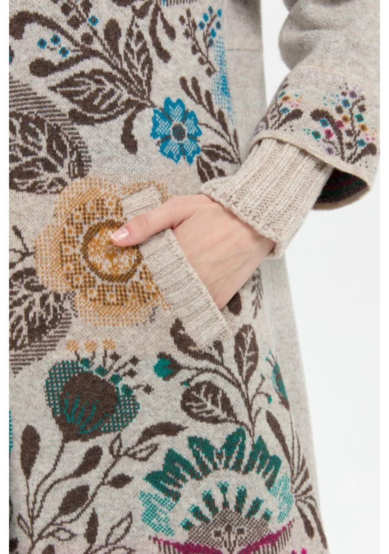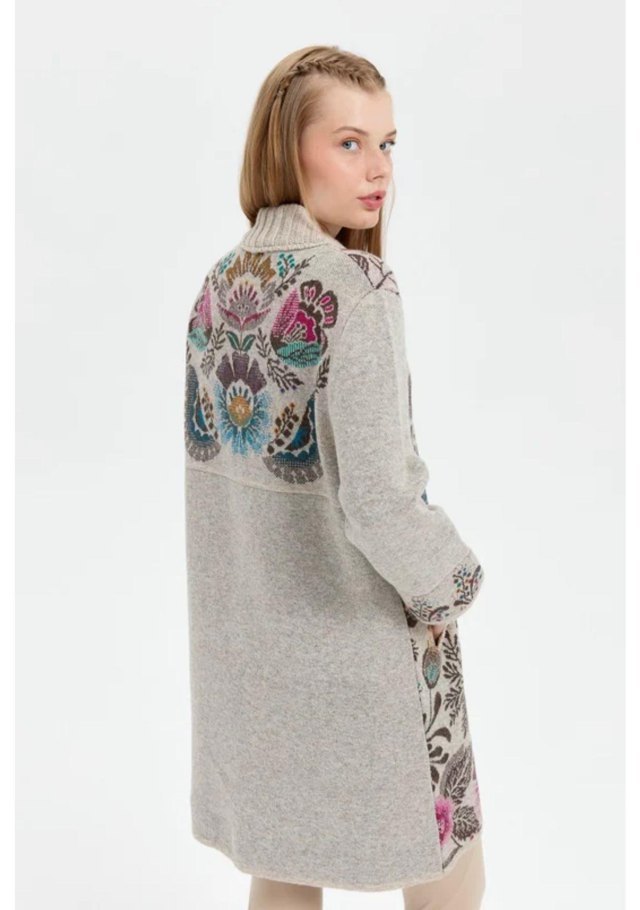 Desen Triko Kadın Dik Yaka Önü Renkli Çiçekli Uzun Yün Kaban-24051