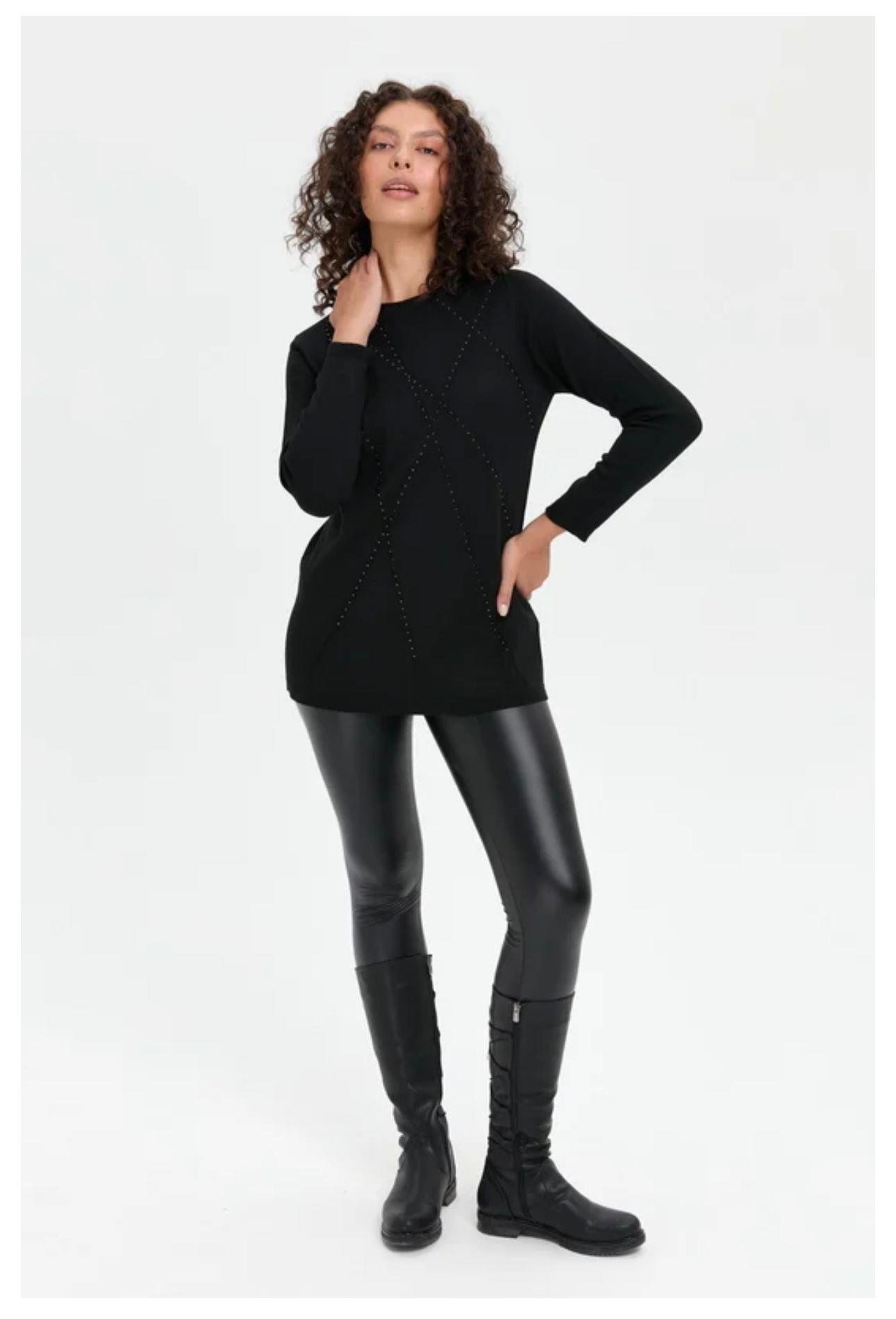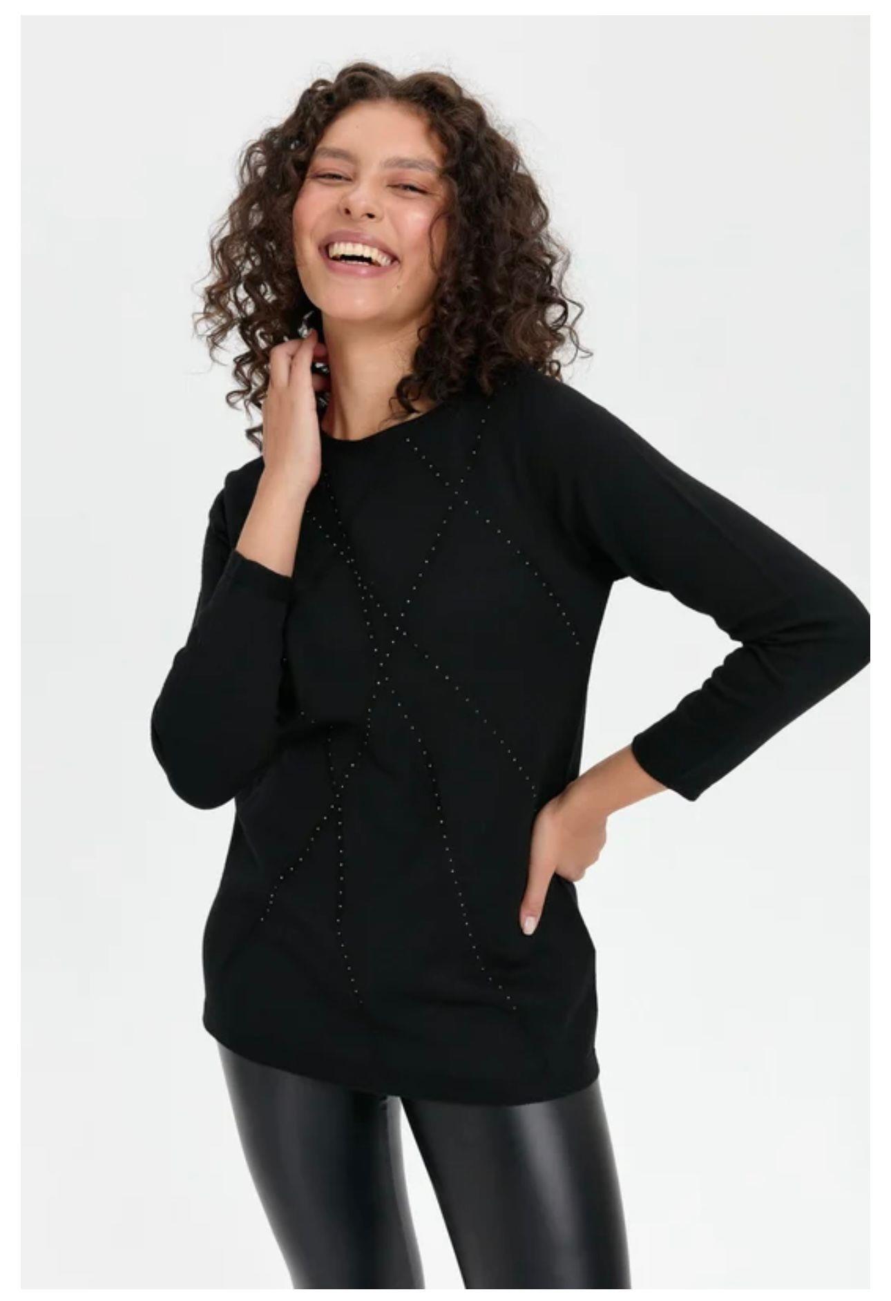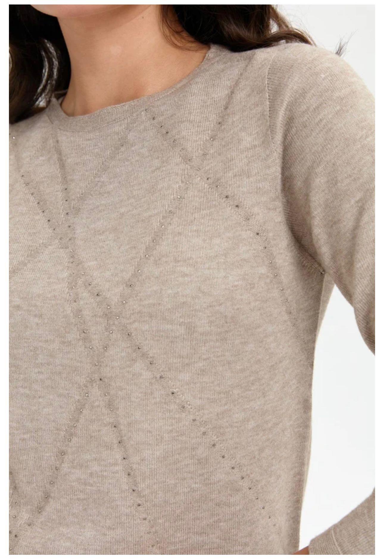 Desen Triko Kadın Önü Çapraz Desenli Taşlı Dikişsiz Kazak-24190
