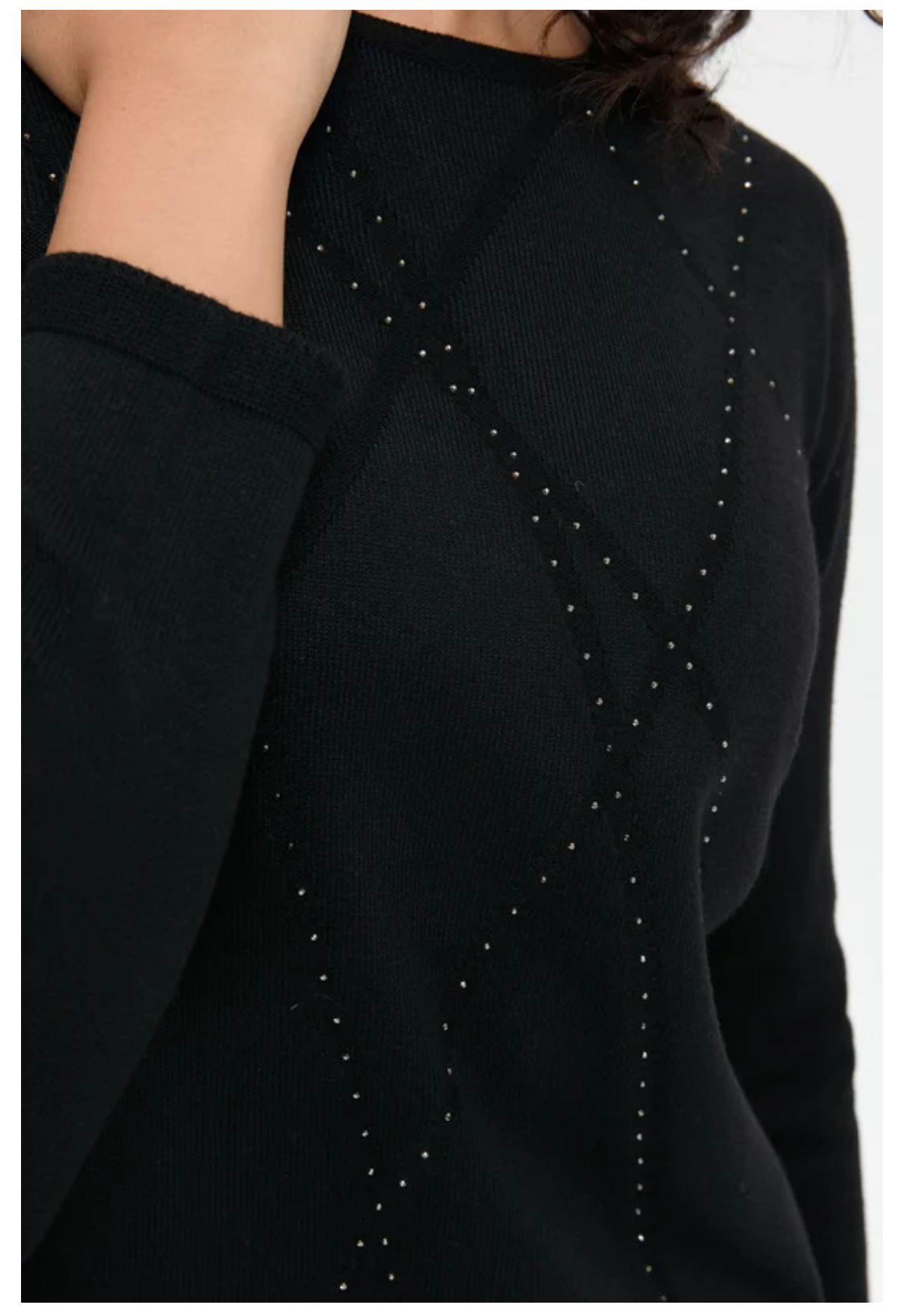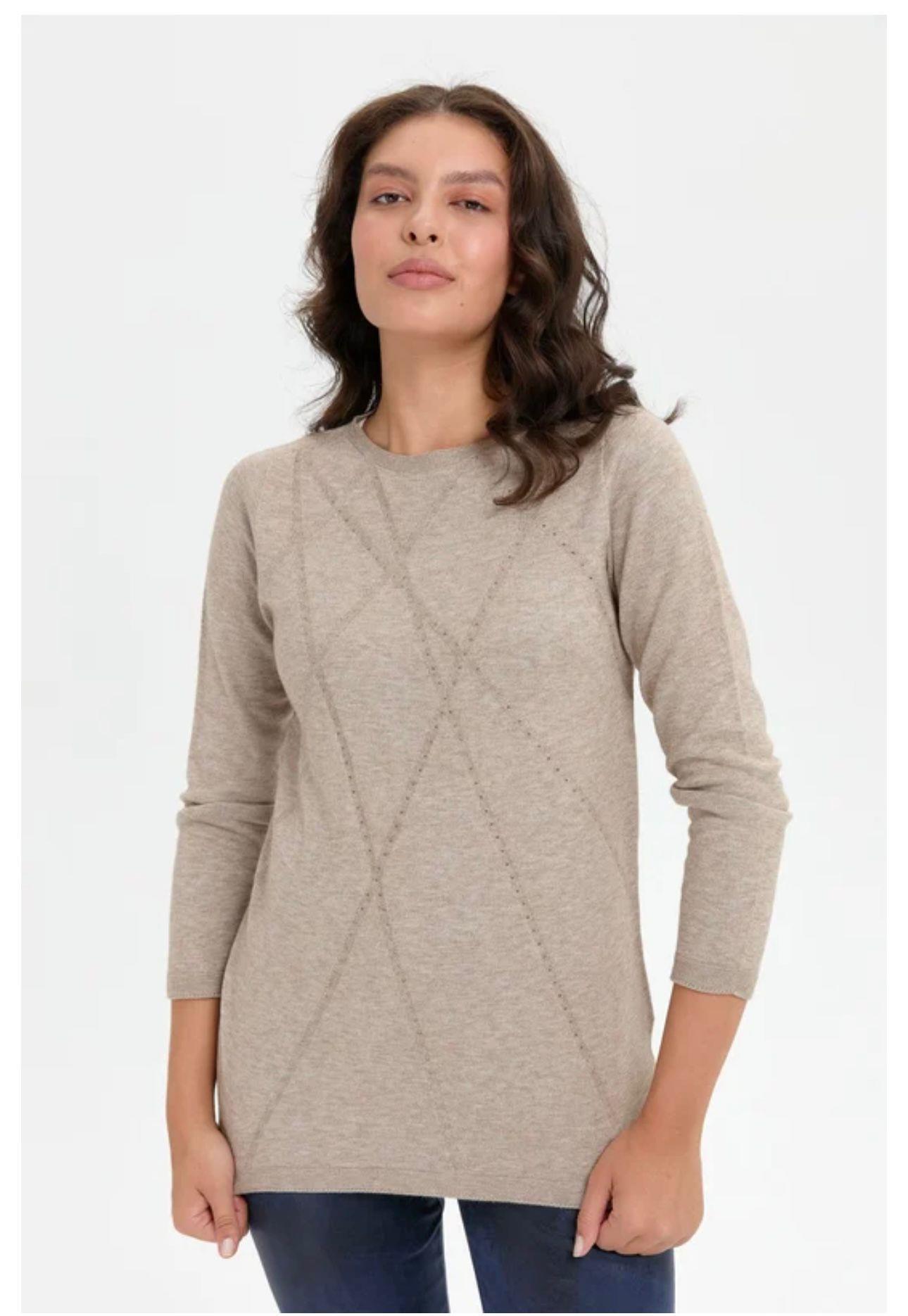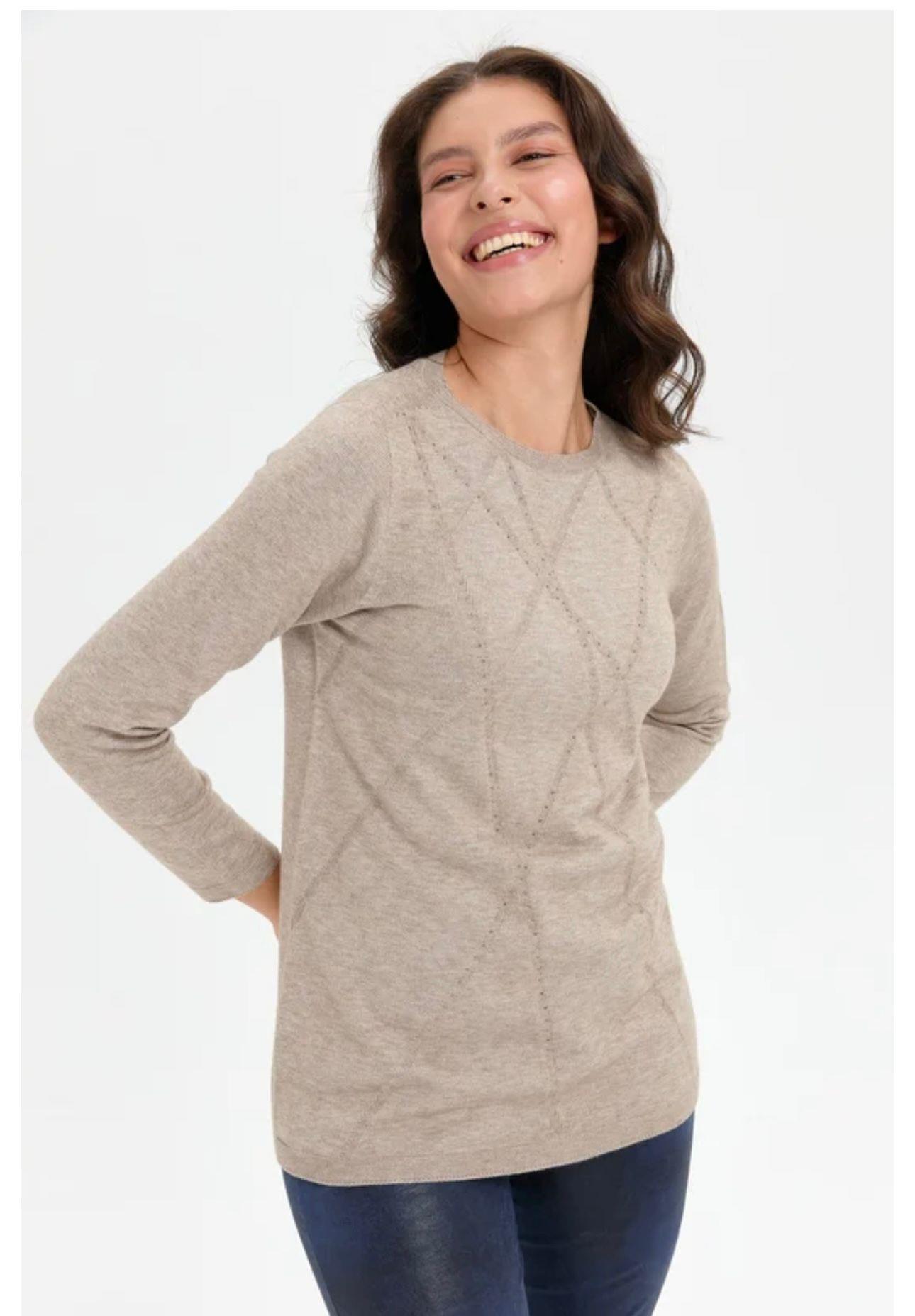 Desen Triko Kadın Önü Çapraz Desenli Taşlı Dikişsiz Kazak-24190