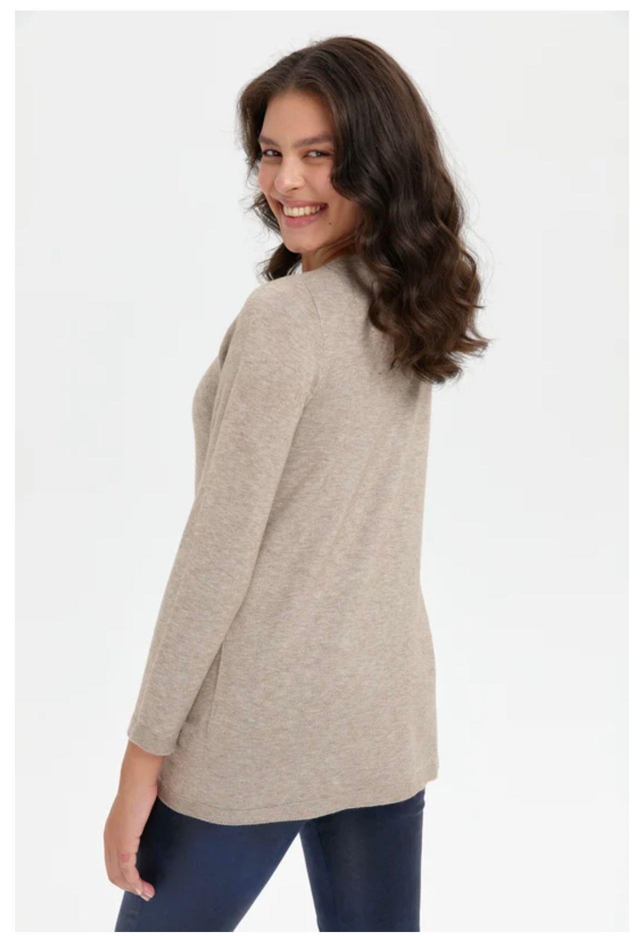 - Desen Triko Kadın Sıfır Yaka Kol Ucu Düğmeli Yün Kazak-23158