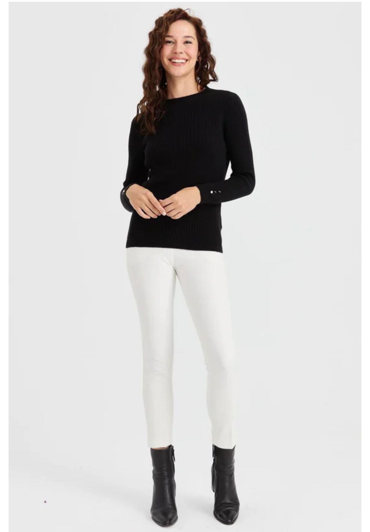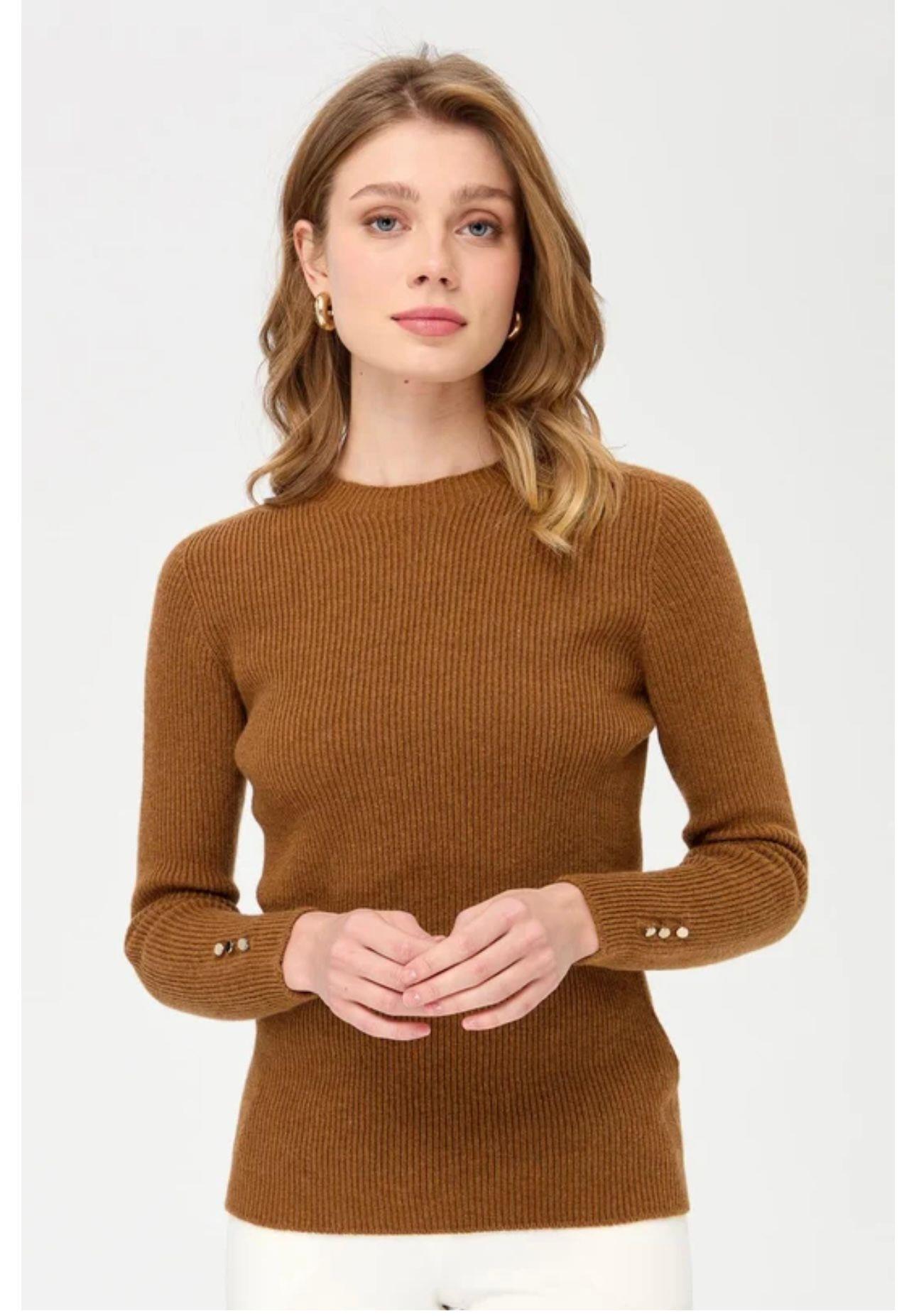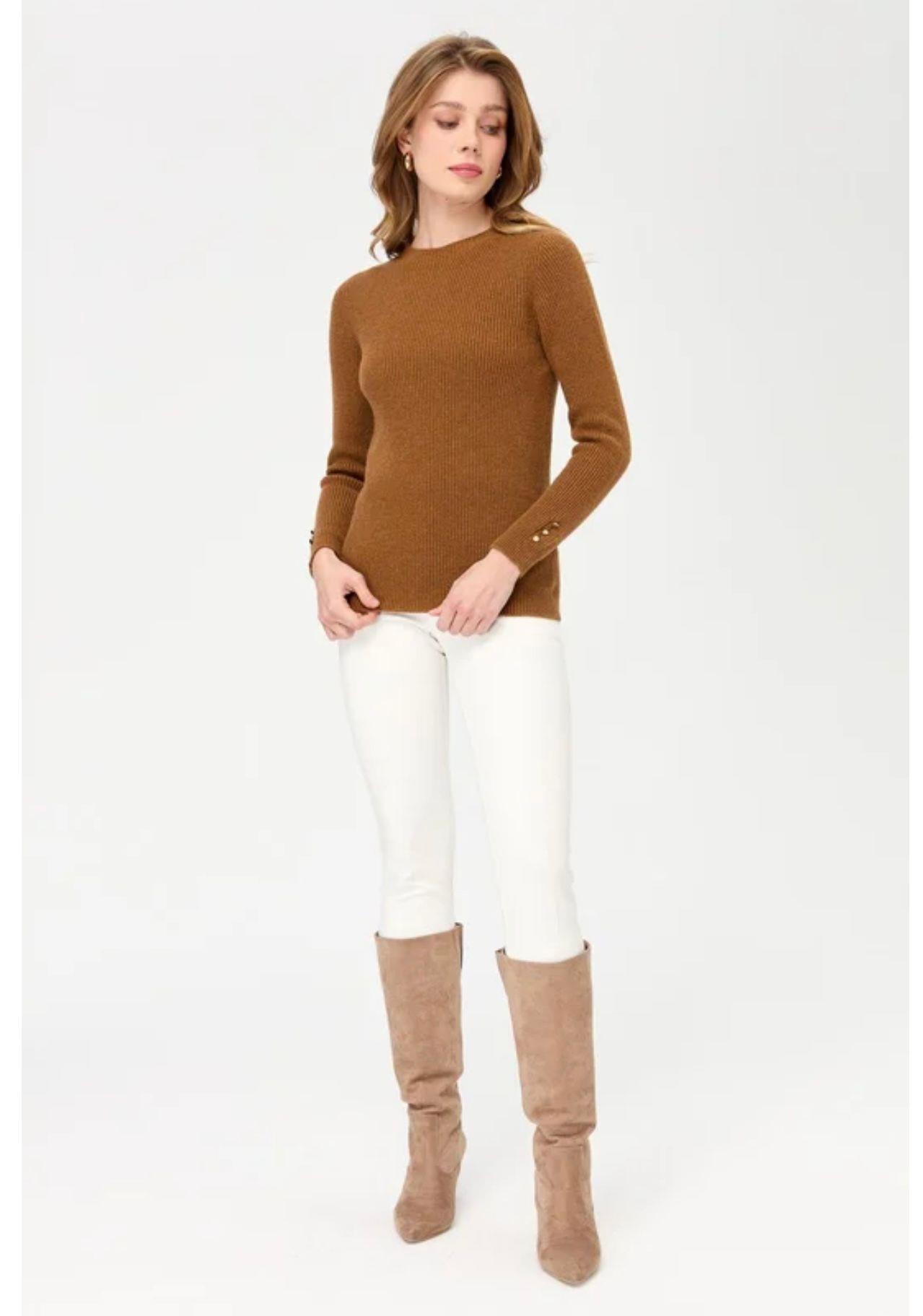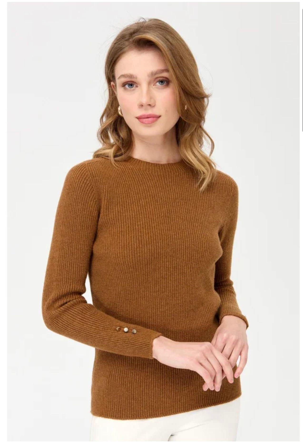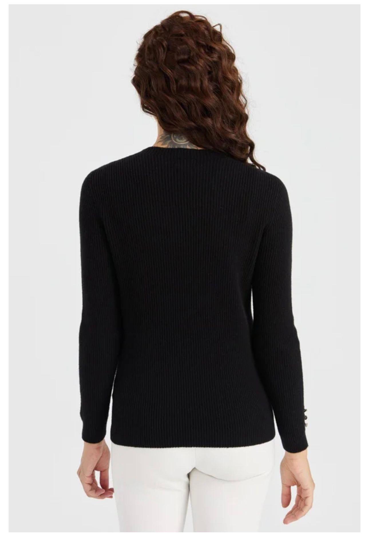- Desen Triko Kadın Sıfır Yaka Kol Ucu Düğmeli Yün Kazak-23158