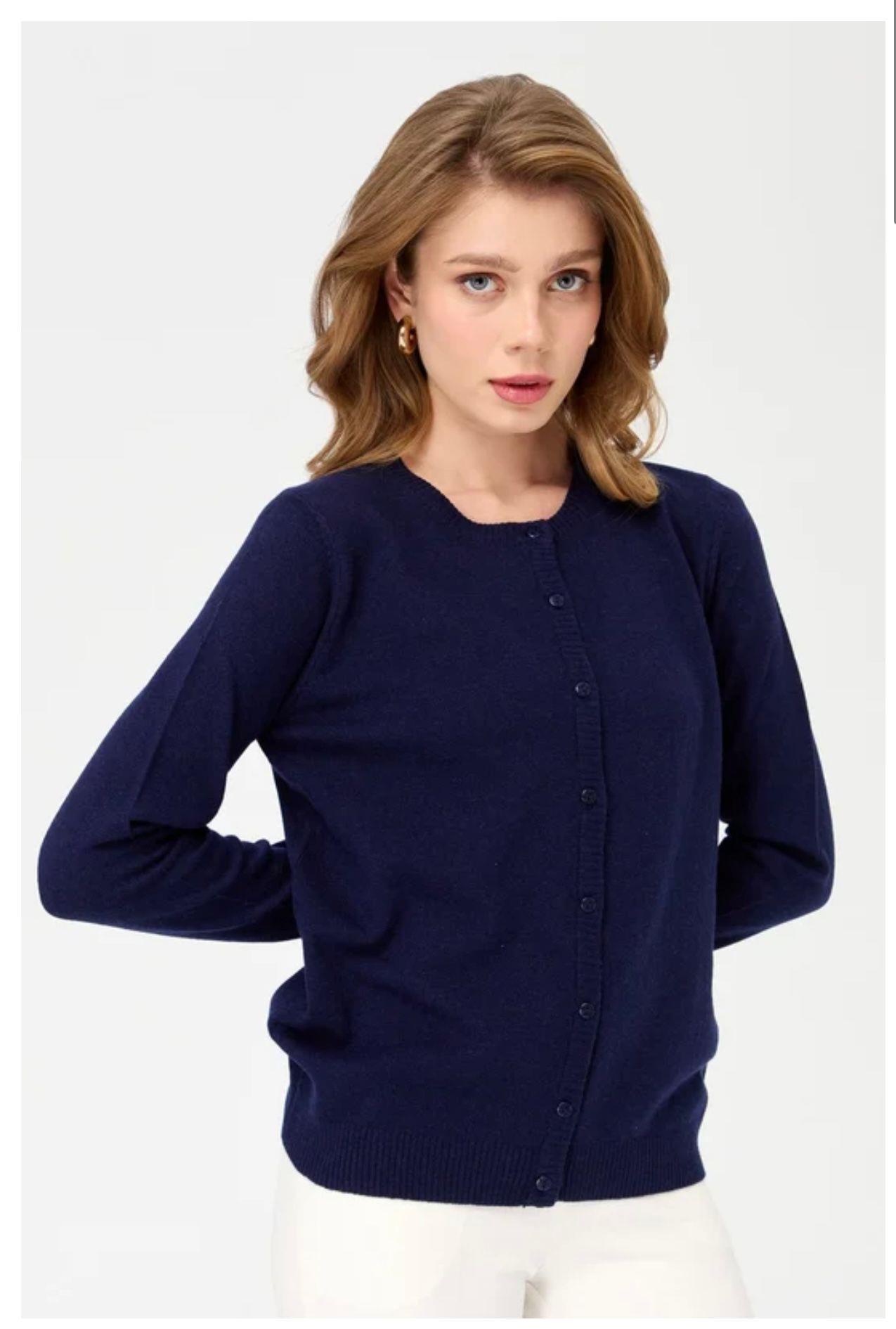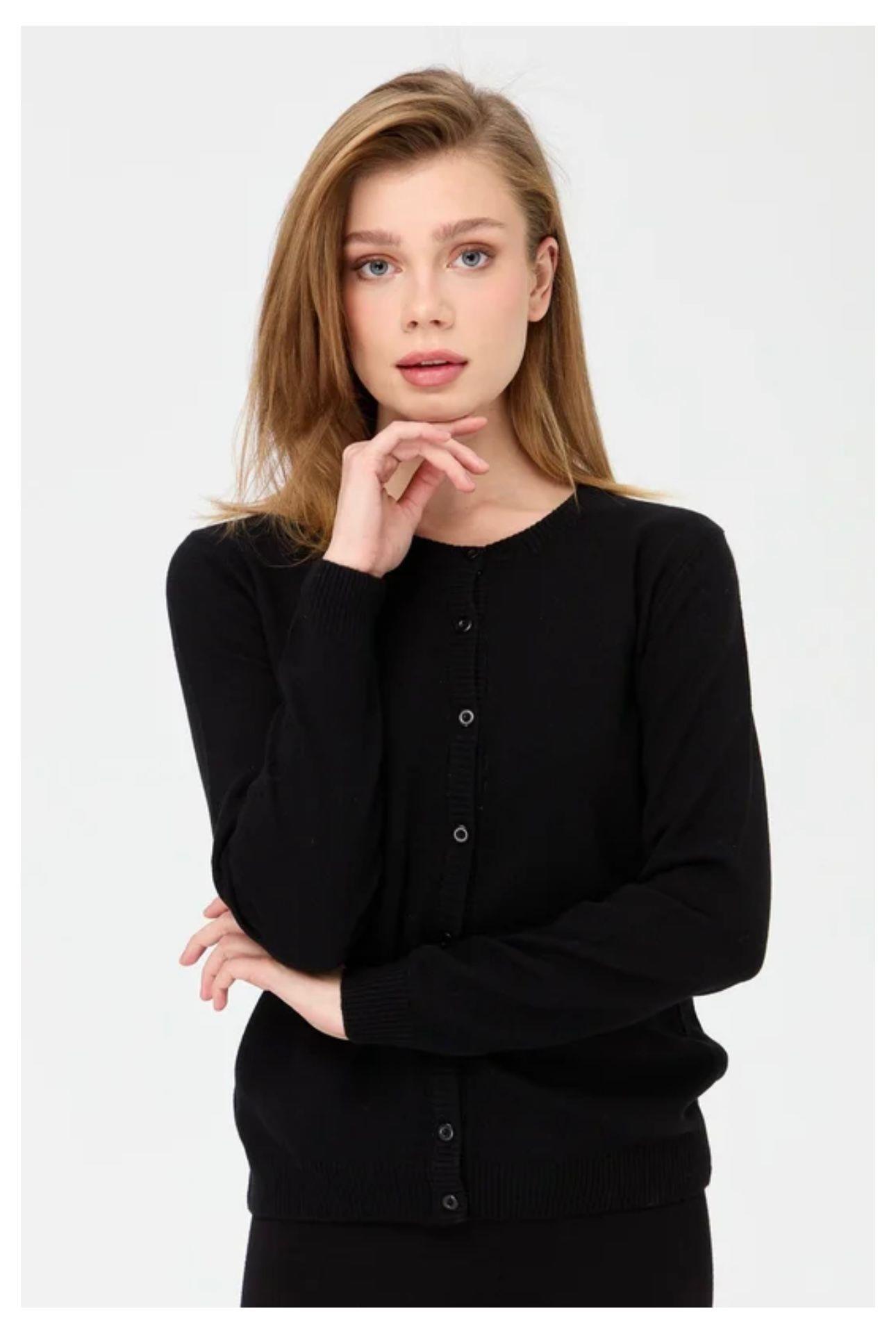 - Desen Triko Kadın V Yaka Basic Yün Hırka-24043