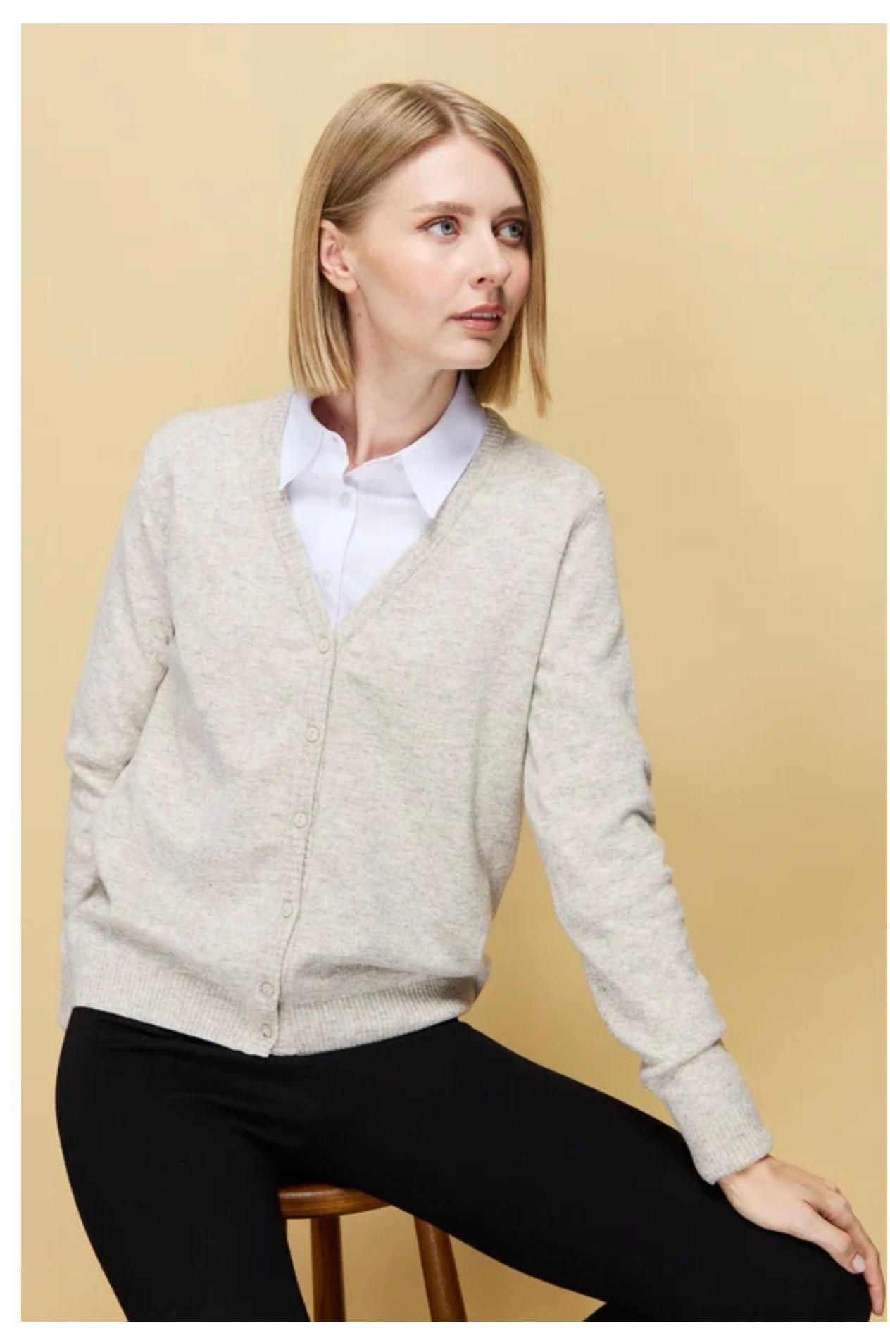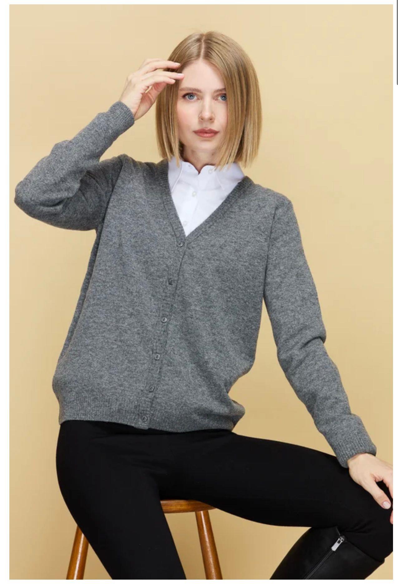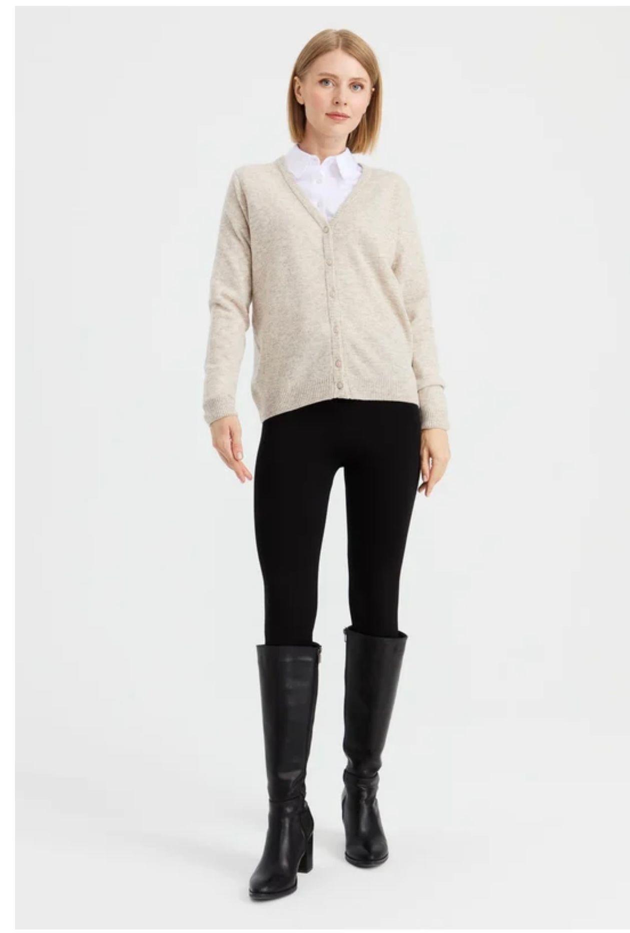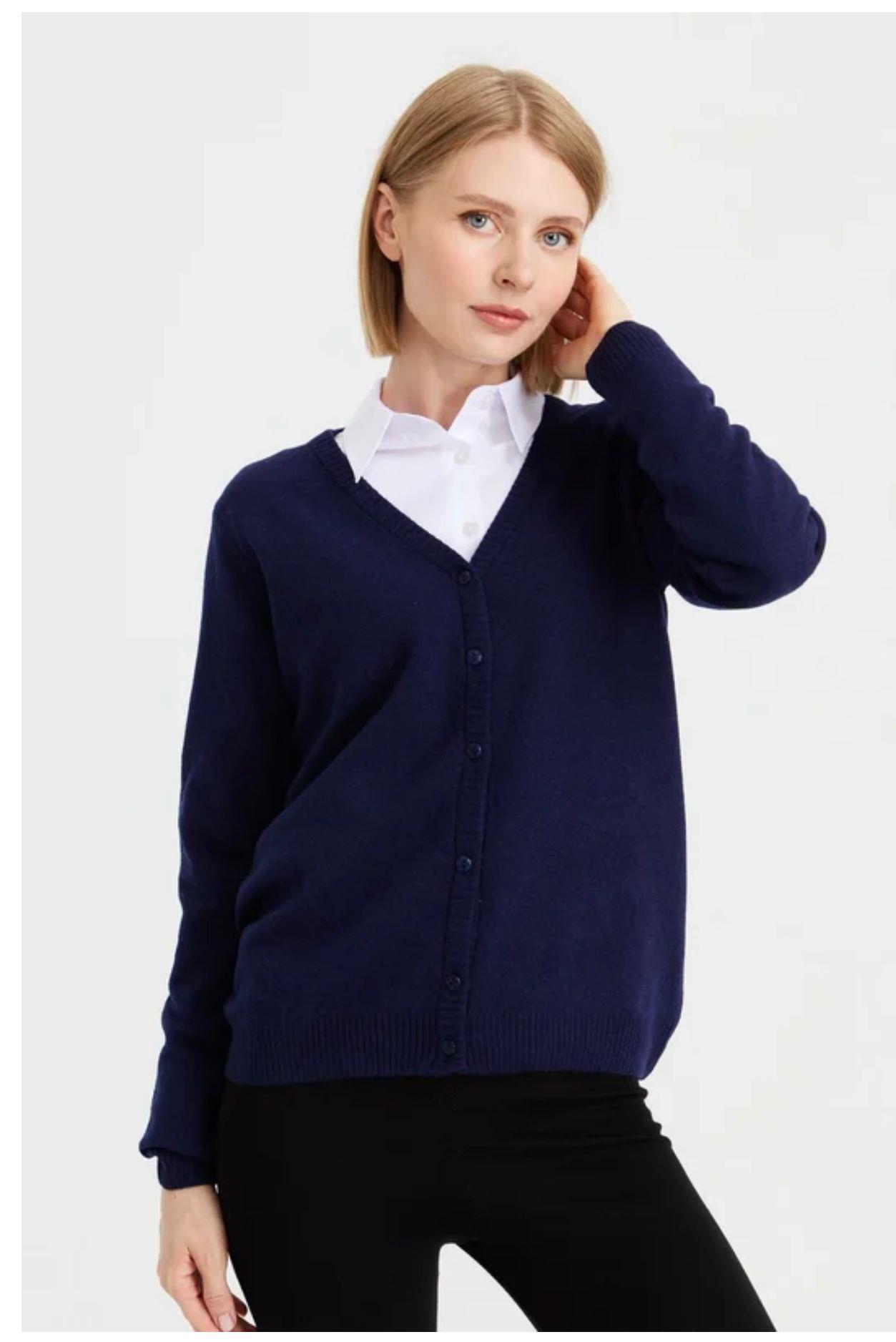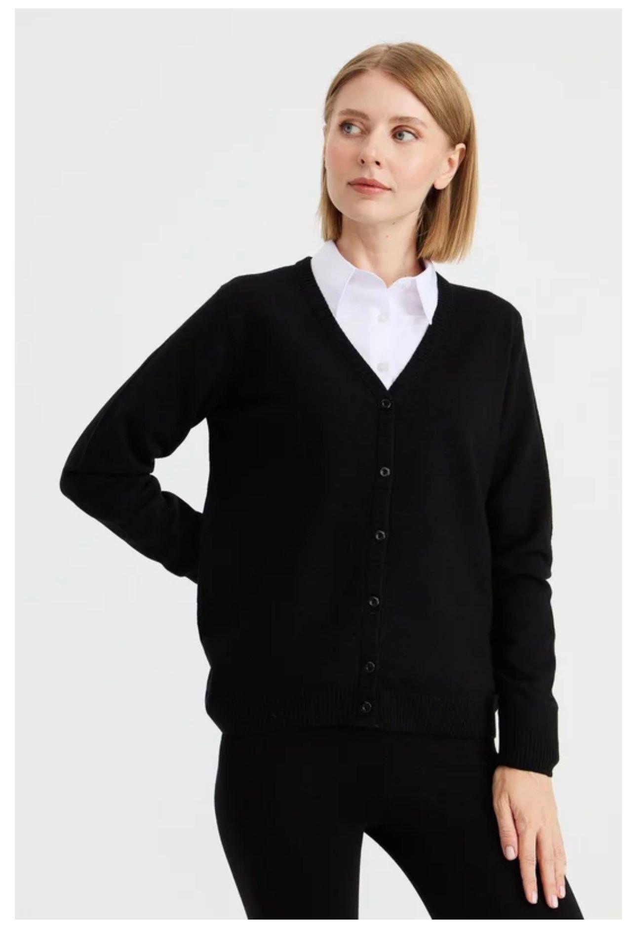 - Desen Triko Kadın V Yaka Basic Yün Hırka-24043