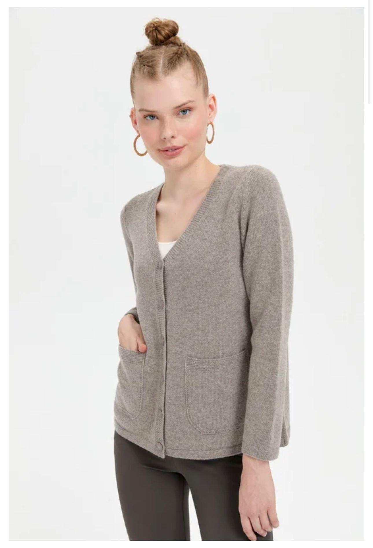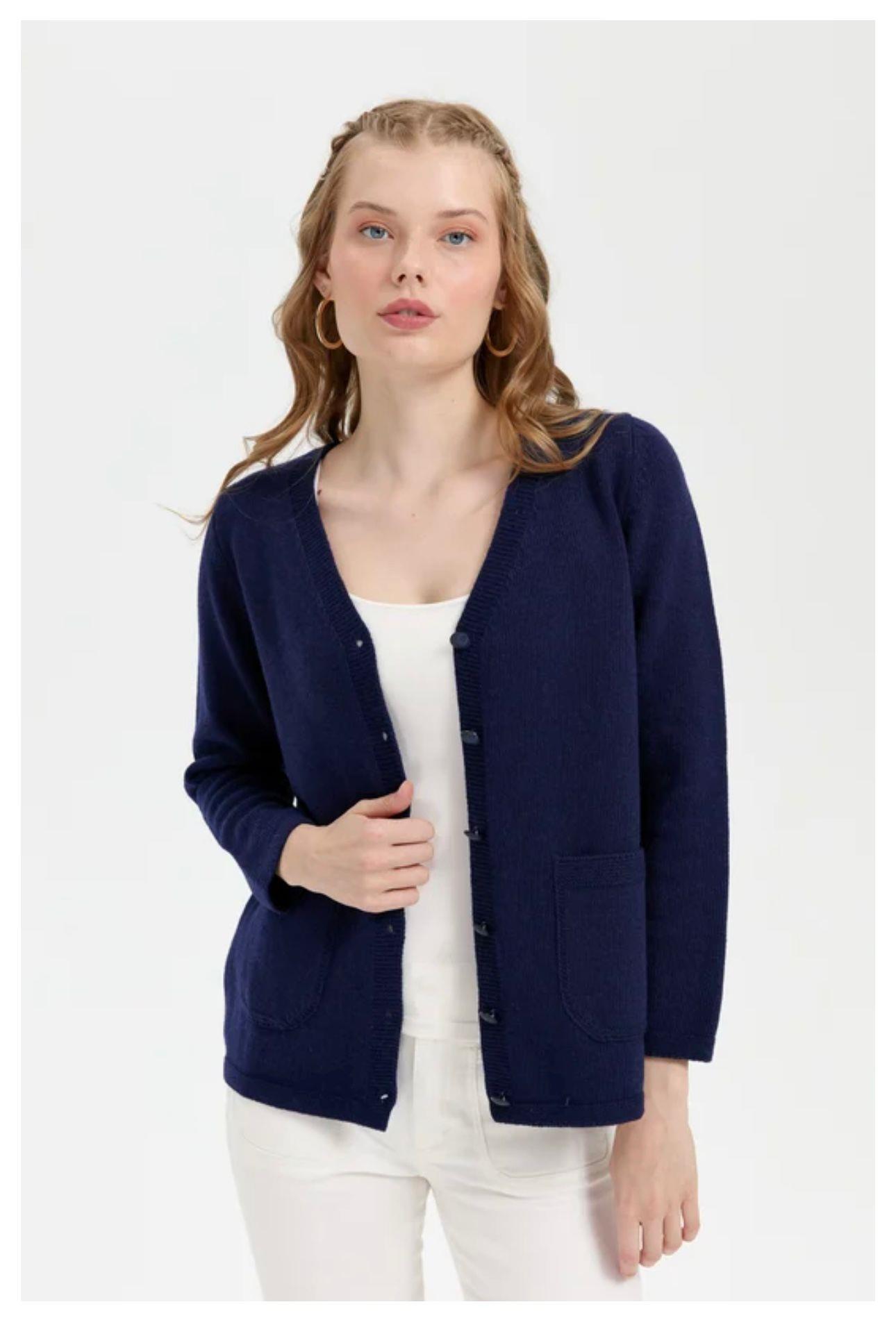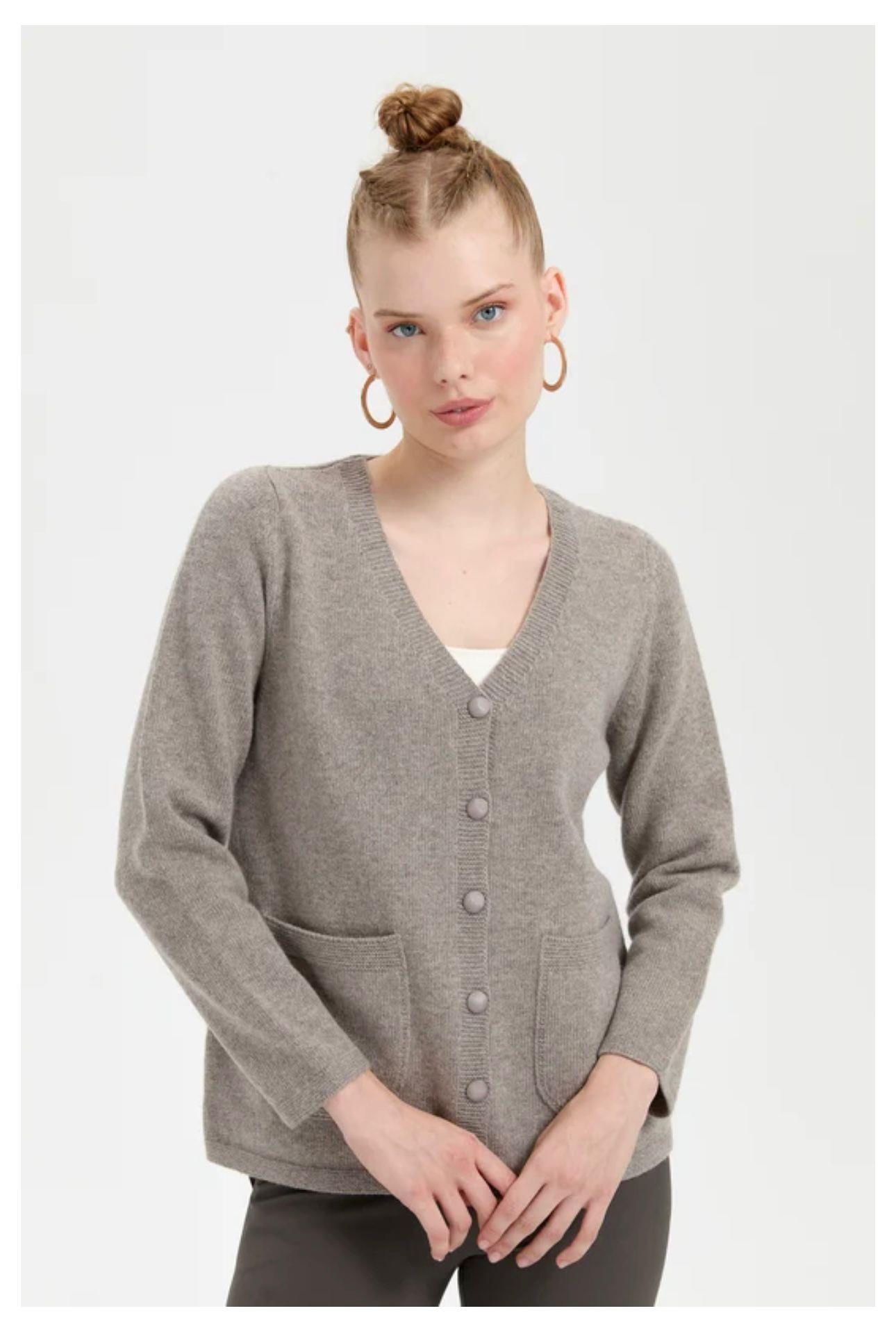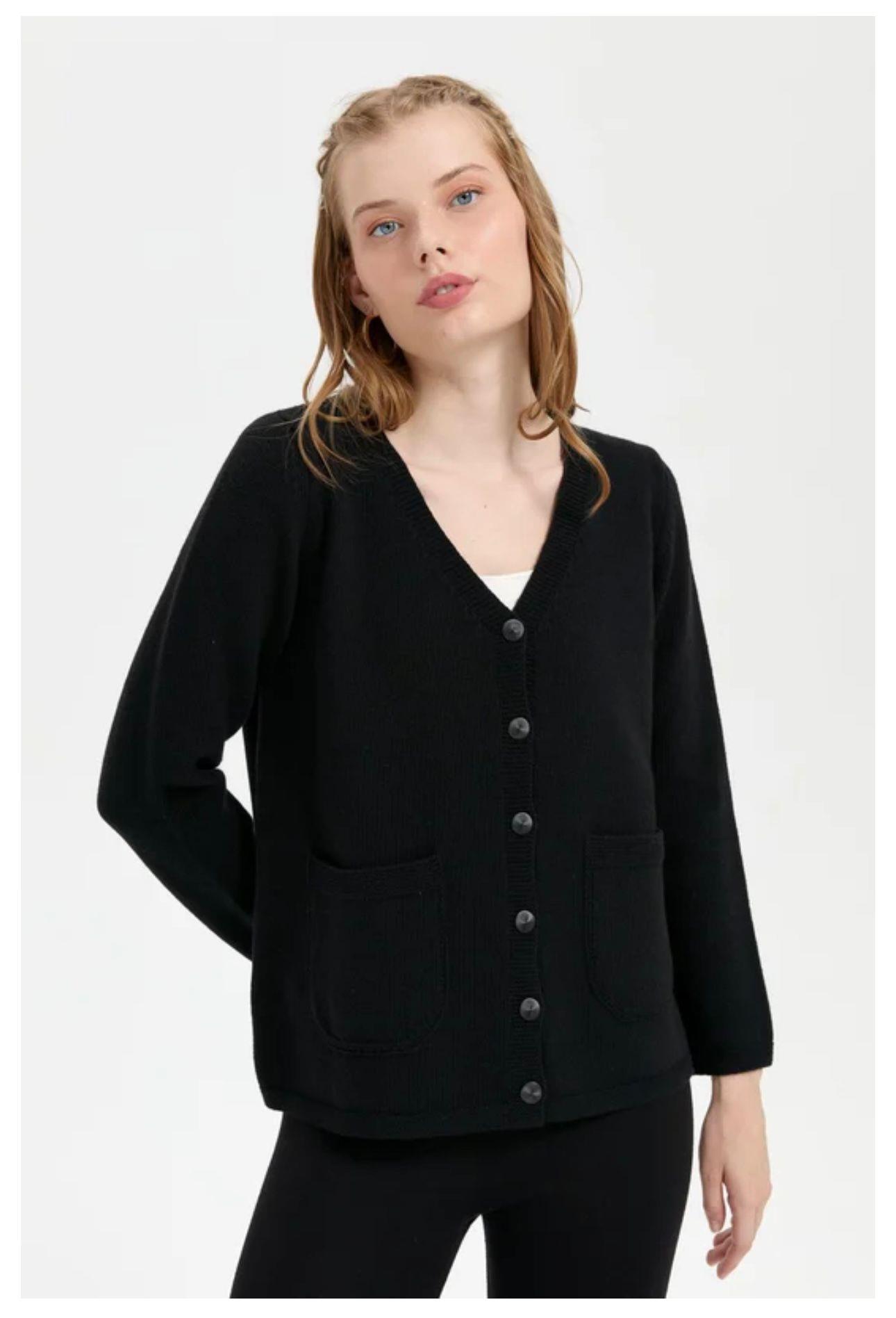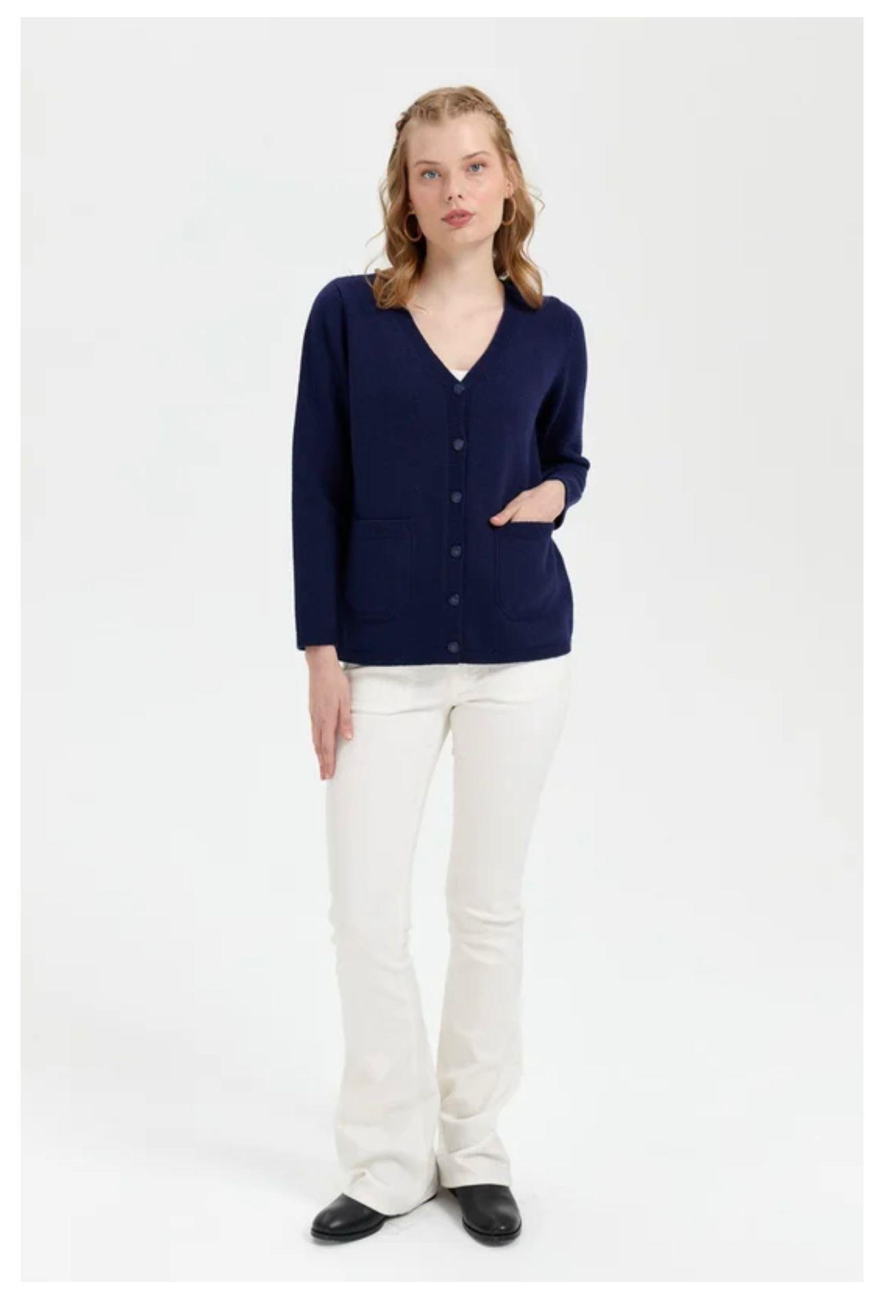 - Desen Triko Kadın V Yaka Basic Yün Hırka-24043