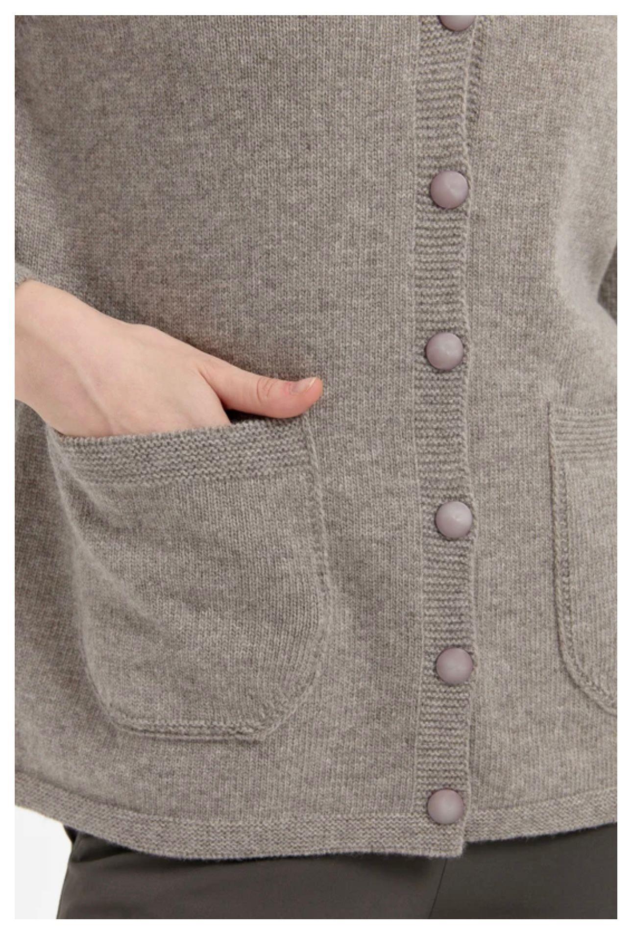 - Desen Triko Omzu ve Cebi Çiçek Detaylı Yün Hırka-23009