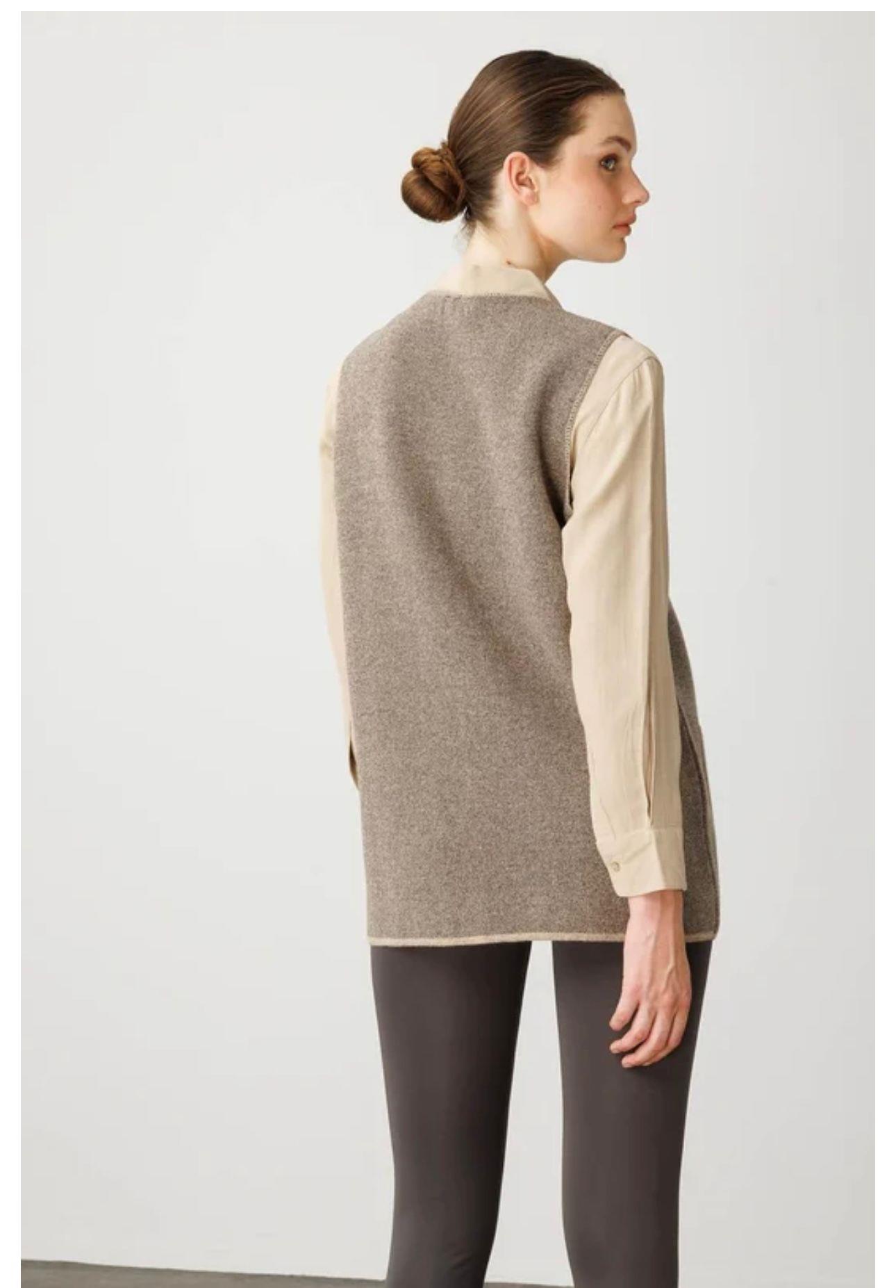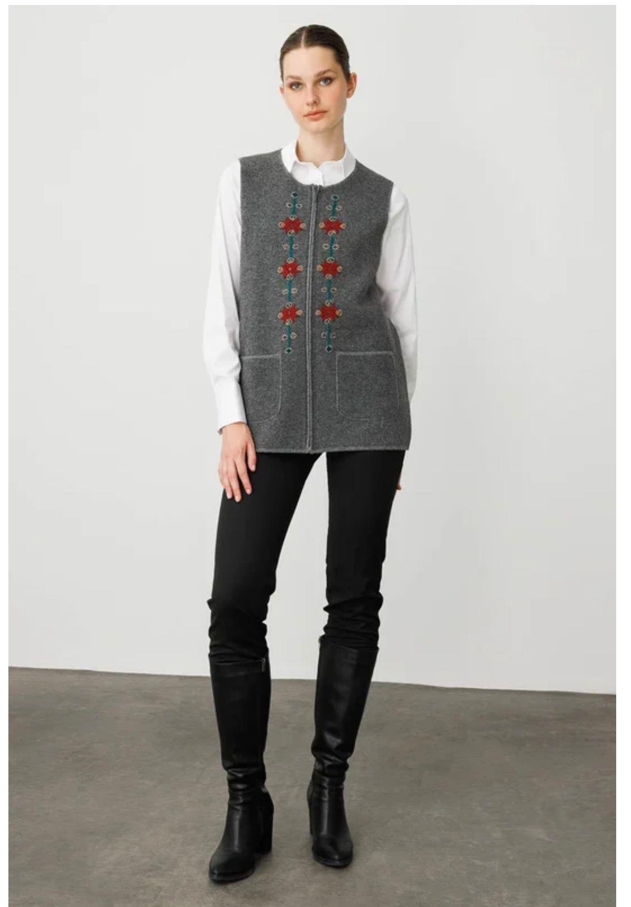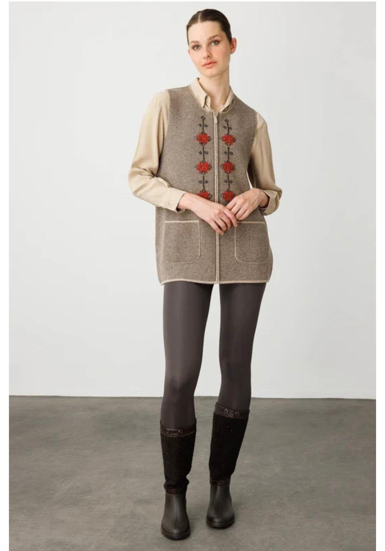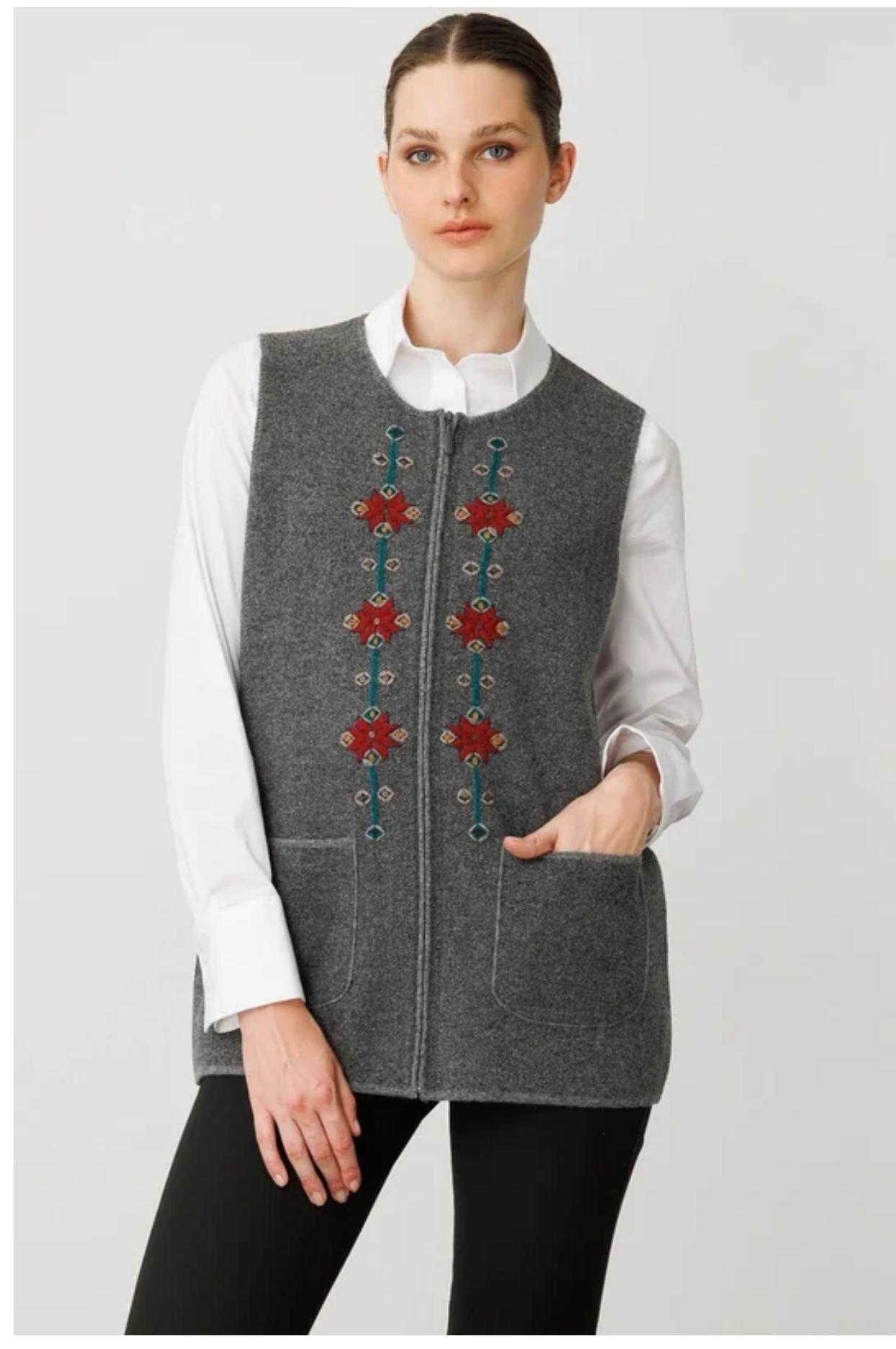 Desen Triko Önü Kilim Nakış İşlemeli Yün Yelek-25001
