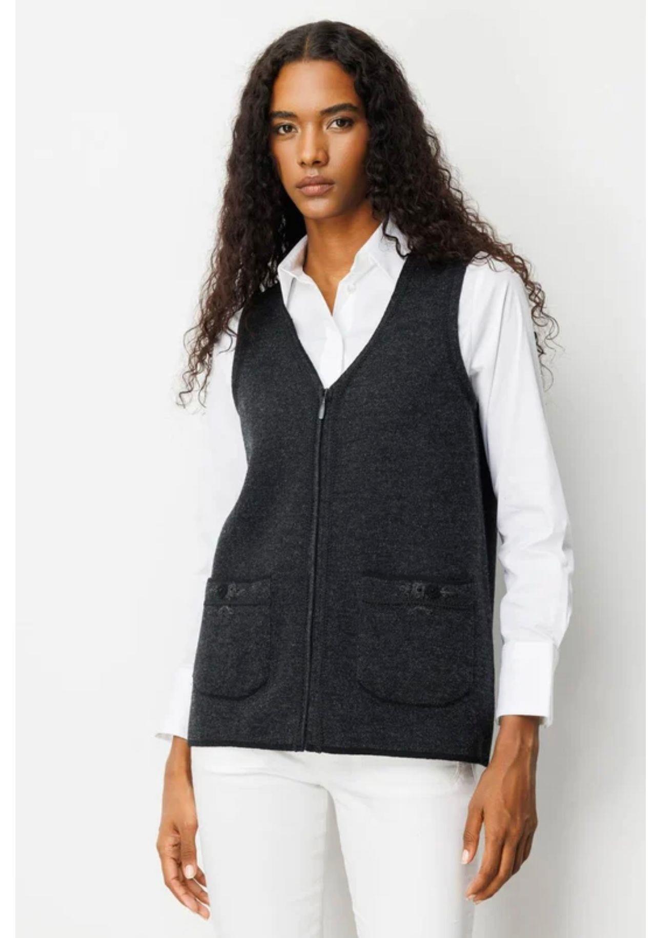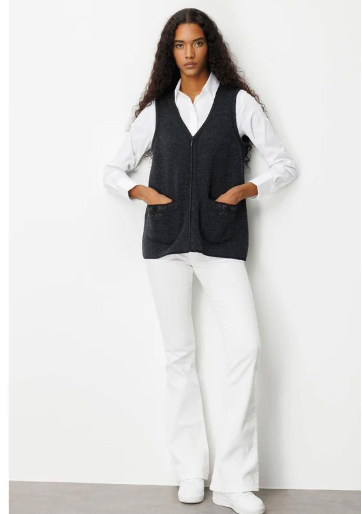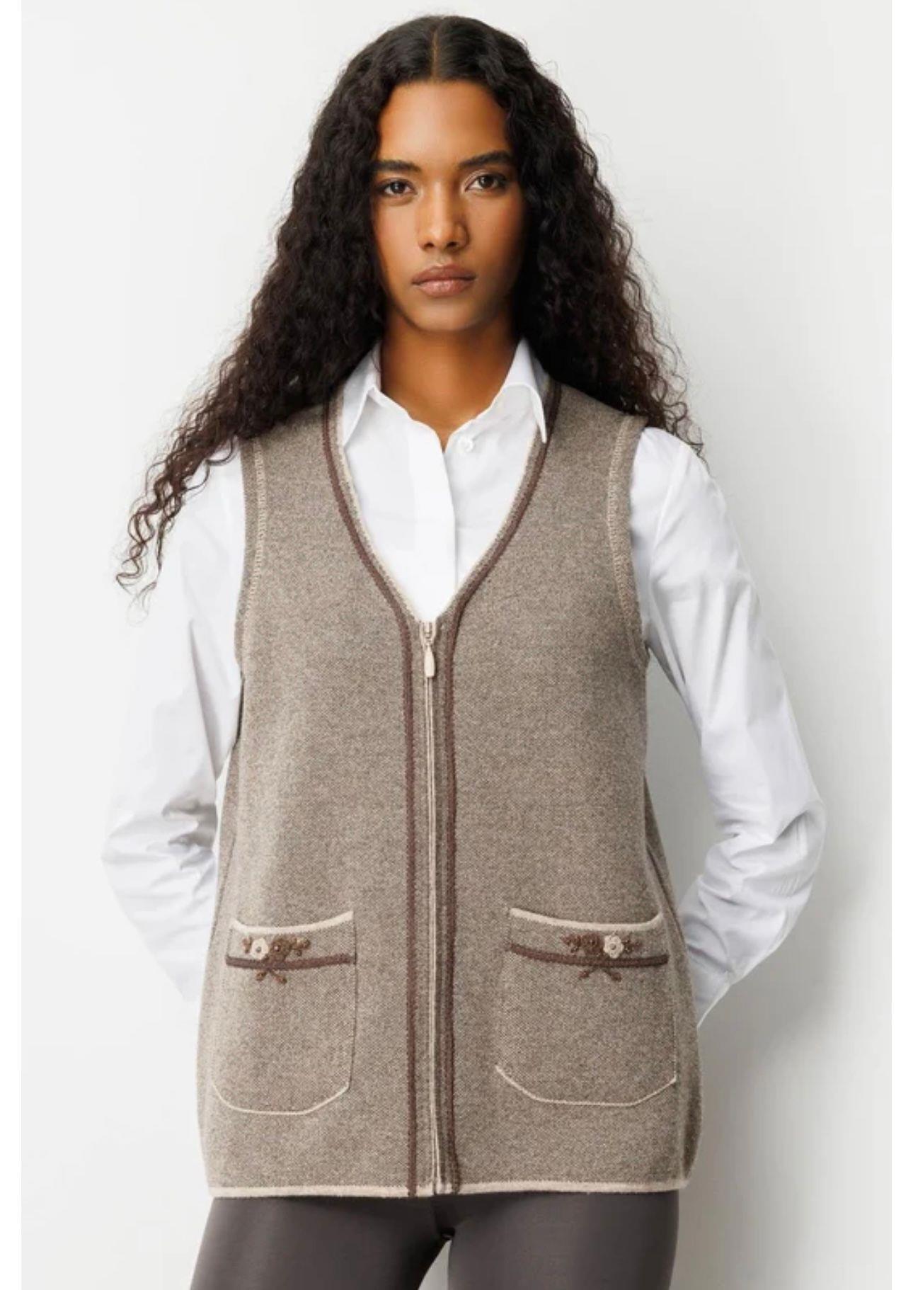 Desen Triko V Yaka Nakış İşlemeli Yün Yelek-25030