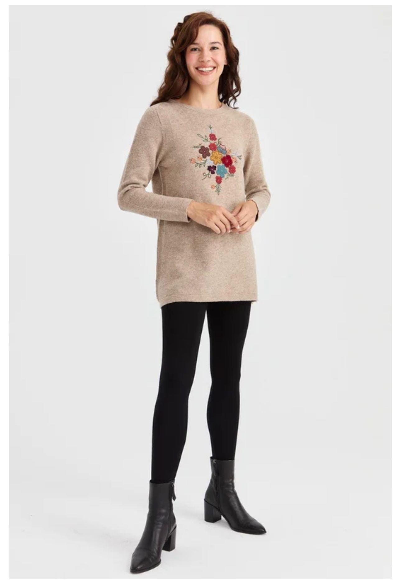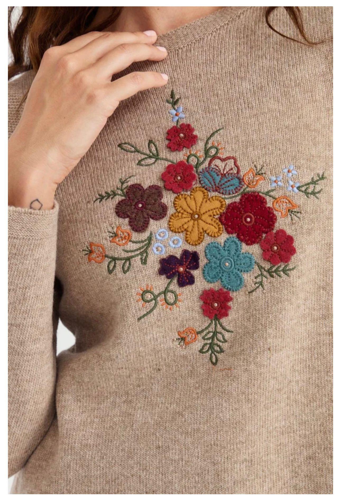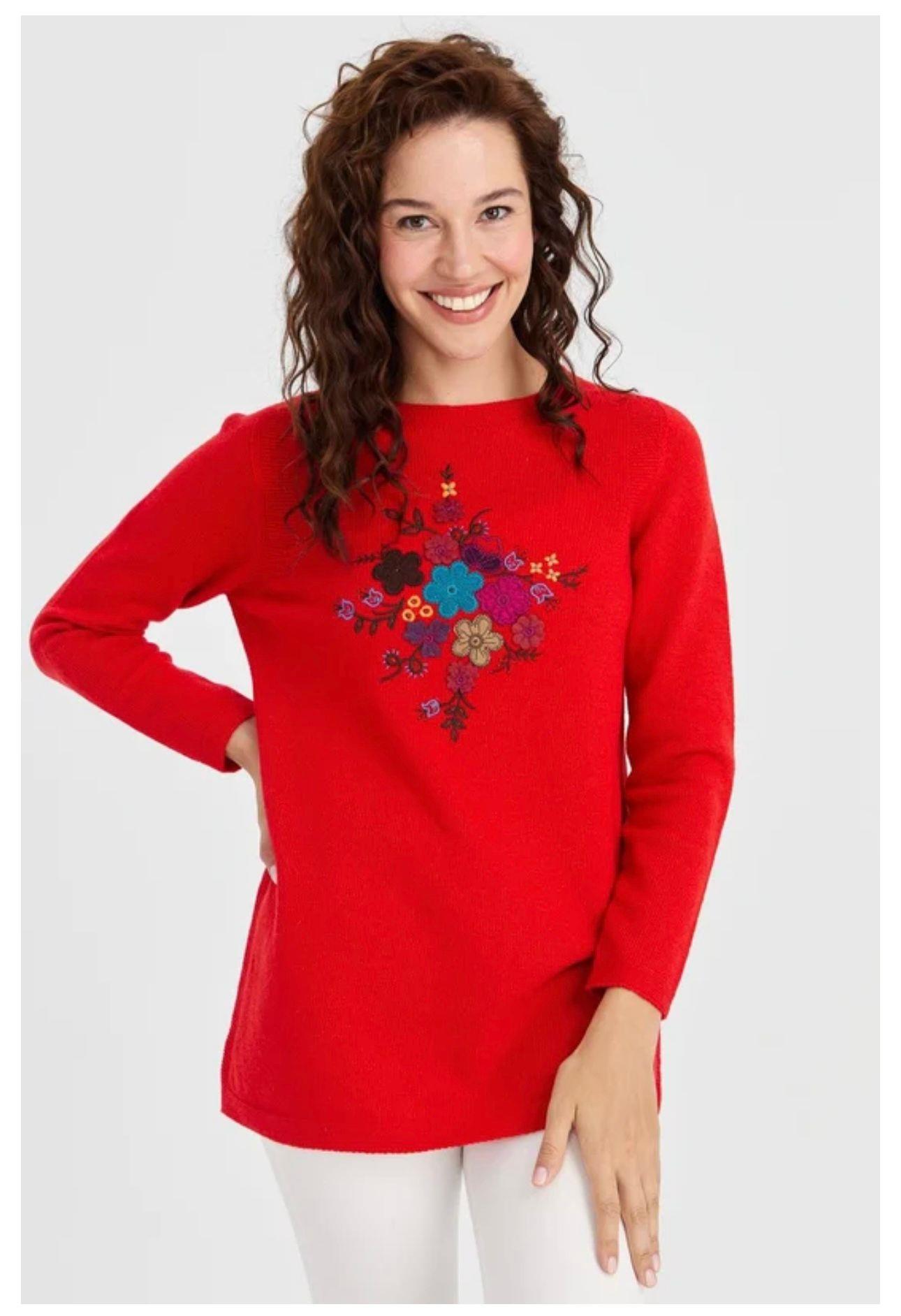 Desen Triko Yaka Çiçek Detaylı Yün Kazak-23156
