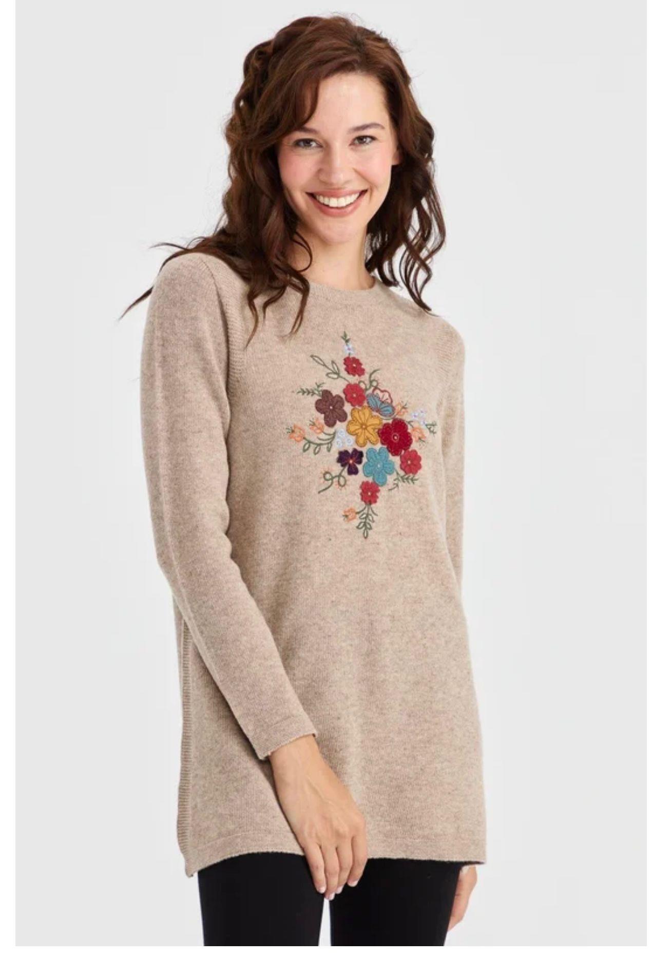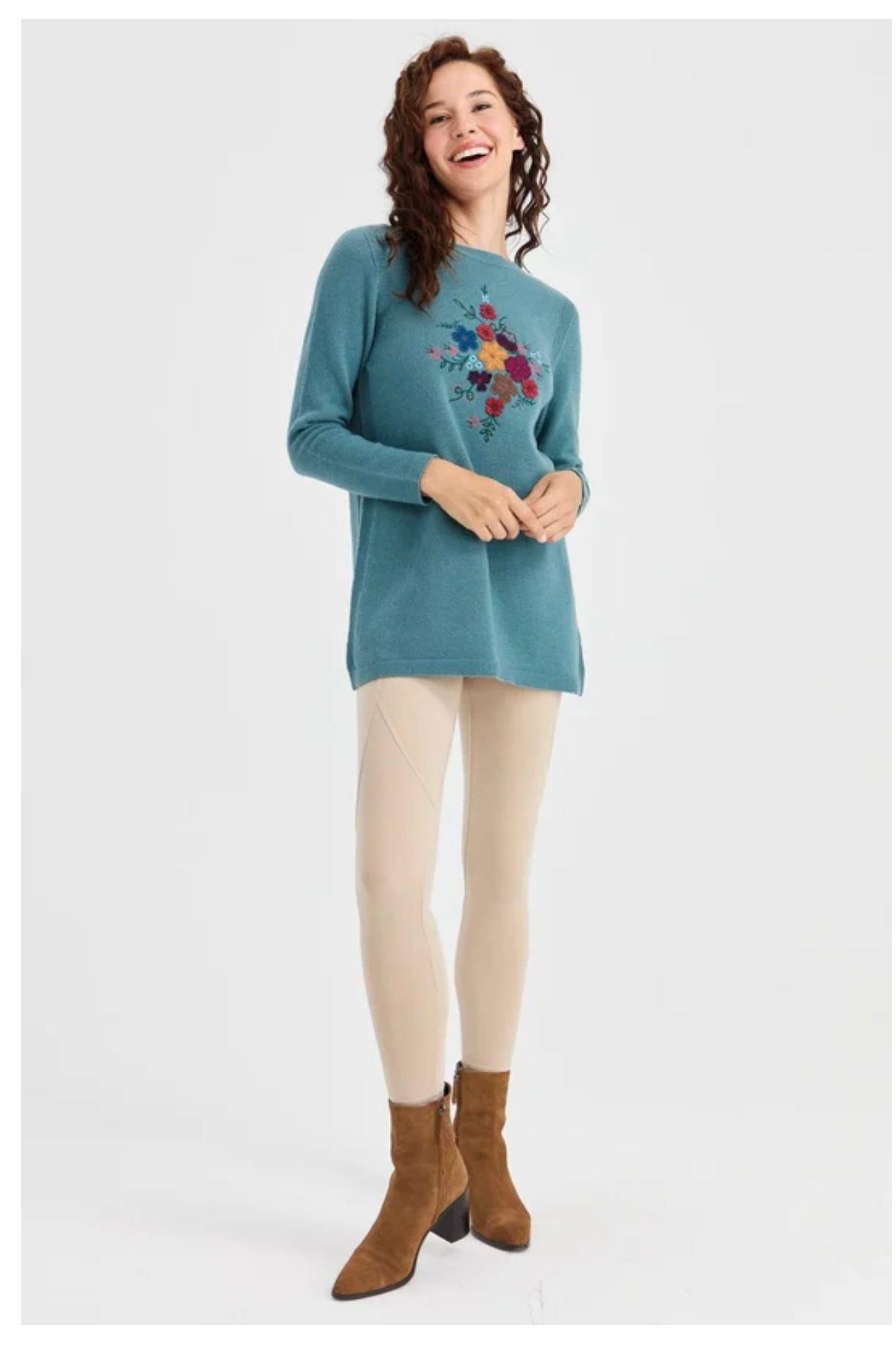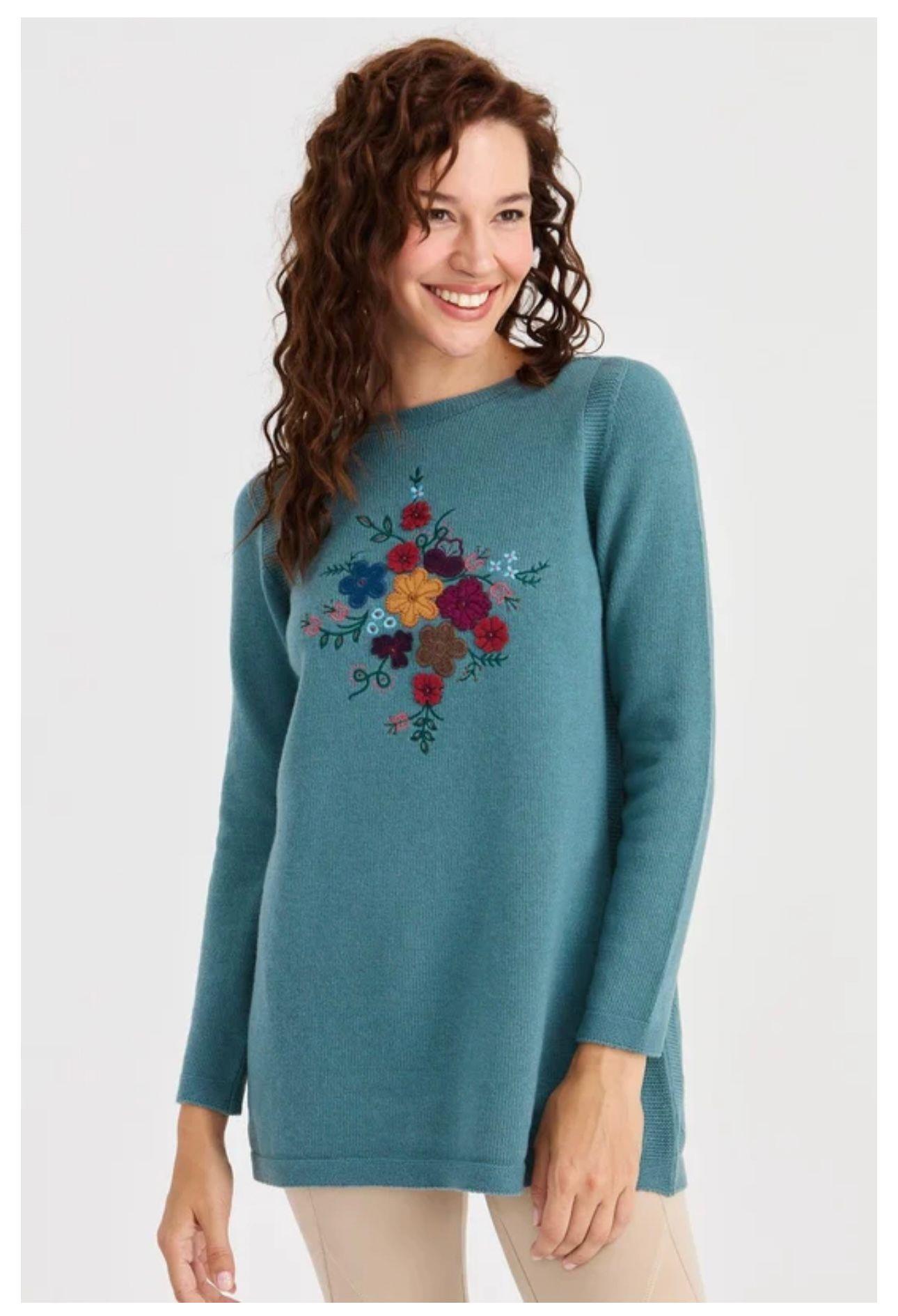 Desen Triko Yaka Çiçek Detaylı Yün Kazak-23156