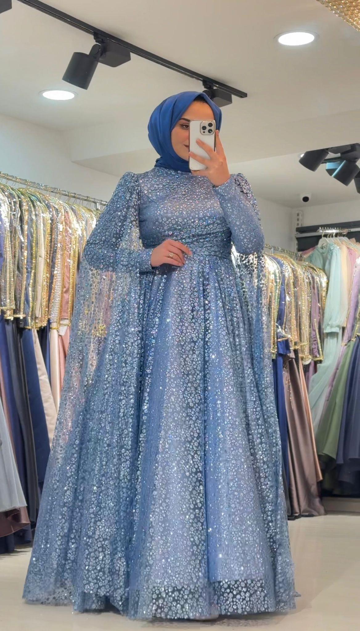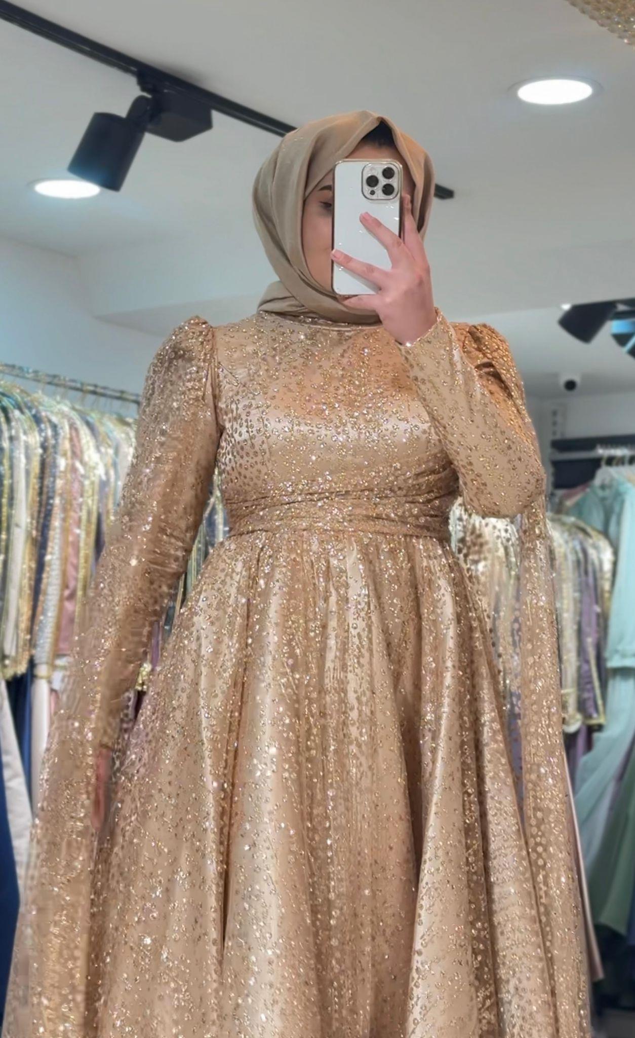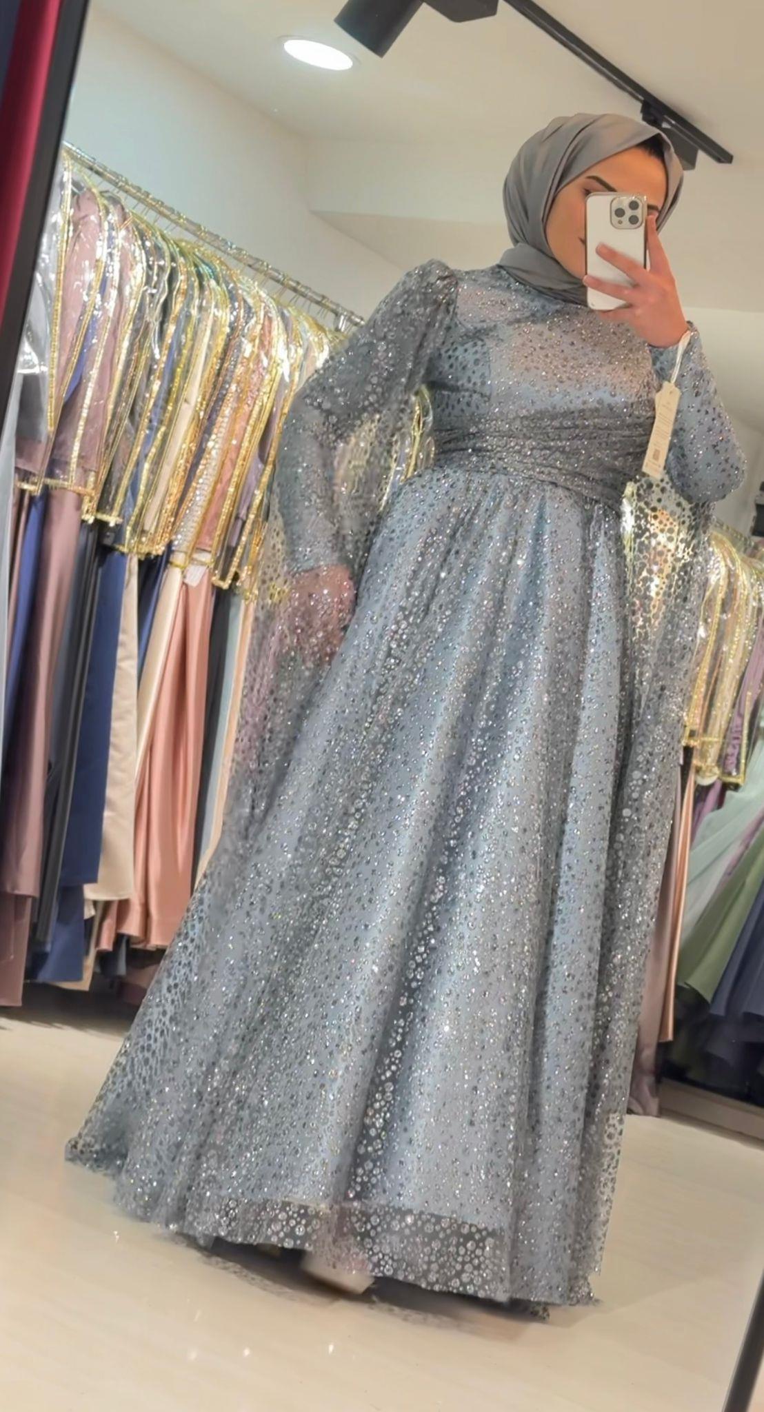 Feriha Sarıoğlu Tamaamı Simli Kumaş Abiye Elbise-ÖZNUR