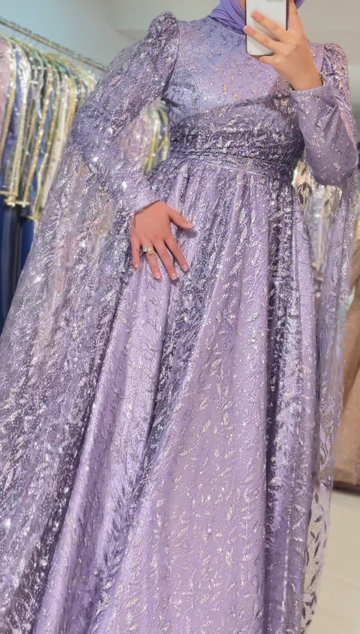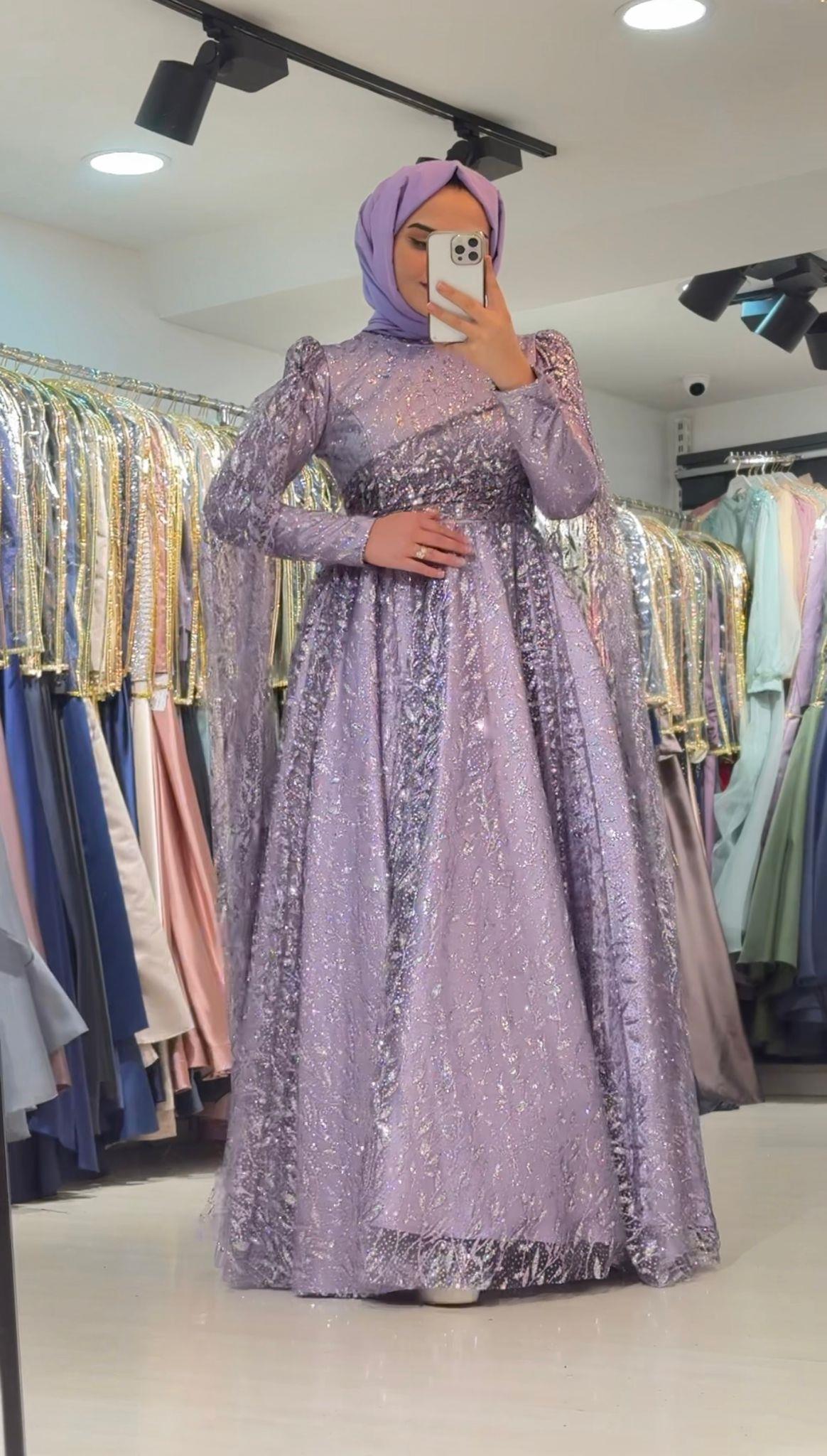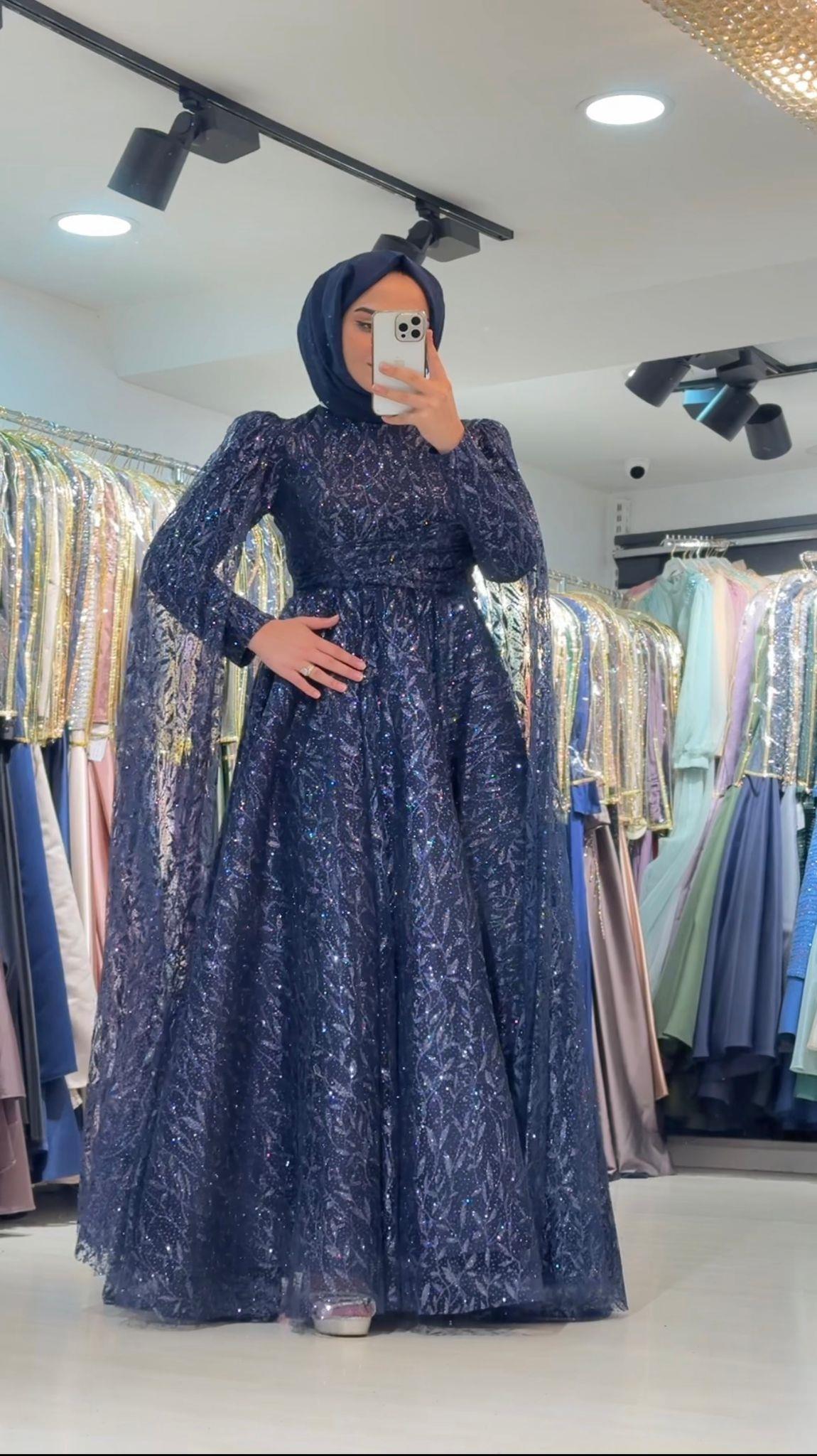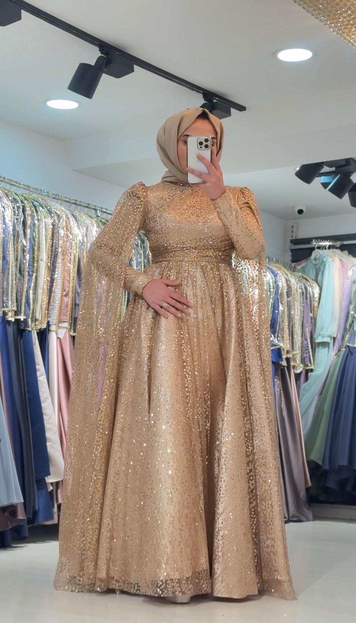 - Kenzel Pelerin Detaylı Abiye Elbise-2031
